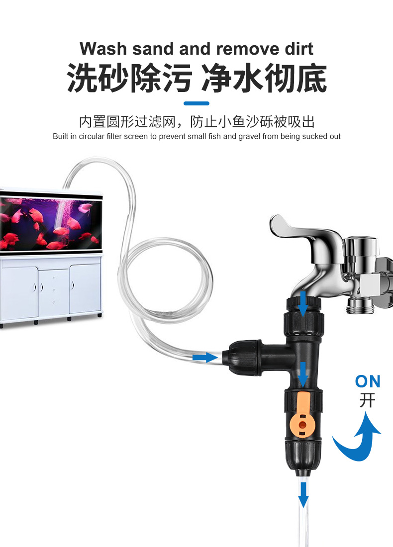 어항 모래 세척 및 물 교체기, 수족관 도매용 수도꼭지형 어항 청소 도구 세트, 사용이 간편한 도구스토어 가기