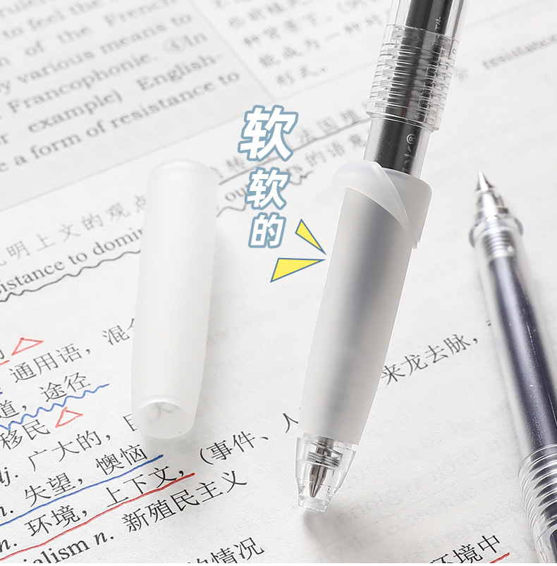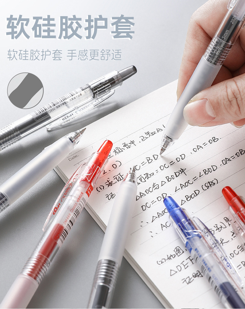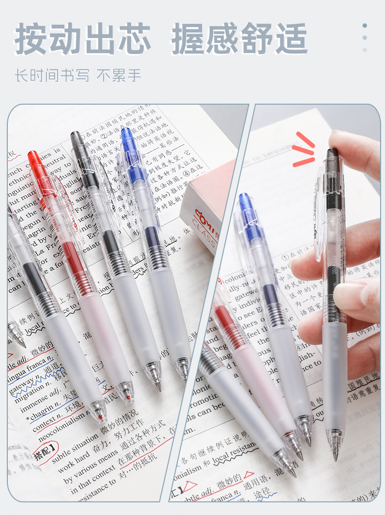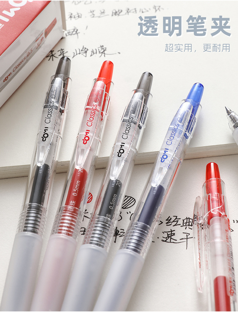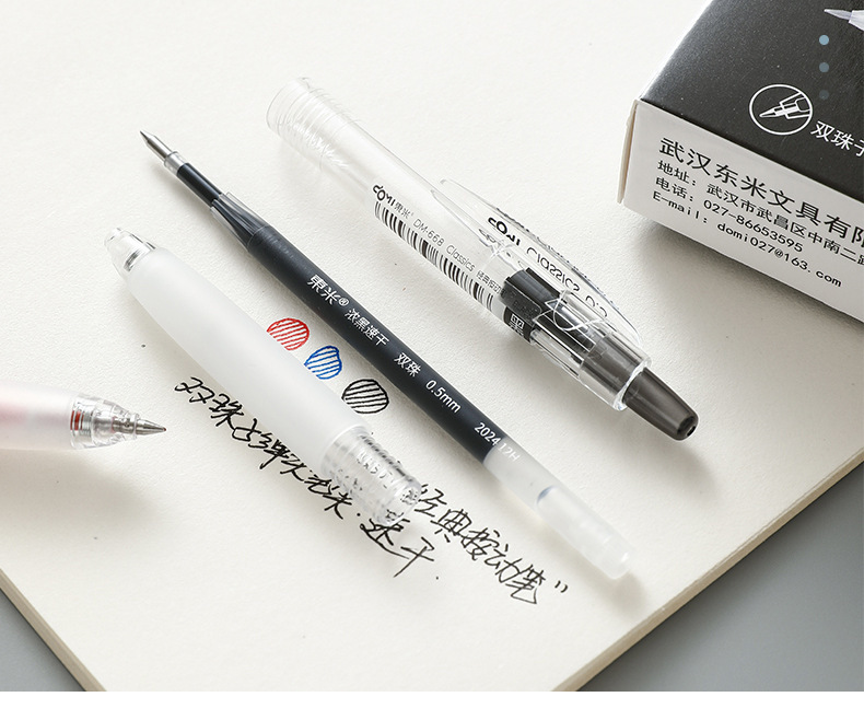Dongmi 668 클래식 푸시버튼 젤 펜, 고급스러운 더블 비드 총알 모양, 속건성, 간단하고 투명한 검정색, 빨간색, 파란색