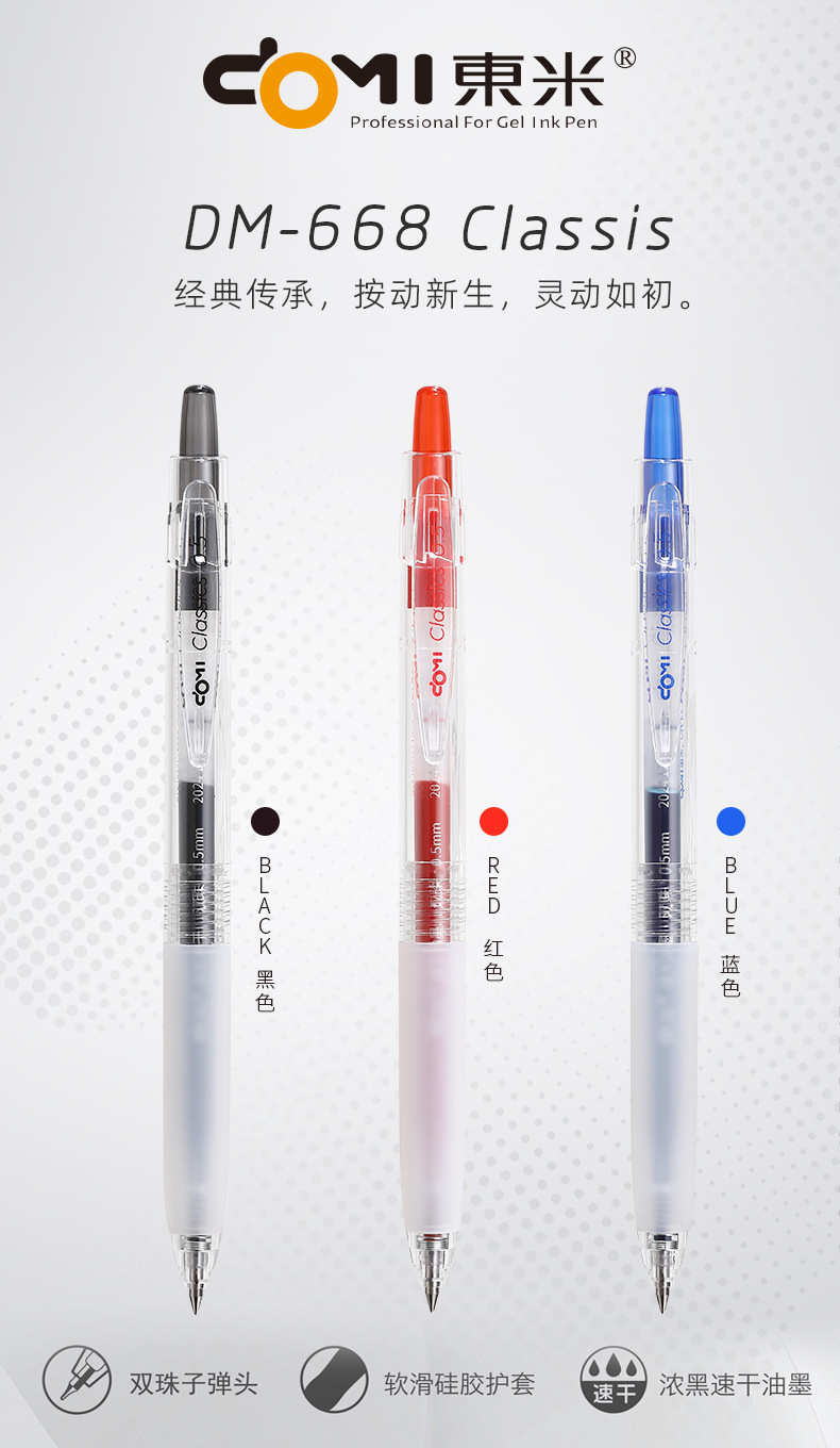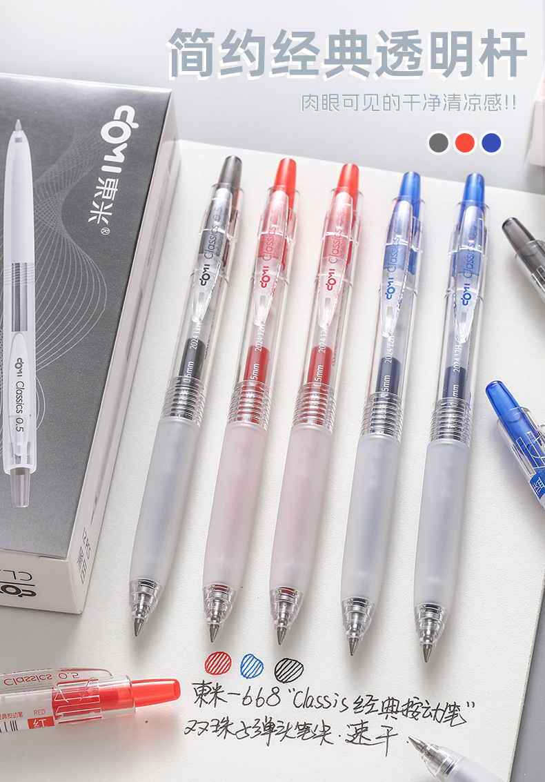 Dongmi 668 클래식 푸시버튼 젤 펜, 고급스러운 더블 비드 총알 모양, 속건성, 간단하고 투명한 검정색, 빨간색, 파란색스토어 가기