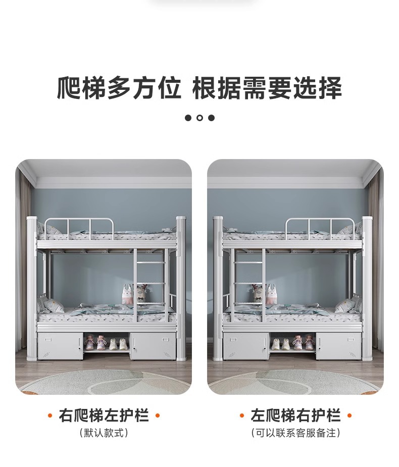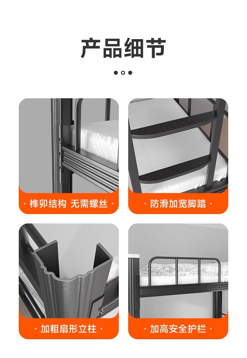 이층 철제 침대, 두꺼운 이층 침대, 학생 기숙사, 건설 현장 침대, 철제 프레임 침대, 높이 조절 가능한 가드레일이 있는 이층 침대