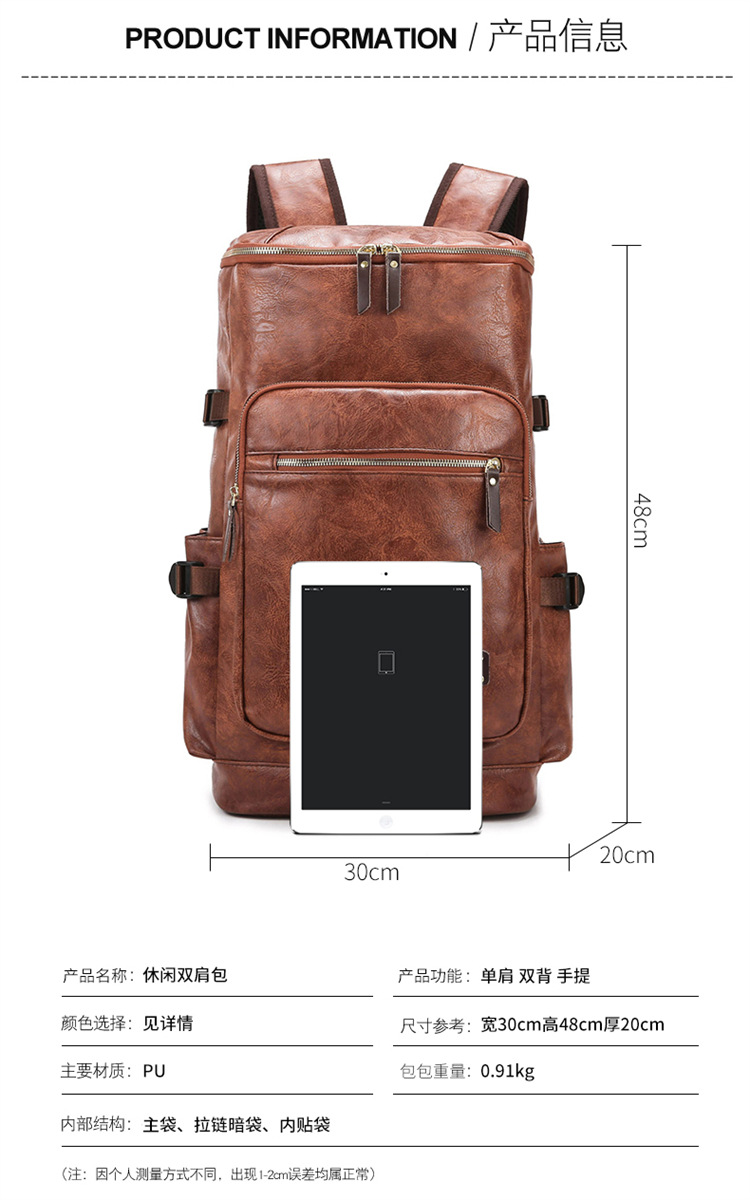 국경 간 새로운 유럽과 미국의 레트로 비즈니스 숄더 백 남성 유행 배낭 대용량 여행 가방 가죽 컴퓨터 가방