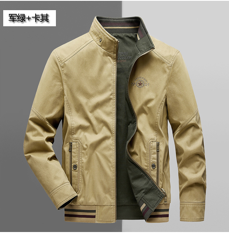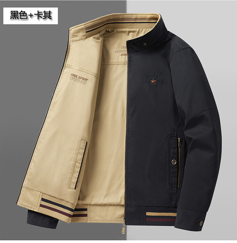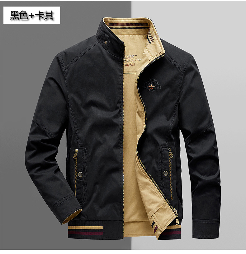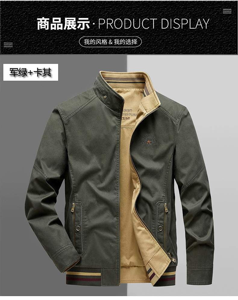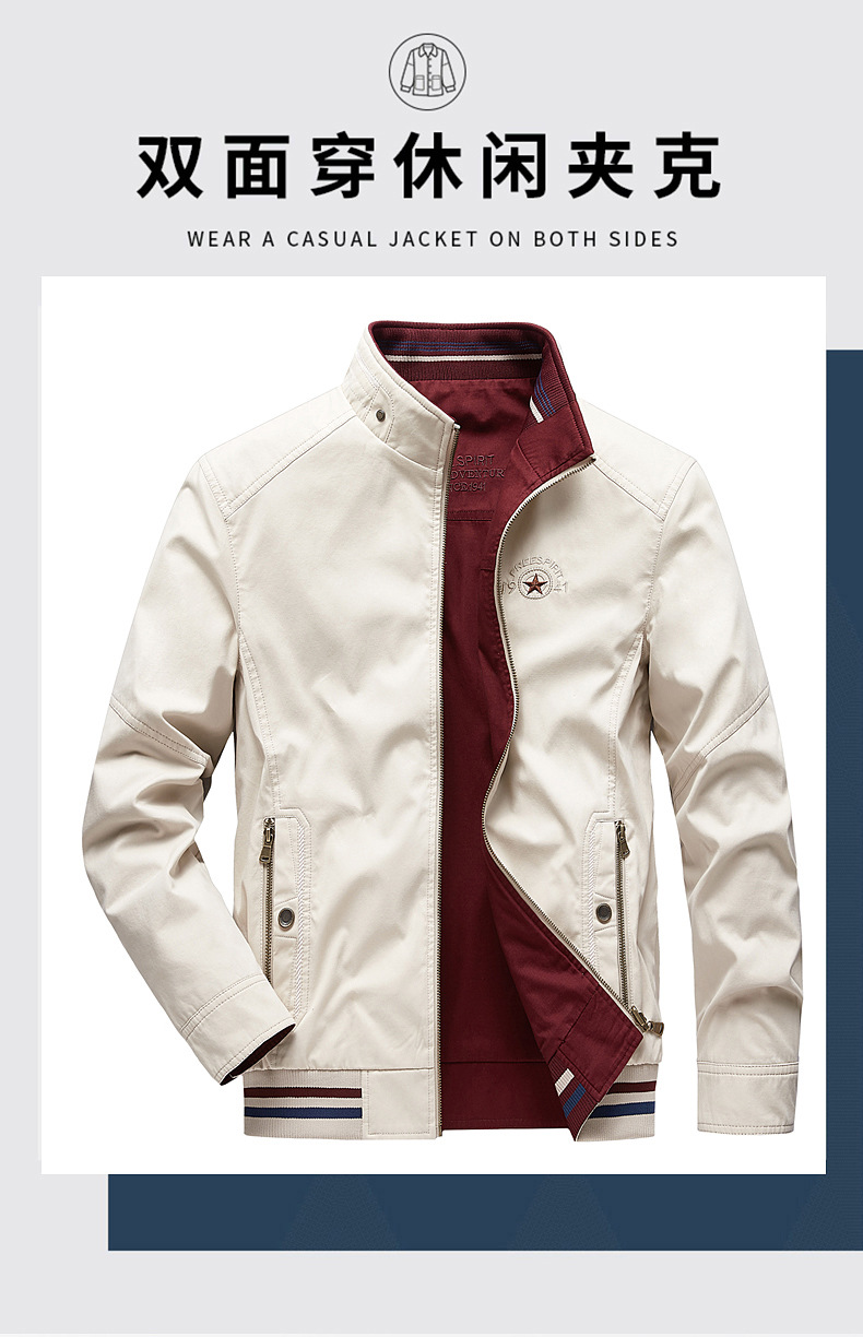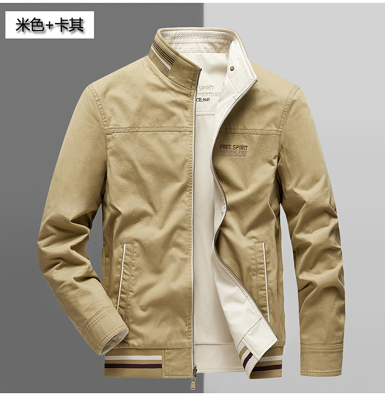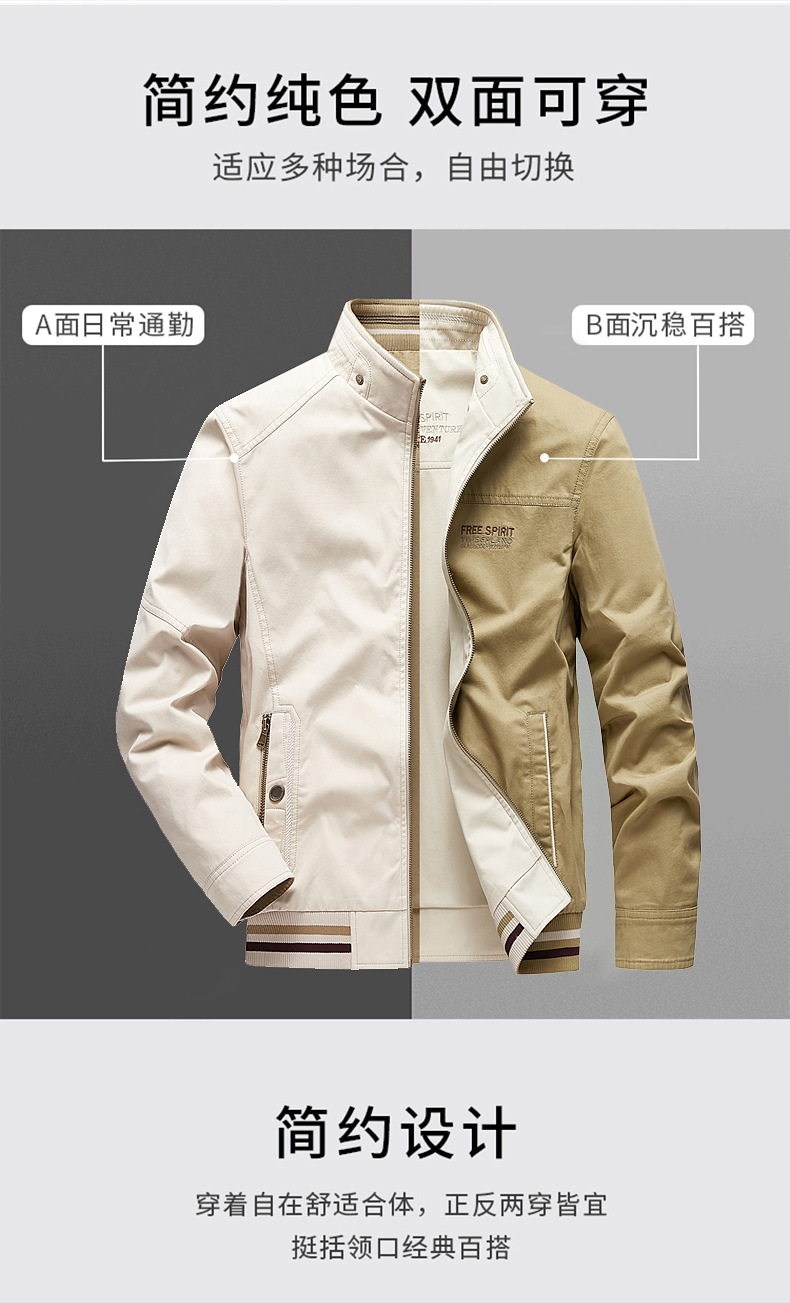 순면 봄 양면 착용 캐주얼 스탠드 칼라 남성 재킷 방풍 재킷 스포츠 고급 상의 윈드브레이커스토어 가기