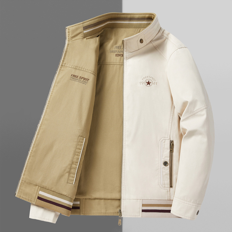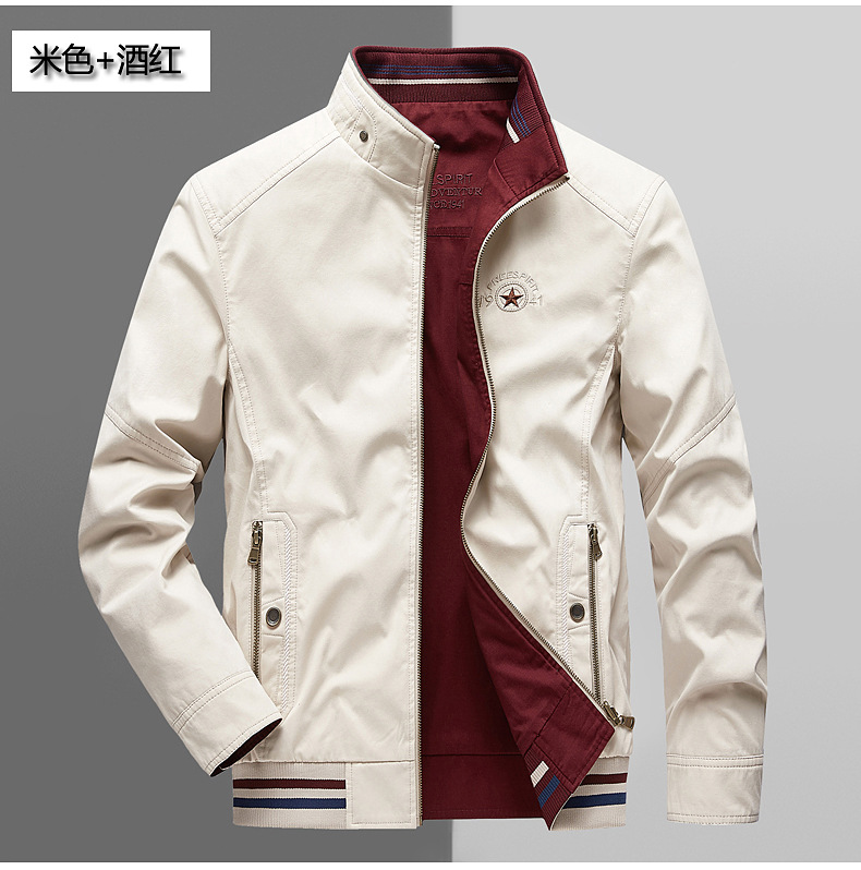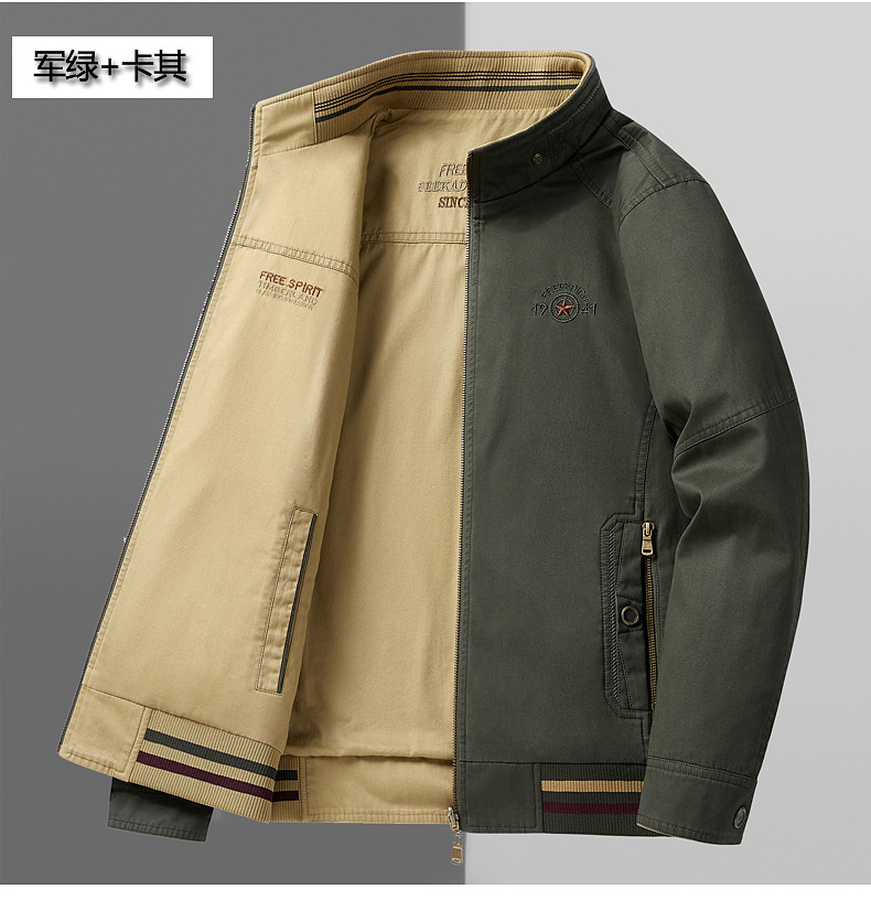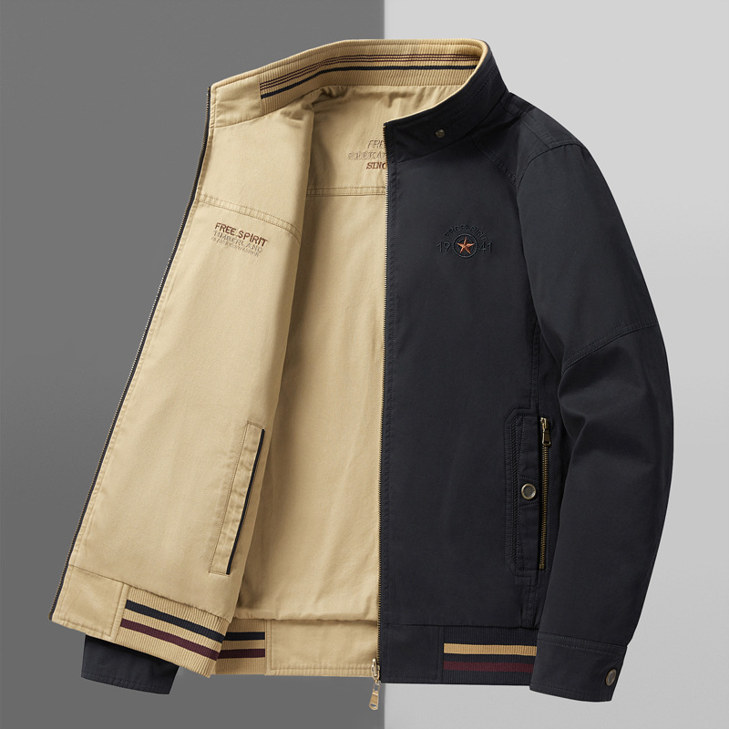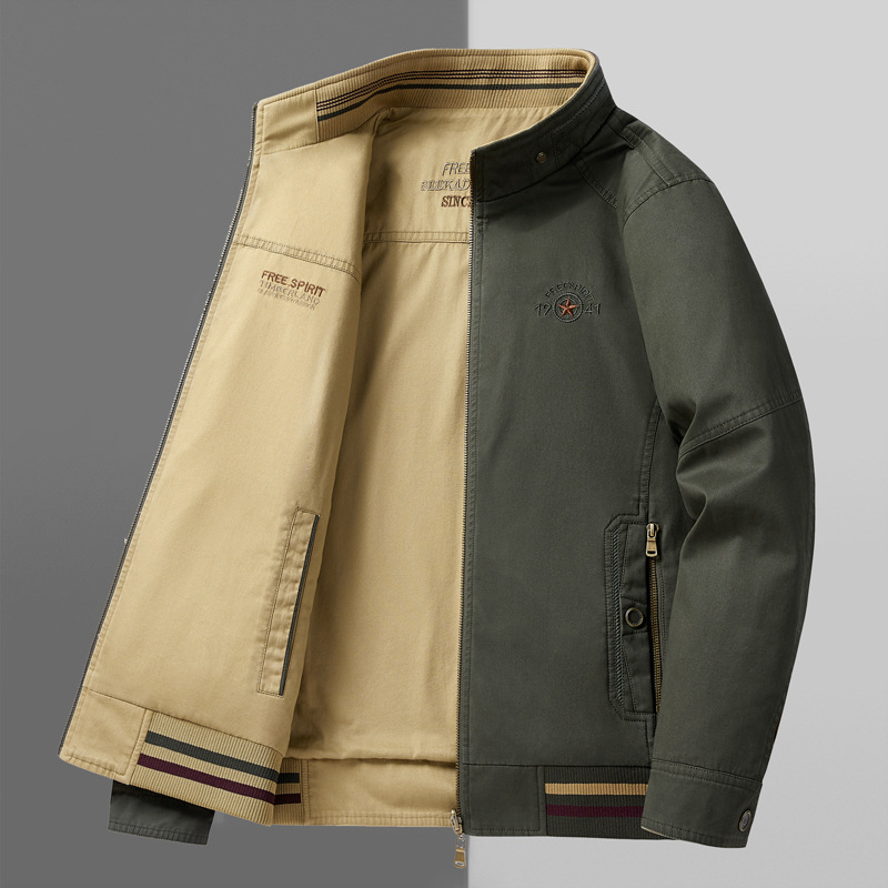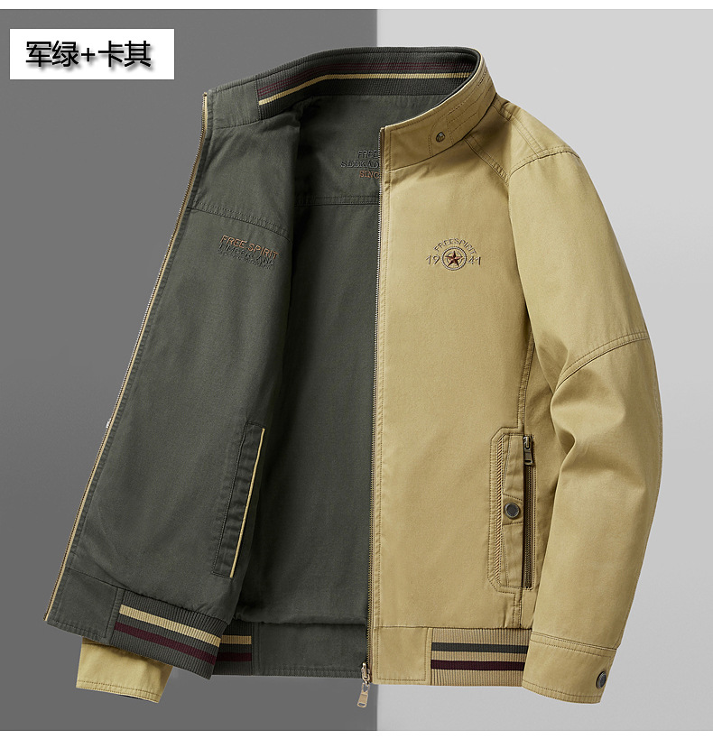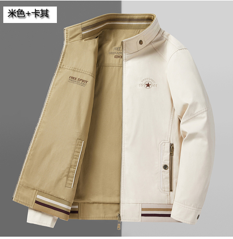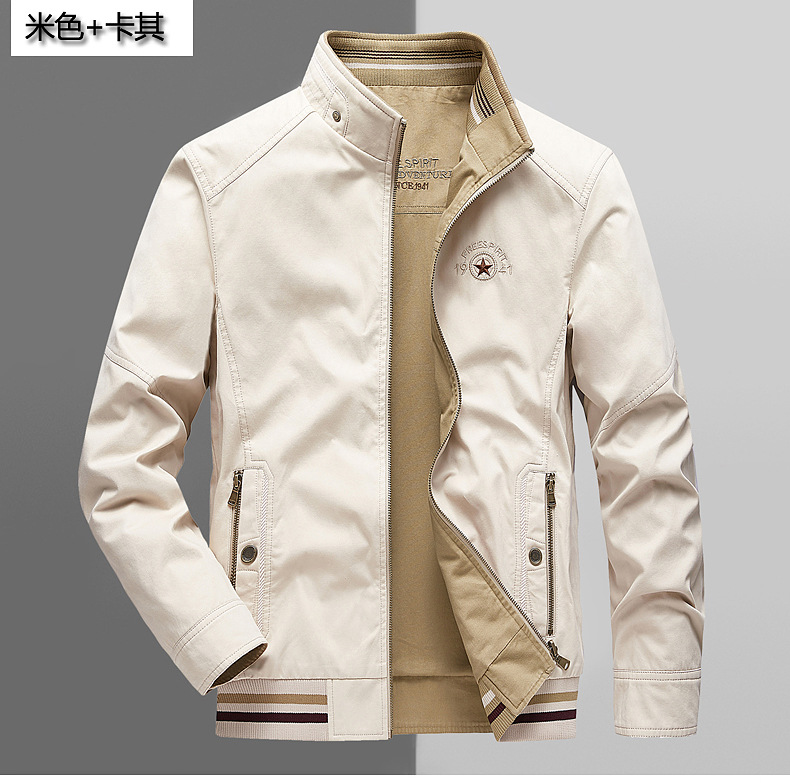 순면 봄 양면 착용 캐주얼 스탠드 칼라 남성 재킷 방풍 재킷 스포츠 고급 상의 윈드브레이커스토어 가기