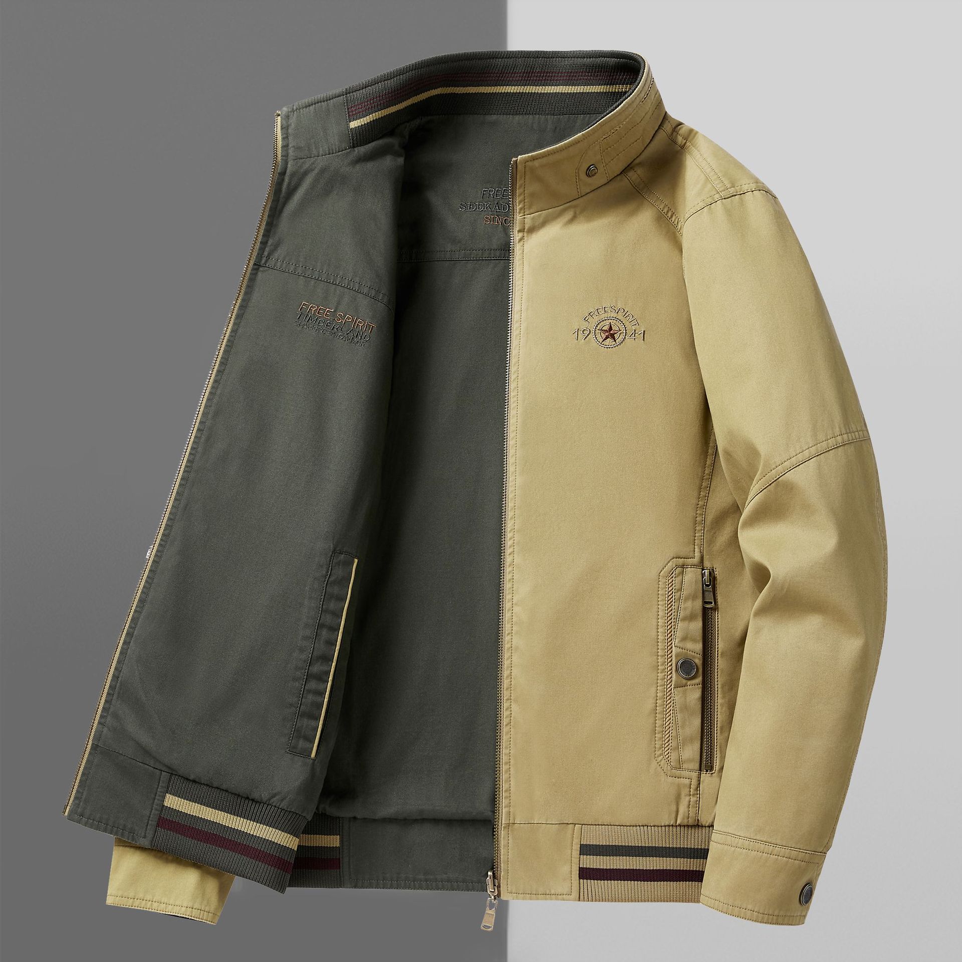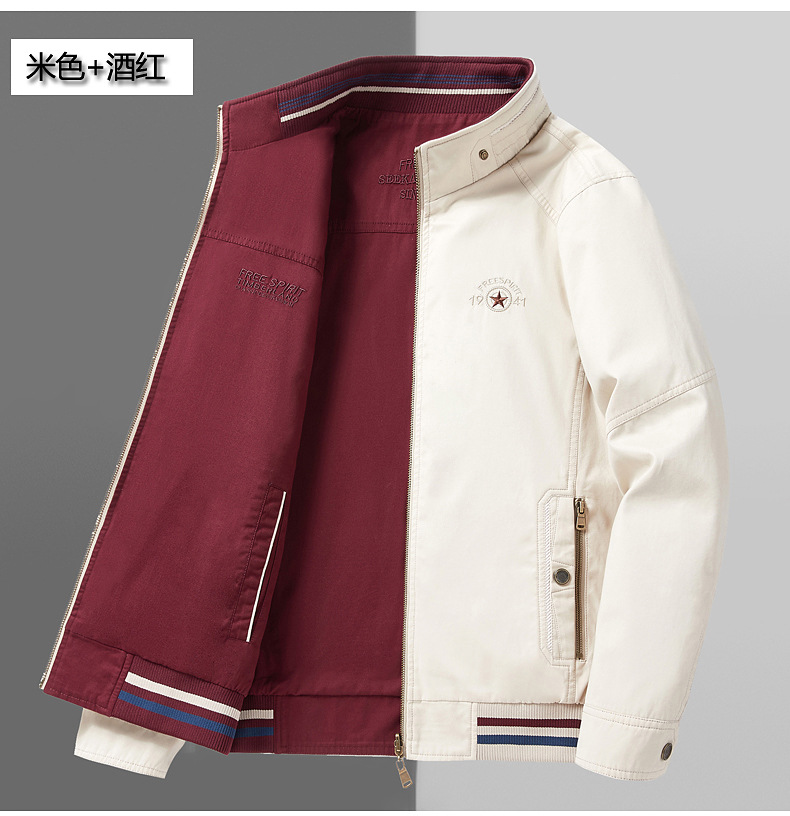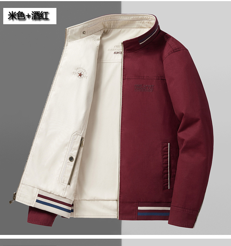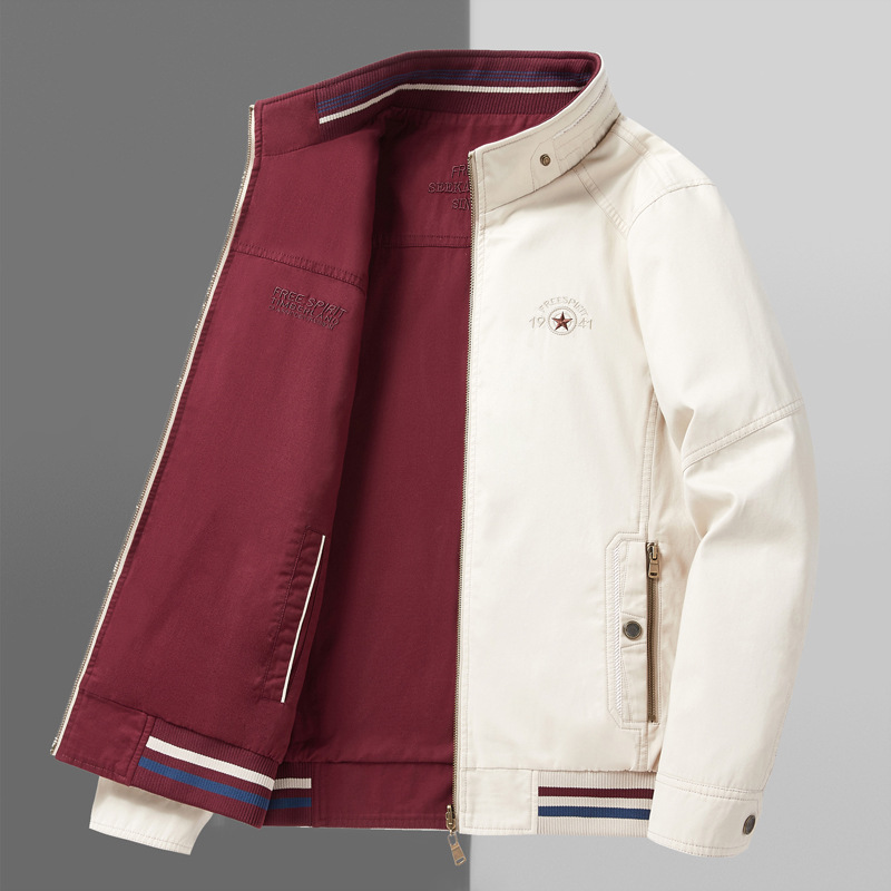 순면 봄 양면 착용 캐주얼 스탠드 칼라 남성 재킷 방풍 재킷 스포츠 고급 상의 윈드브레이커