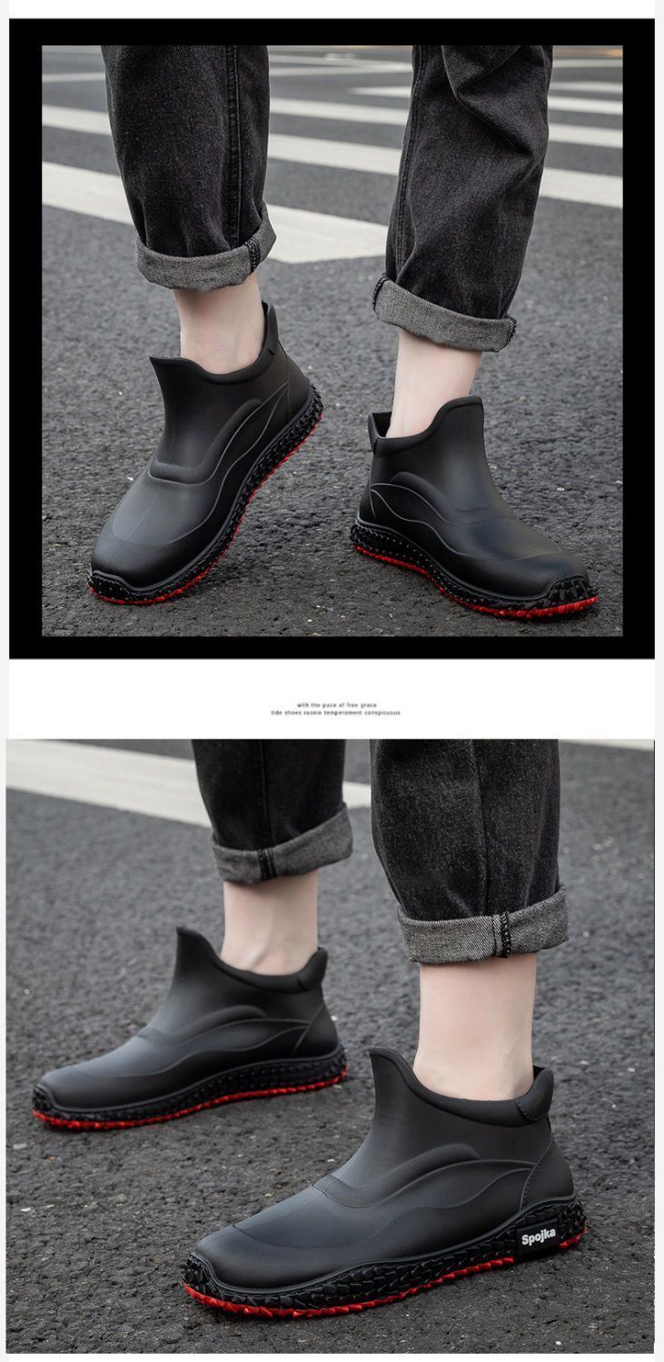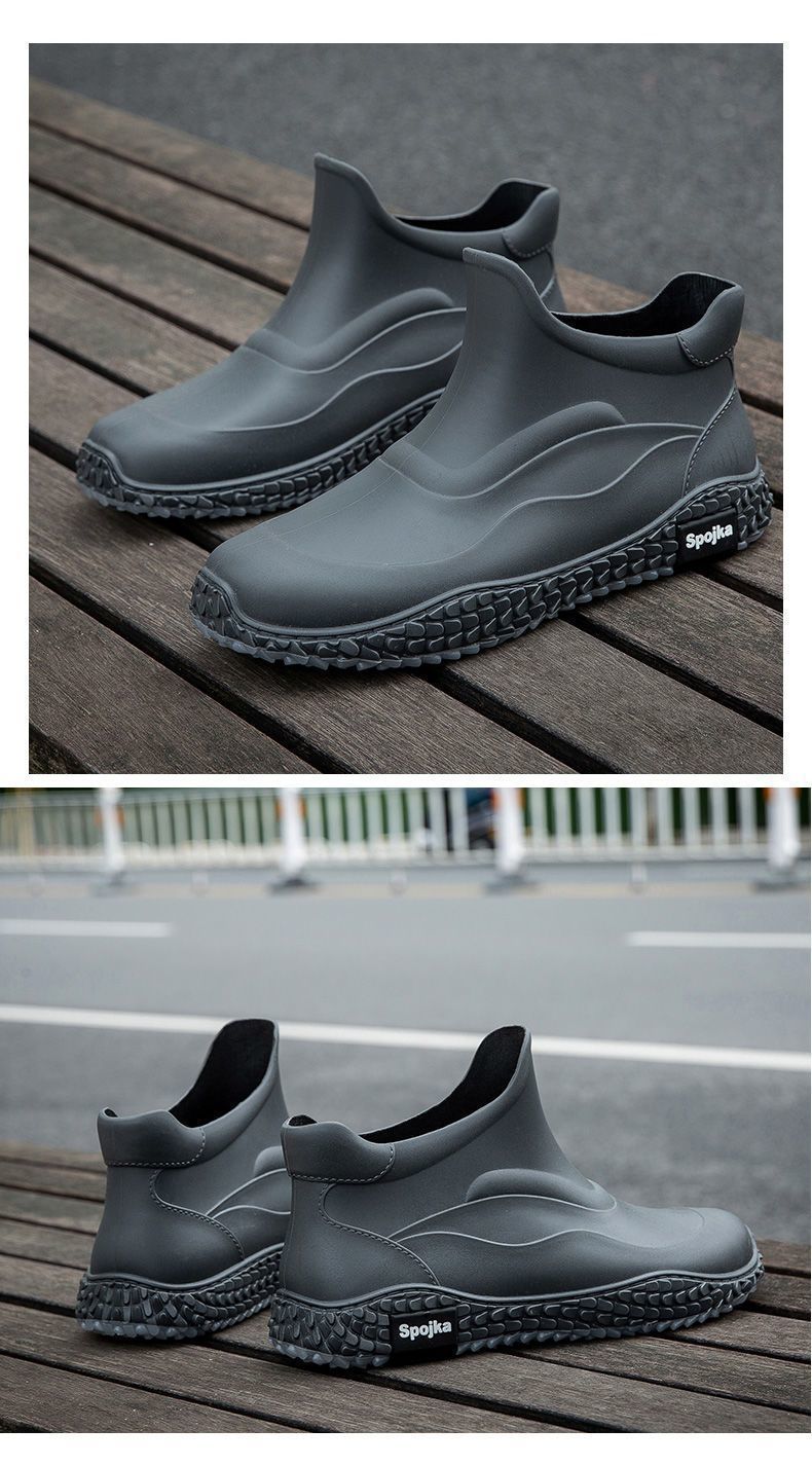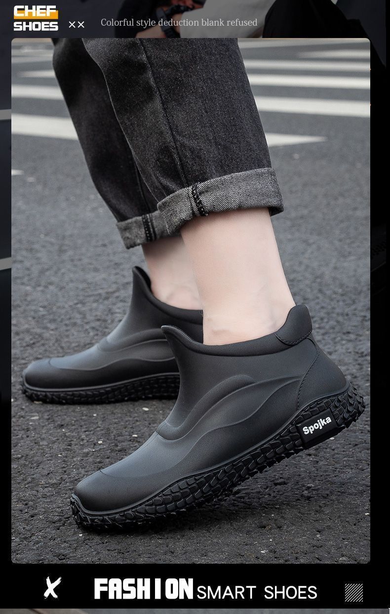 미끄럼 방지 방수 신발 유행 외부 착용 고무 신발 남성용 짧은 배럴 주방 자동차 세척 작업 장화 남성용 레인 부츠 로우 탑스토어 가기