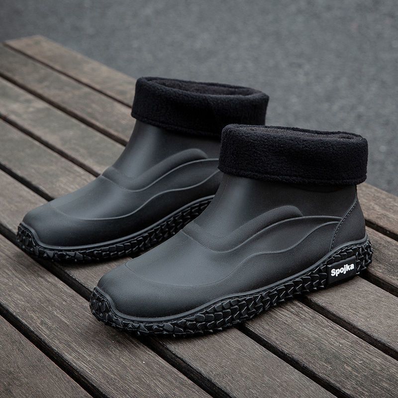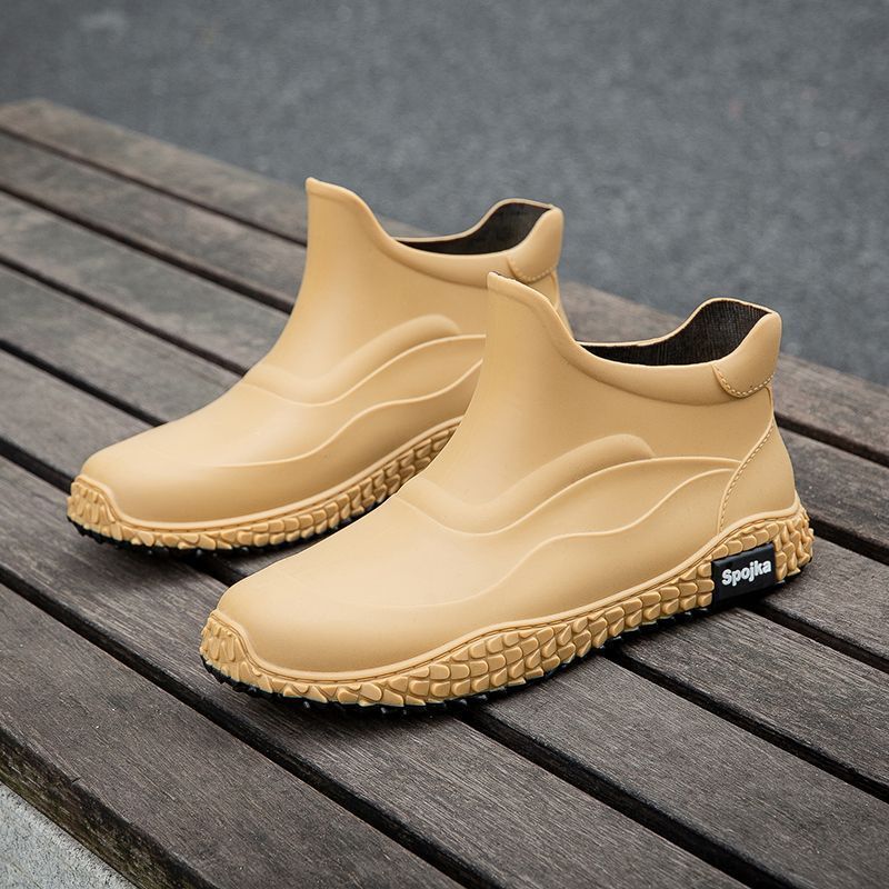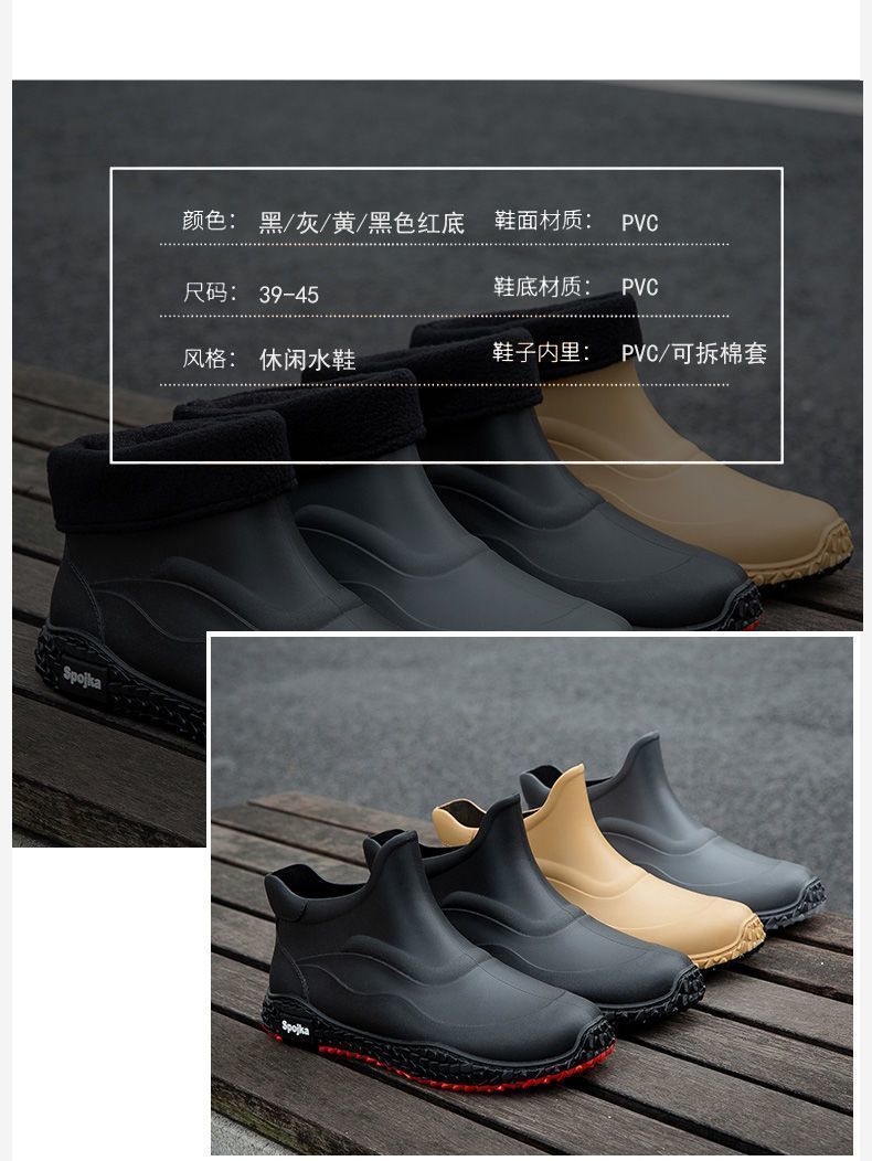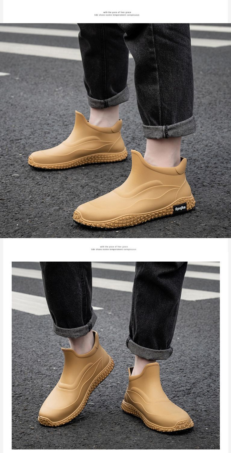 미끄럼 방지 방수 신발 유행 외부 착용 고무 신발 남성용 짧은 배럴 주방 자동차 세척 작업 장화 남성용 레인 부츠 로우 탑스토어 가기