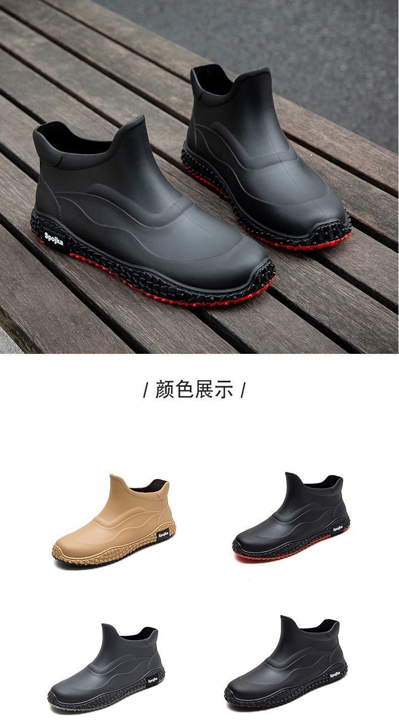 미끄럼 방지 방수 신발 유행 외부 착용 고무 신발 남성용 짧은 배럴 주방 자동차 세척 작업 장화 남성용 레인 부츠 로우 탑