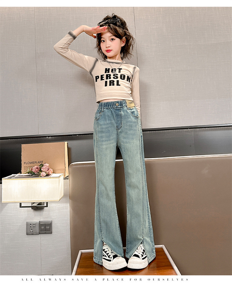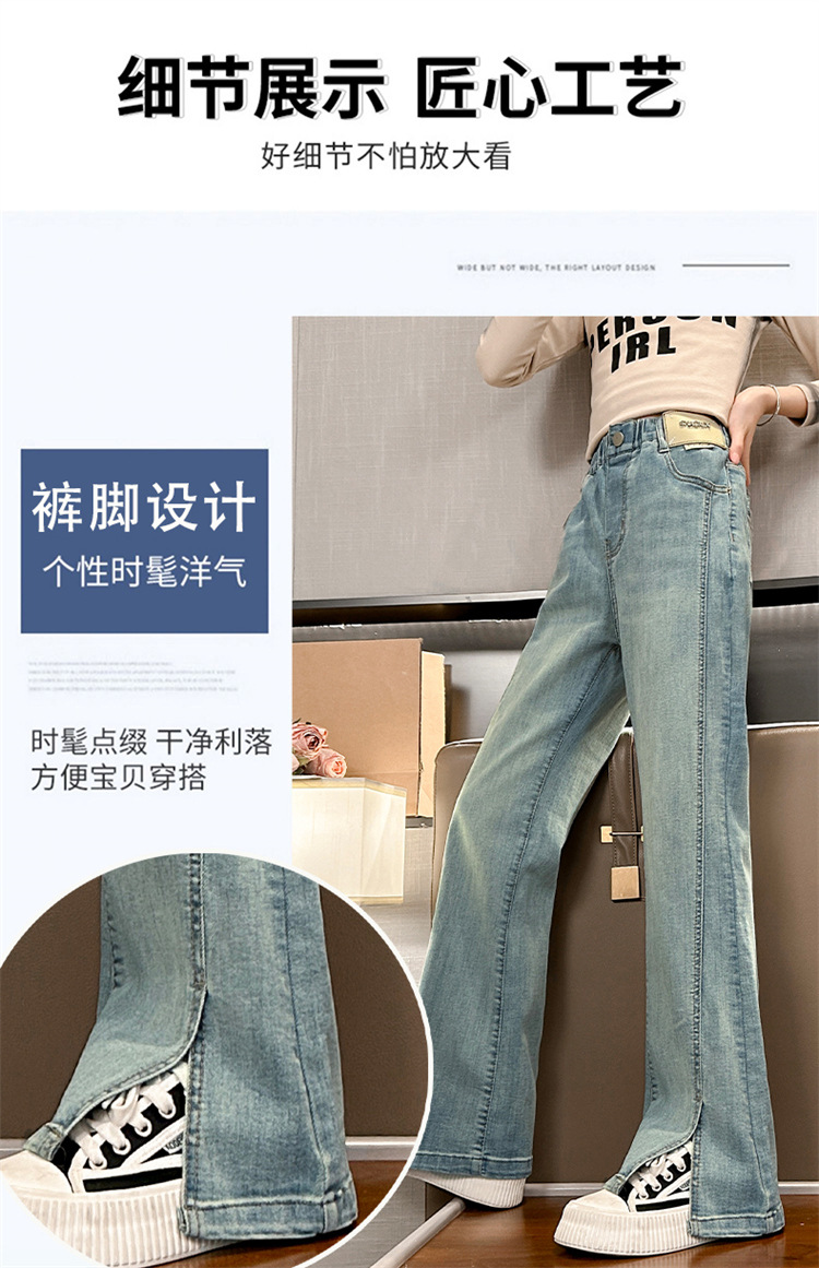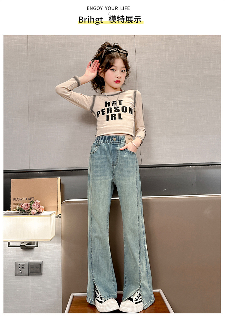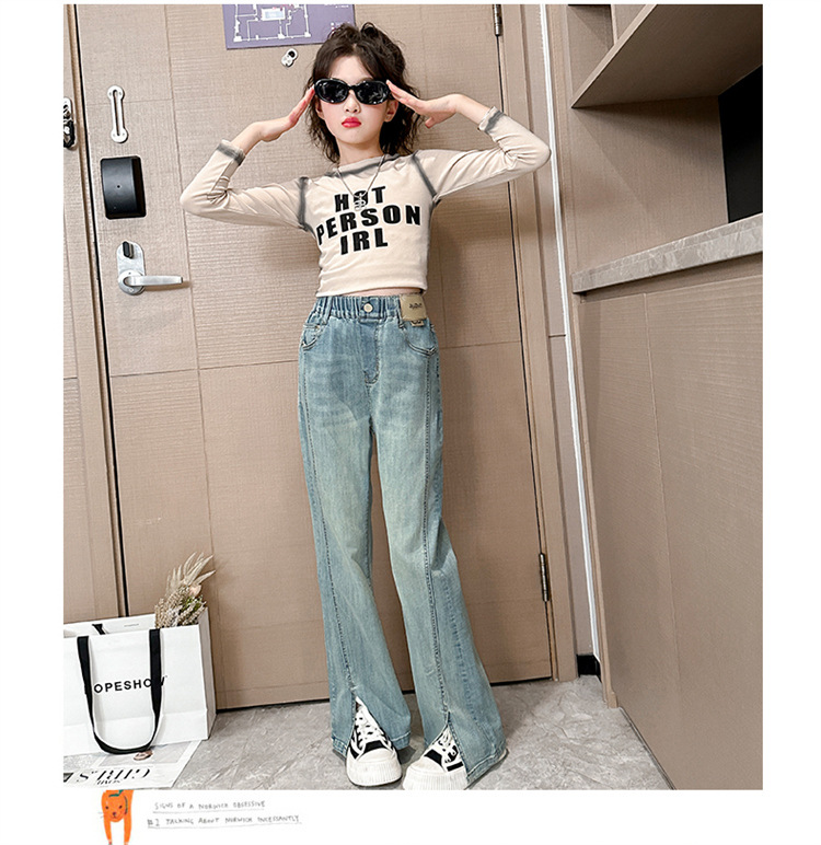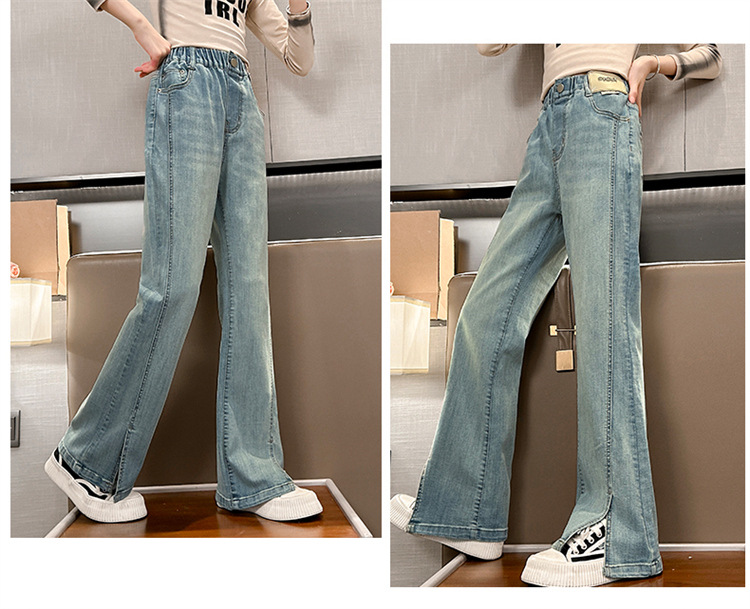 소녀 청바지 봄과 가을 2025 새로운 서양식 소녀 종 바닥 바지 봄 어린이 캐주얼 바지 도매스토어 가기