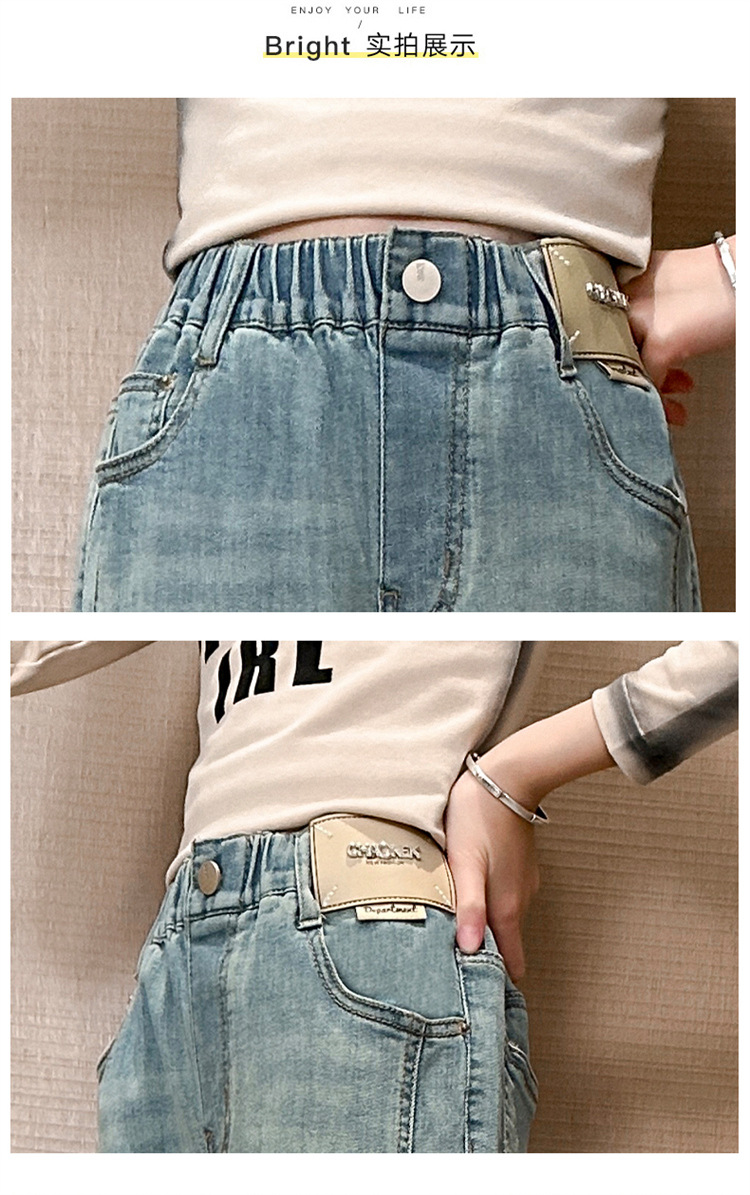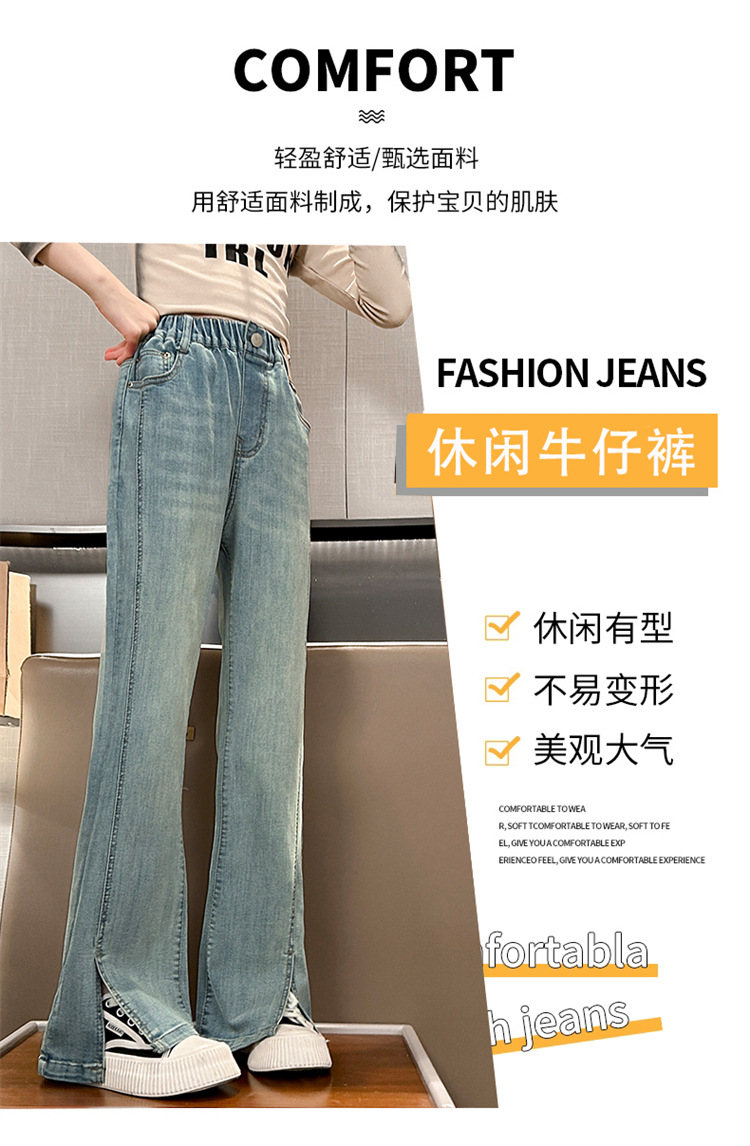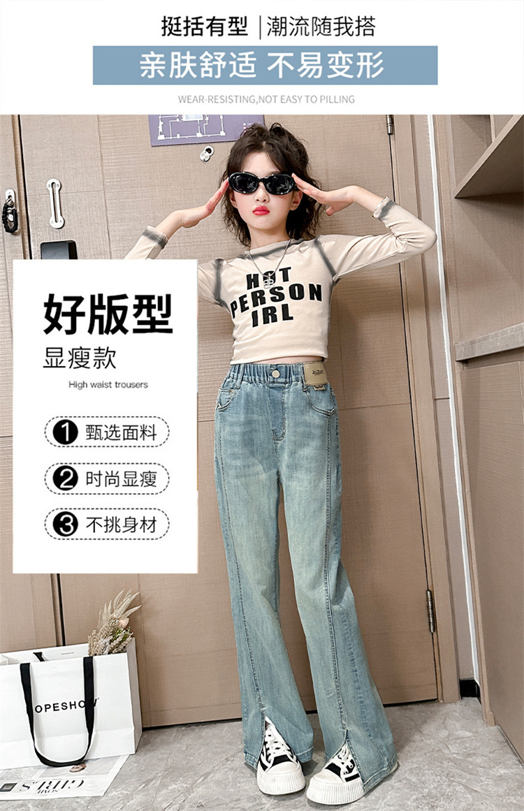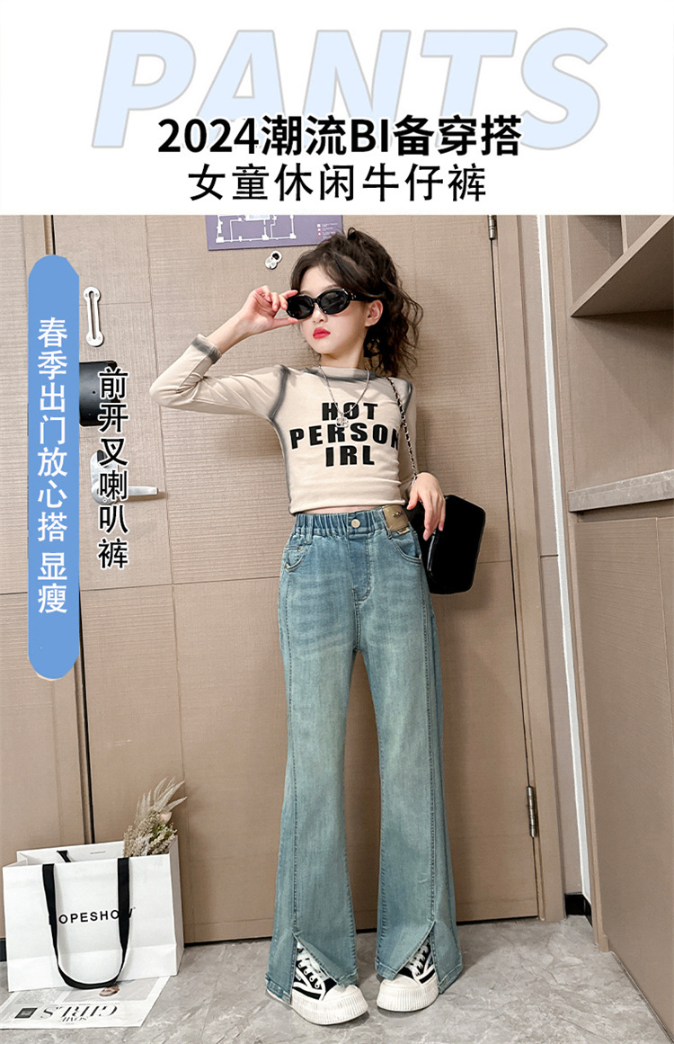 소녀 청바지 봄과 가을 2025 새로운 서양식 소녀 종 바닥 바지 봄 어린이 캐주얼 바지 도매스토어 가기