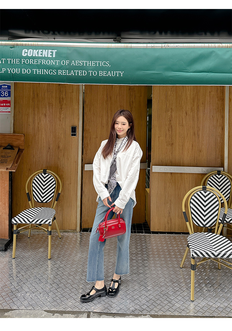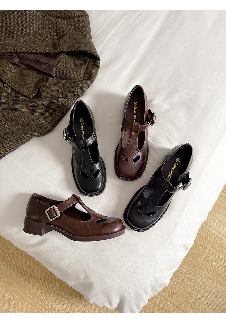 2025 인터넷 인기있는 같은 유행 T 자형 가죽 신발 골드 버클 두꺼운 하단 라운드 헤드 메리 제인 빅 헤드 여성의 봄과 가을 새로운스토어 가기