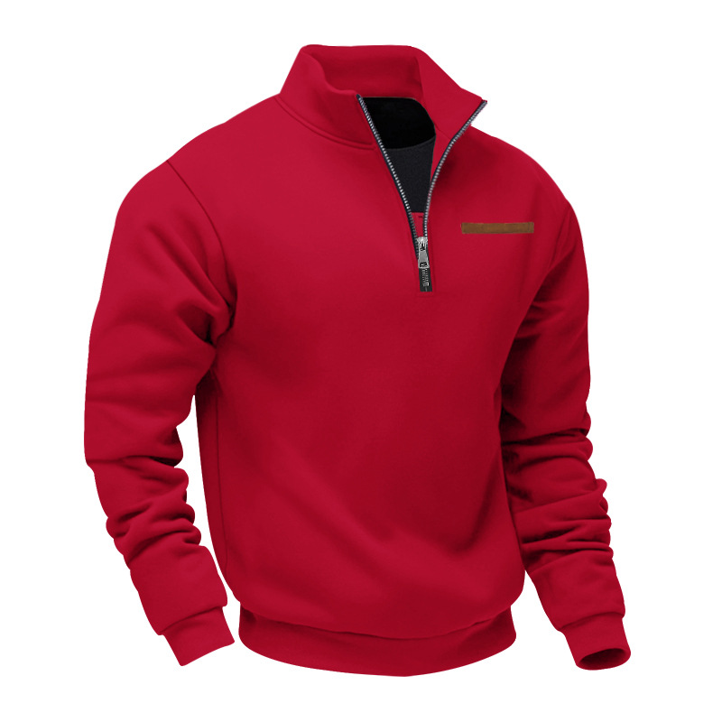 국경을 넘는 미국 독립 역 플러스 사이즈 봄과 가을 기모 하프 지퍼 루즈 스탠드 칼라 풀오버 솔리드 컬러 캐주얼 스웨트 셔츠