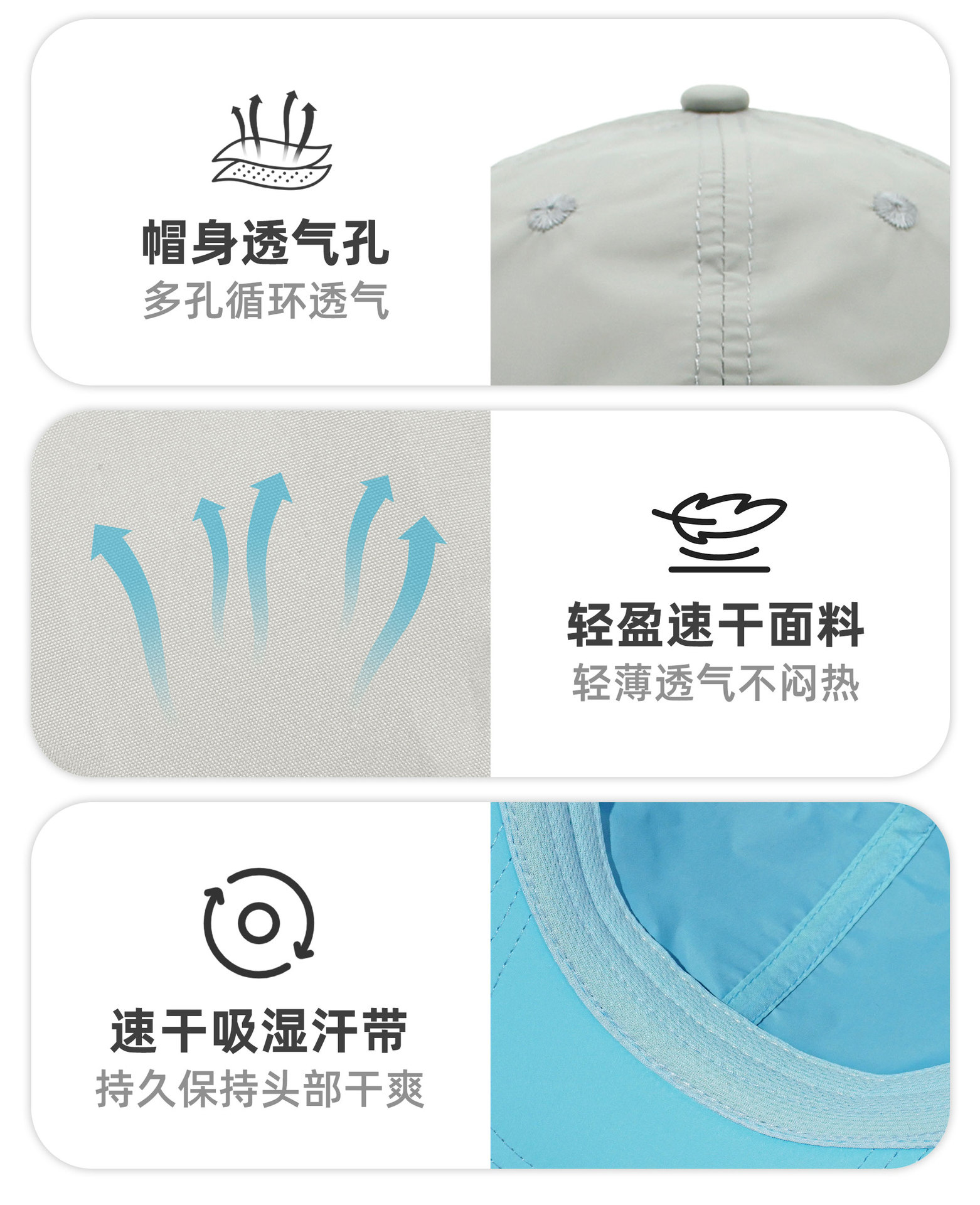 春夏季户外徒步速干跑步运动帽 纯色软顶薄款登山遮阳棒球帽定制
