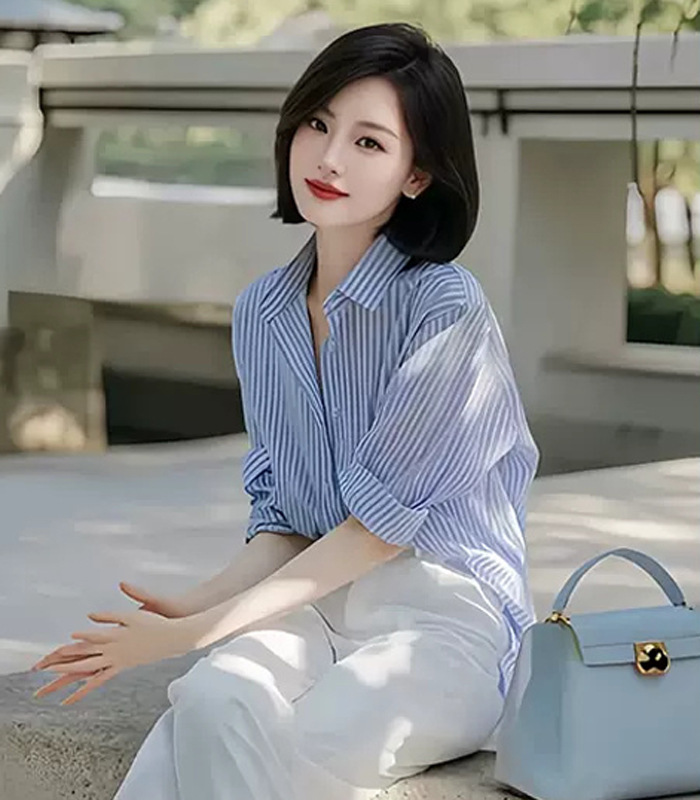 • 싱글 피스 블루 스트라이프 셔츠