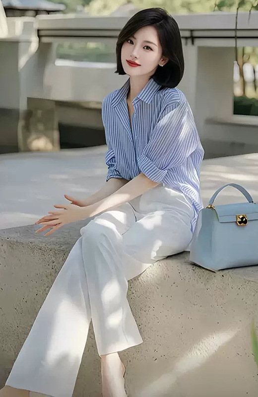 • 정장 (블루 스트라이프 셔츠 + 오프화이트 팬츠)