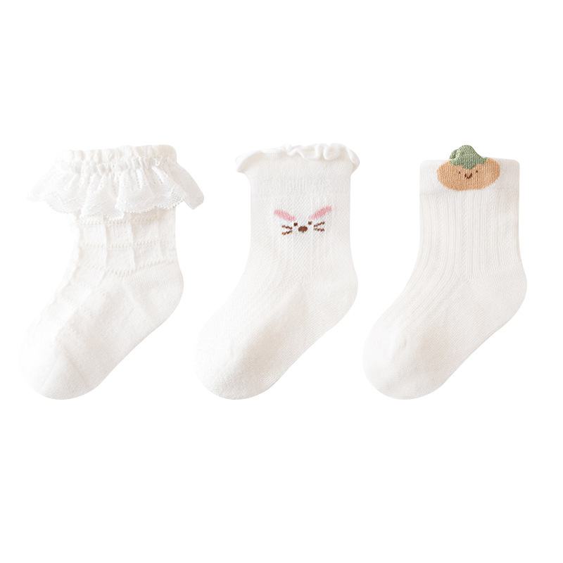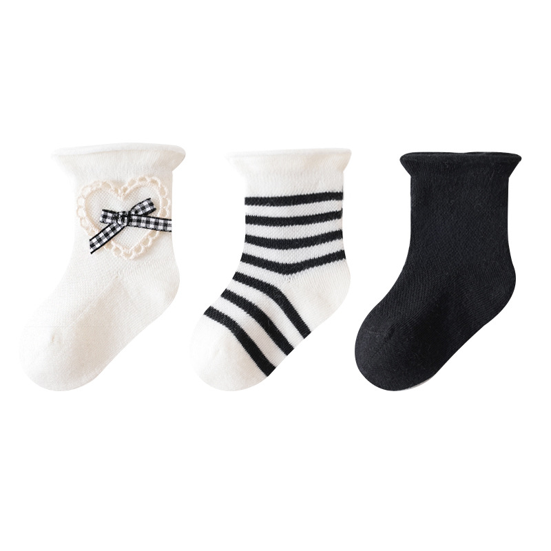 25 아기 양말 봄과 여름 얇은 클래스 A 메쉬 양말 아기 면 양말 중간 튜브 소녀 공주 레이스 양말 나비