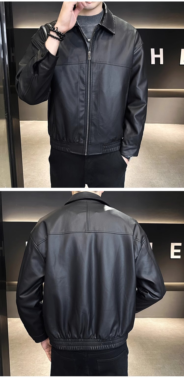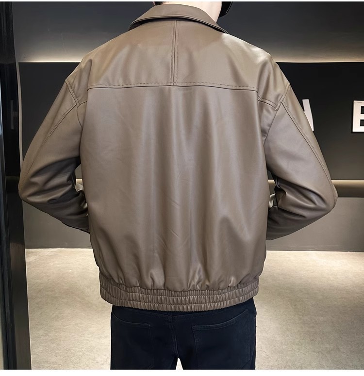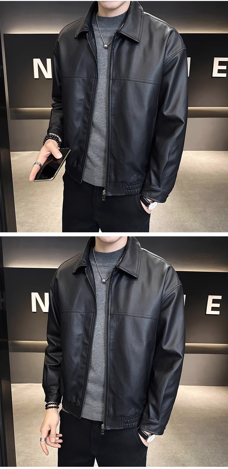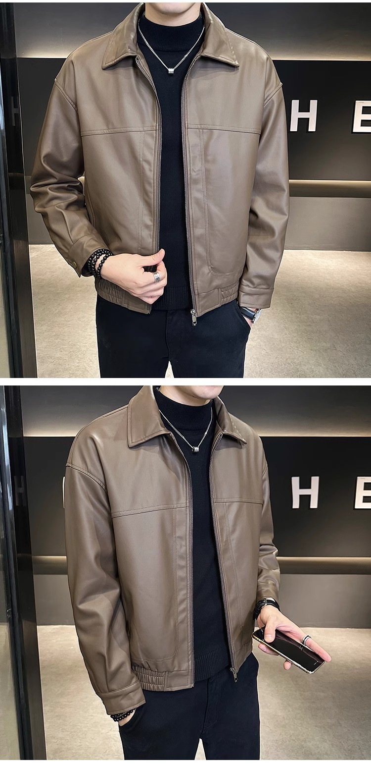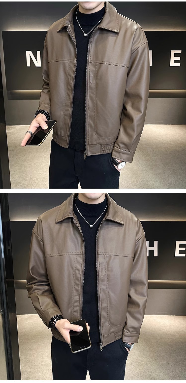 봄 가을과 겨울 남성용 옷깃 간단한 캐주얼 가죽 자켓 코트 2025 새로운 하이 스트리트 푹신한 잘 생긴 PU 가죽 탑 트렌디스토어 가기