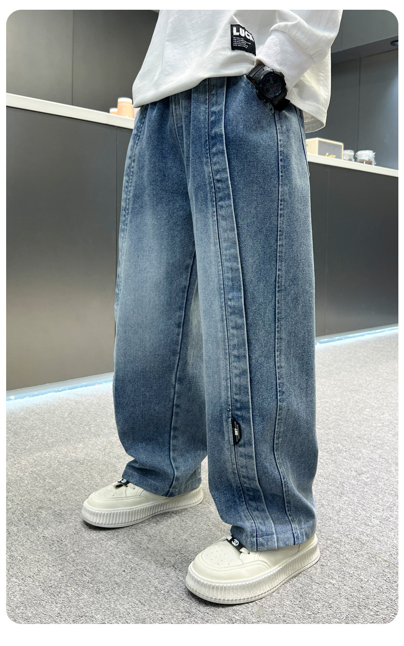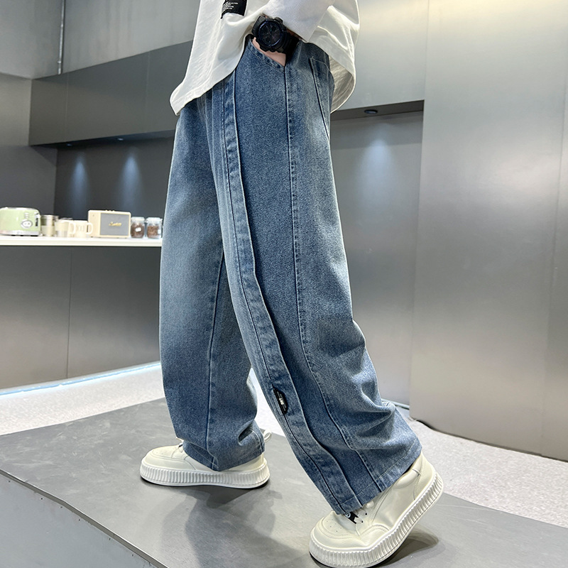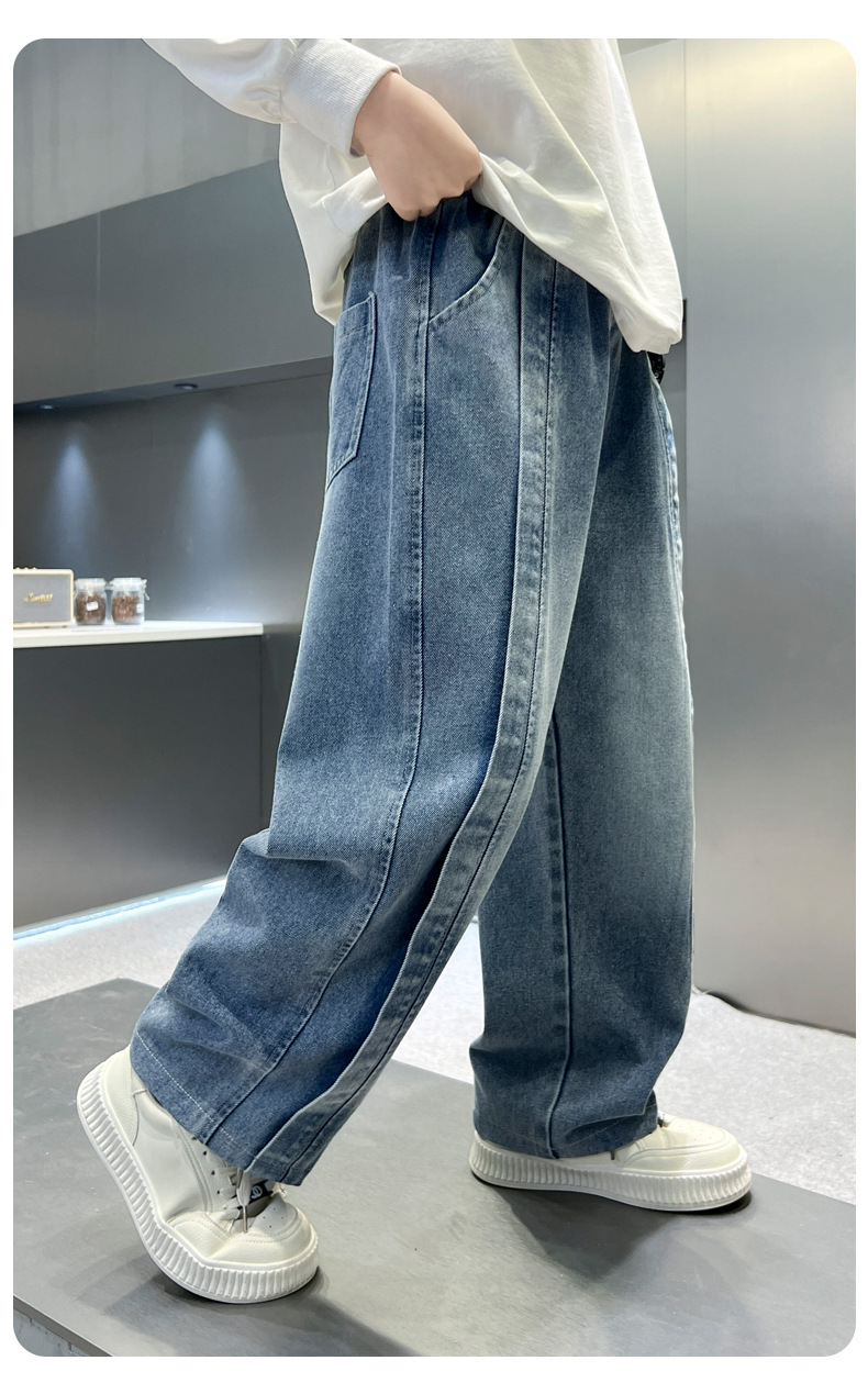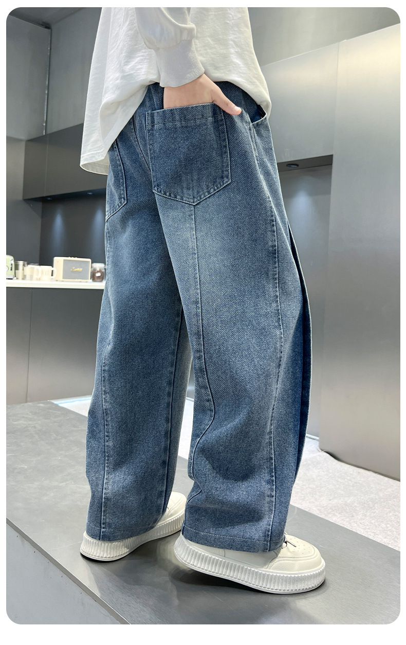 어린이 소년 봄 바지 2025 새로운 청바지 큰 어린이 봄 캐주얼 소년 봄과 가을 바지스토어 가기