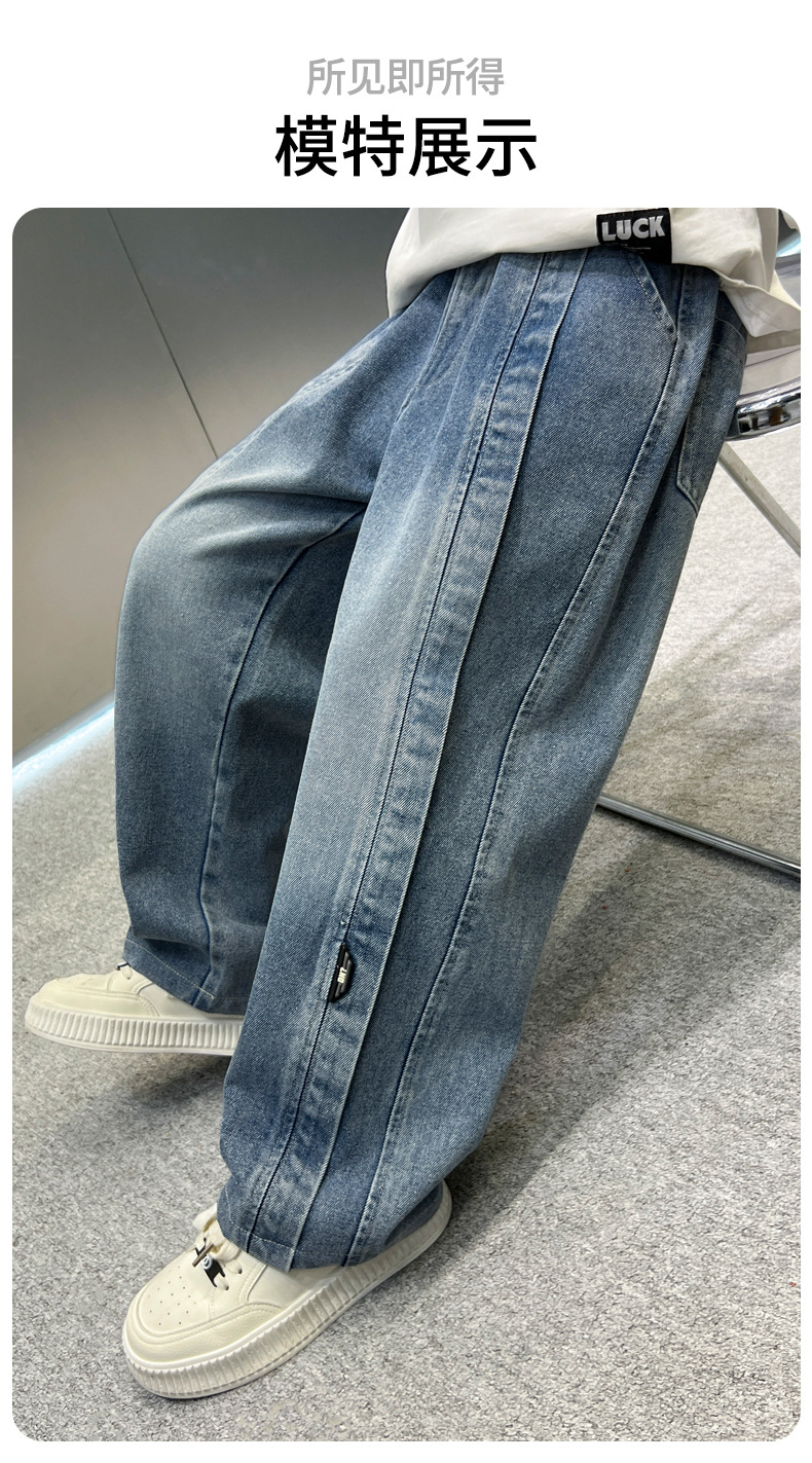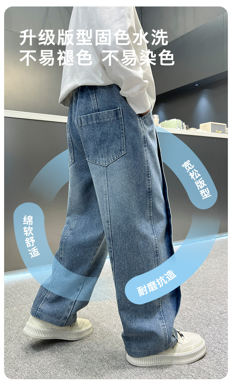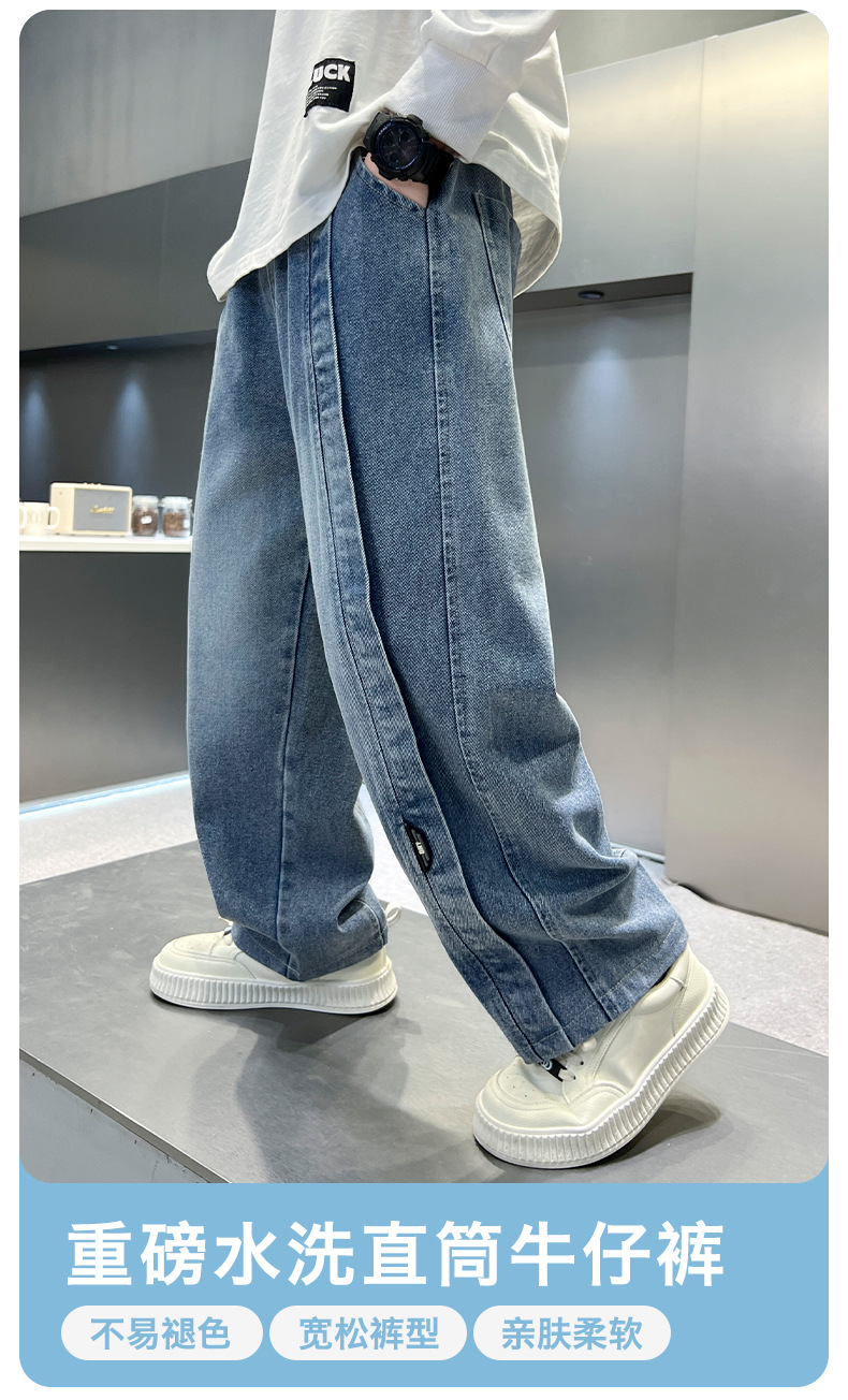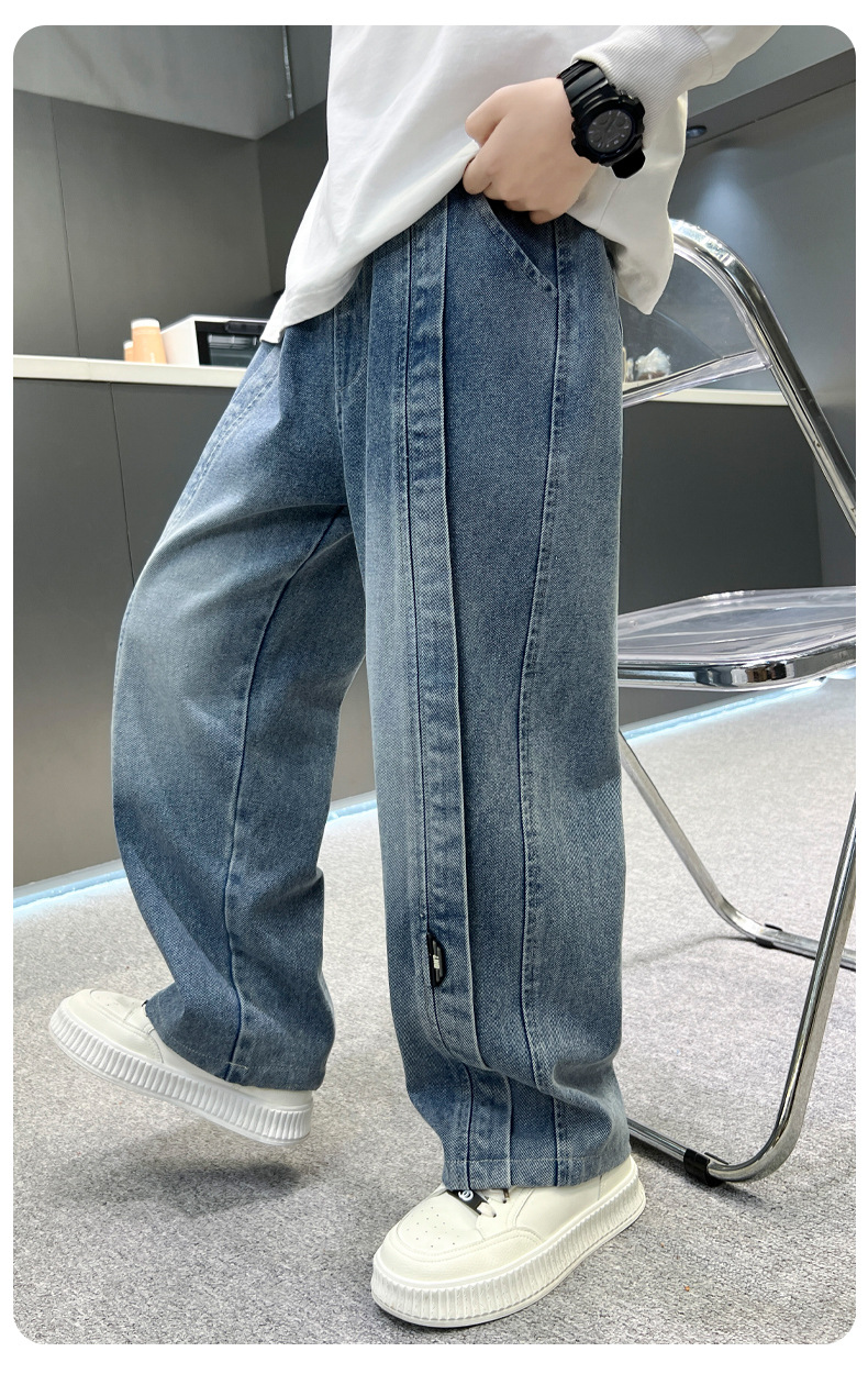 어린이 소년 봄 바지 2025 새로운 청바지 큰 어린이 봄 캐주얼 소년 봄과 가을 바지스토어 가기