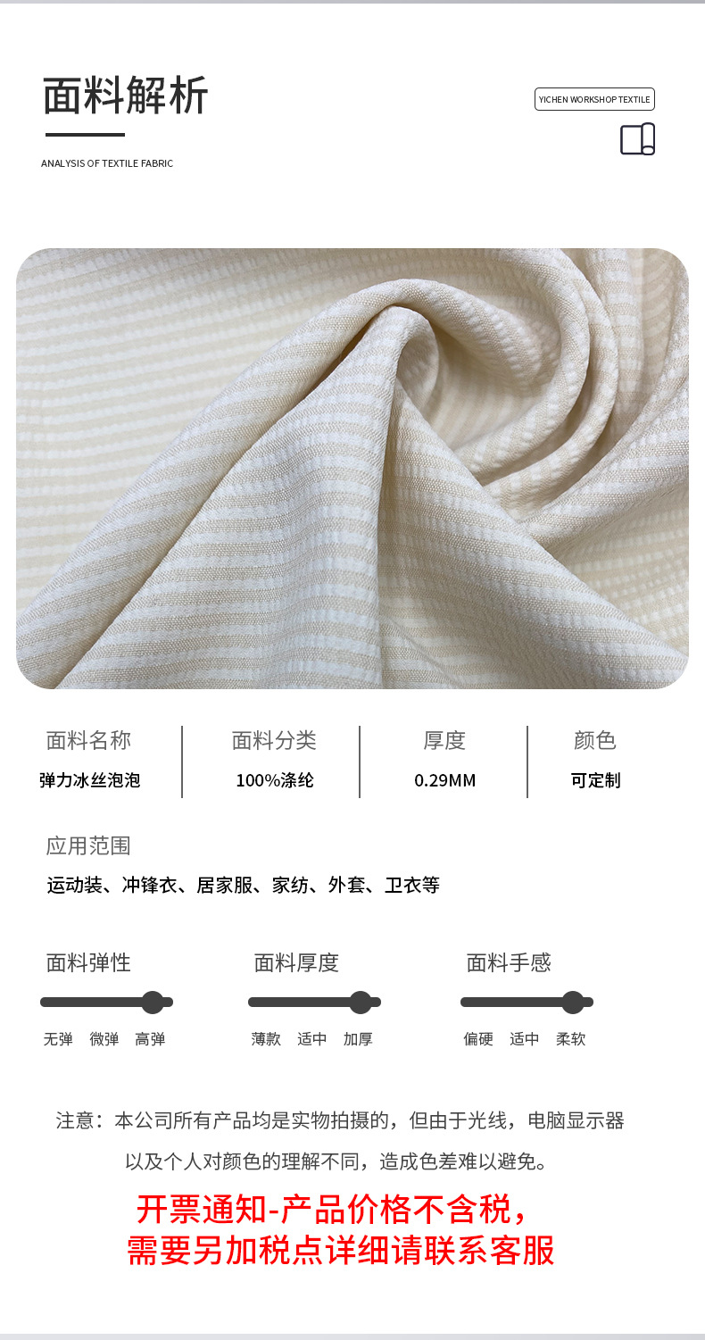 스트레치 얼음 실크 버블 패브릭 130g 폴리 에스터 주름진 고 탄성 패브릭 셔츠 원피스 한푸 패브릭 도매스토어 가기