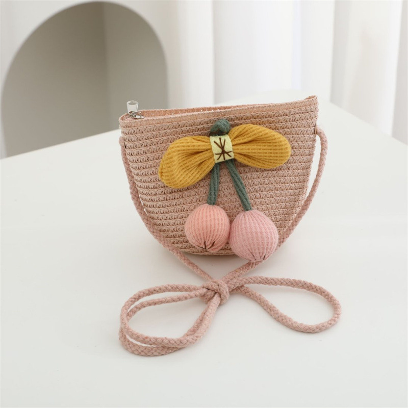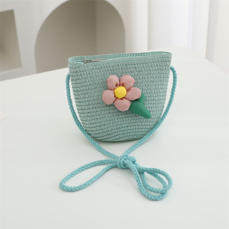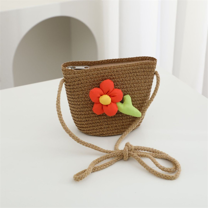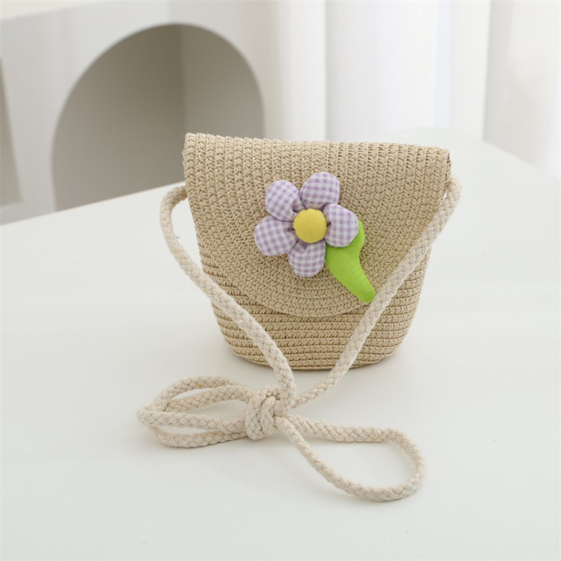 봄과 여름 새로운 밀짚 어린이 가방 해바라기 동전 지갑 플립 커버 여행 해변 소녀의 패션 크로스 바디 작은 가방스토어 가기