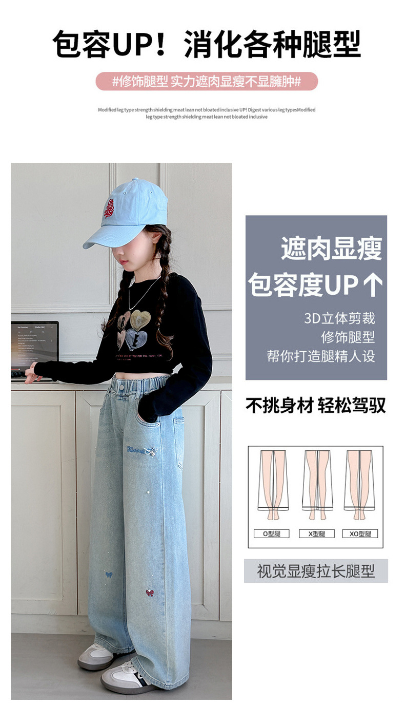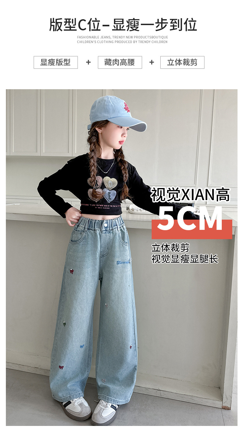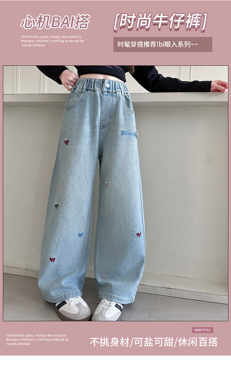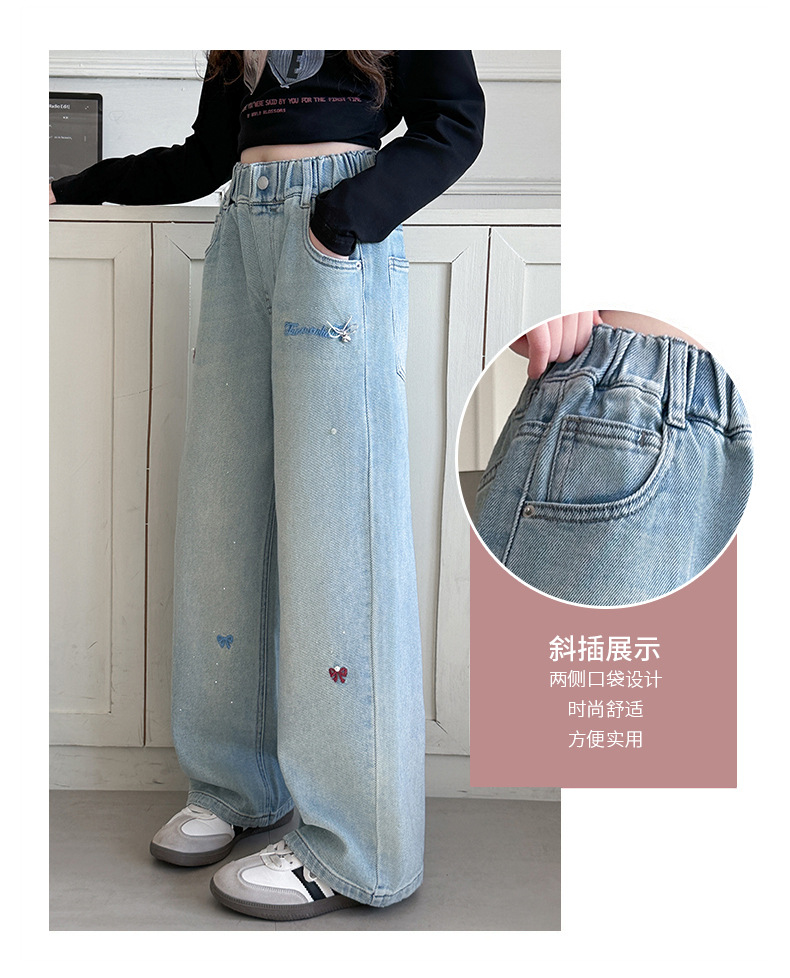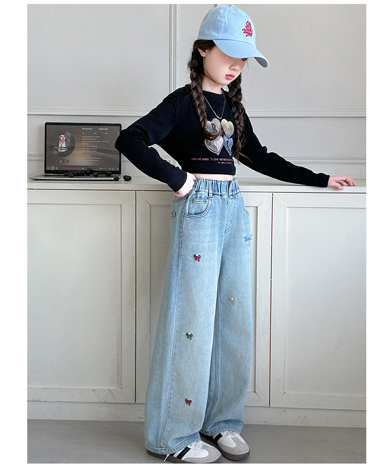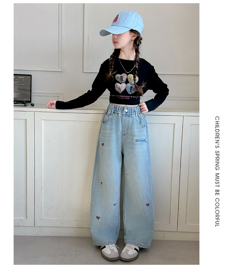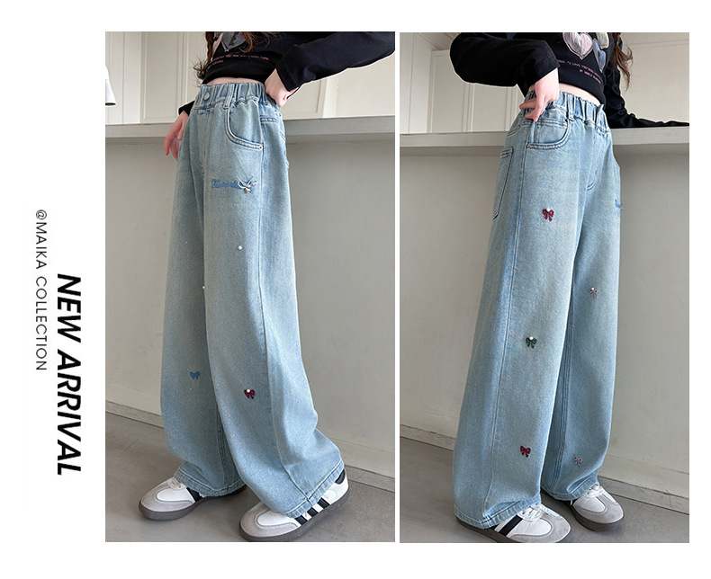 소녀 바지 봄과 가을 유행 서양식 인터넷 연예인 거리 넓은 다리 바지 봄 어린이 캐주얼 청바지스토어 가기