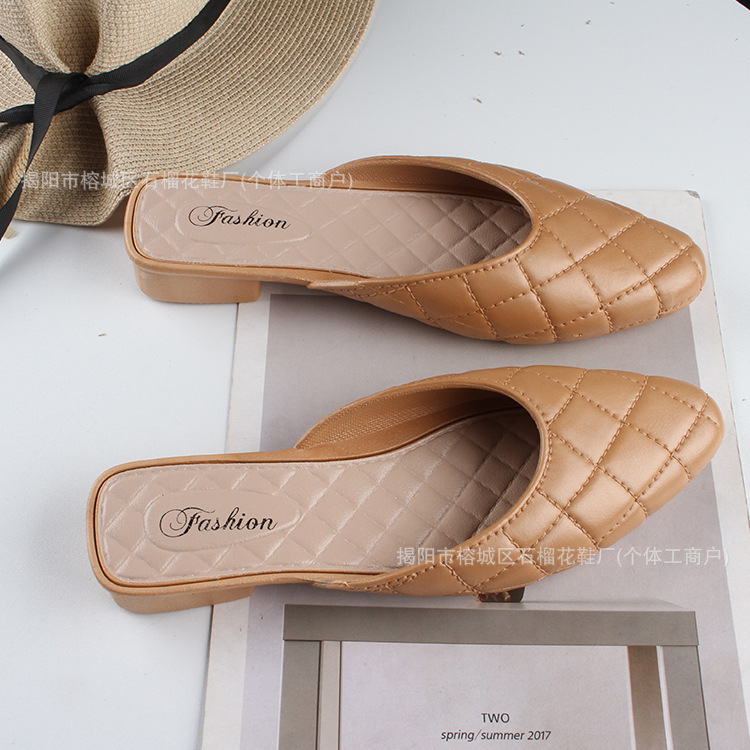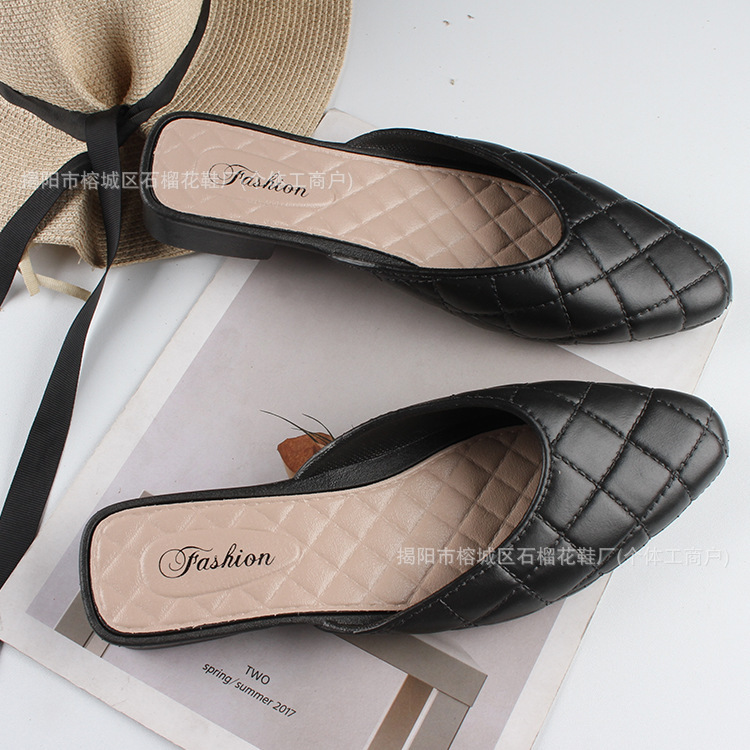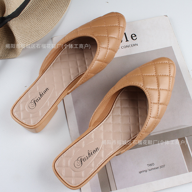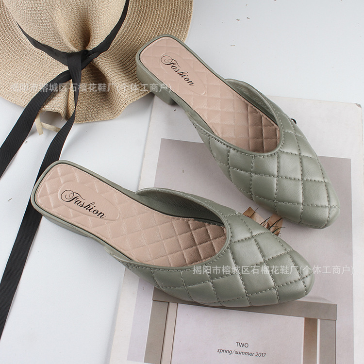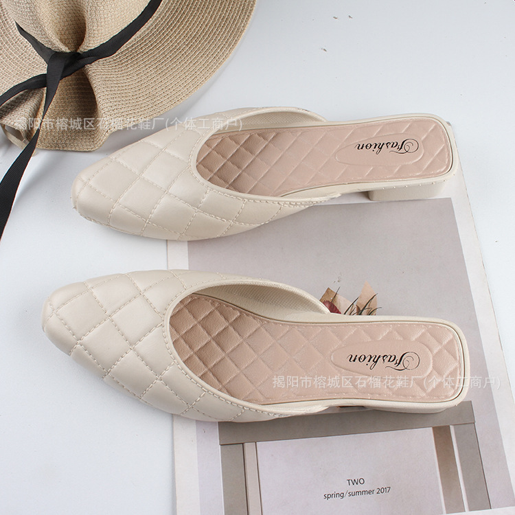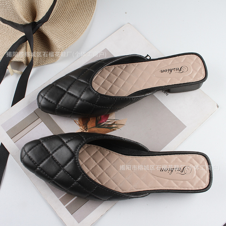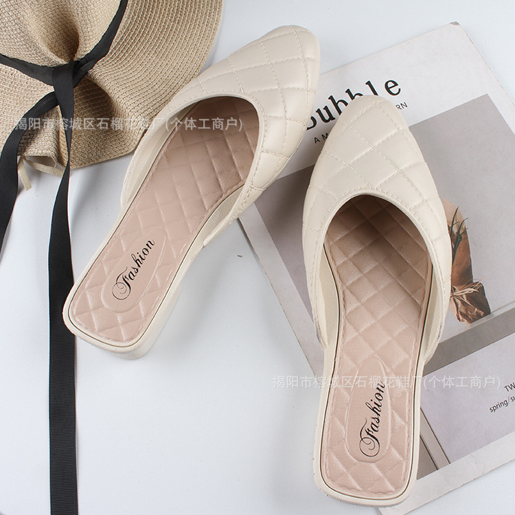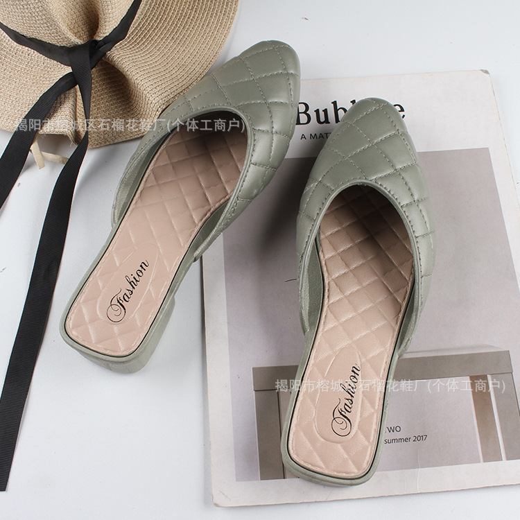 여성을위한 석류 꽃 발가락 슬리퍼 여름 새로운 패션 솔리드 컬러 뾰족한 발가락 캐주얼 슬립 온 플랫 샌들스토어 가기