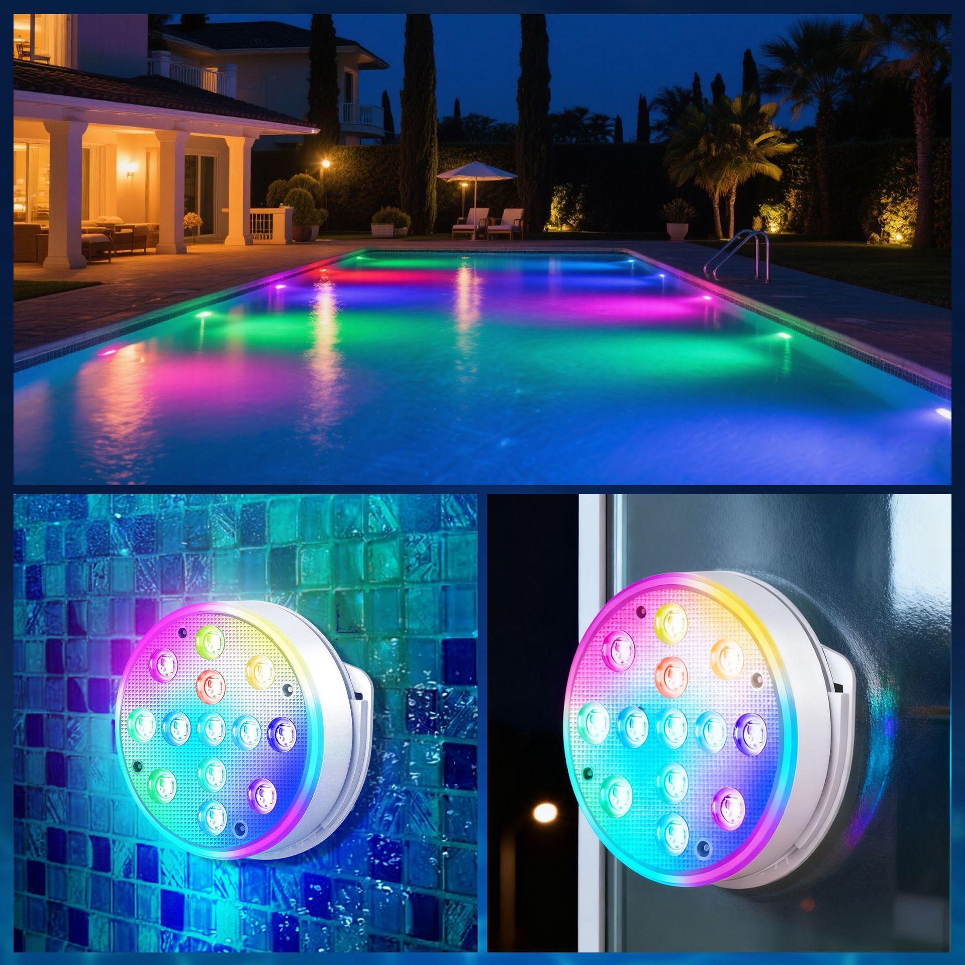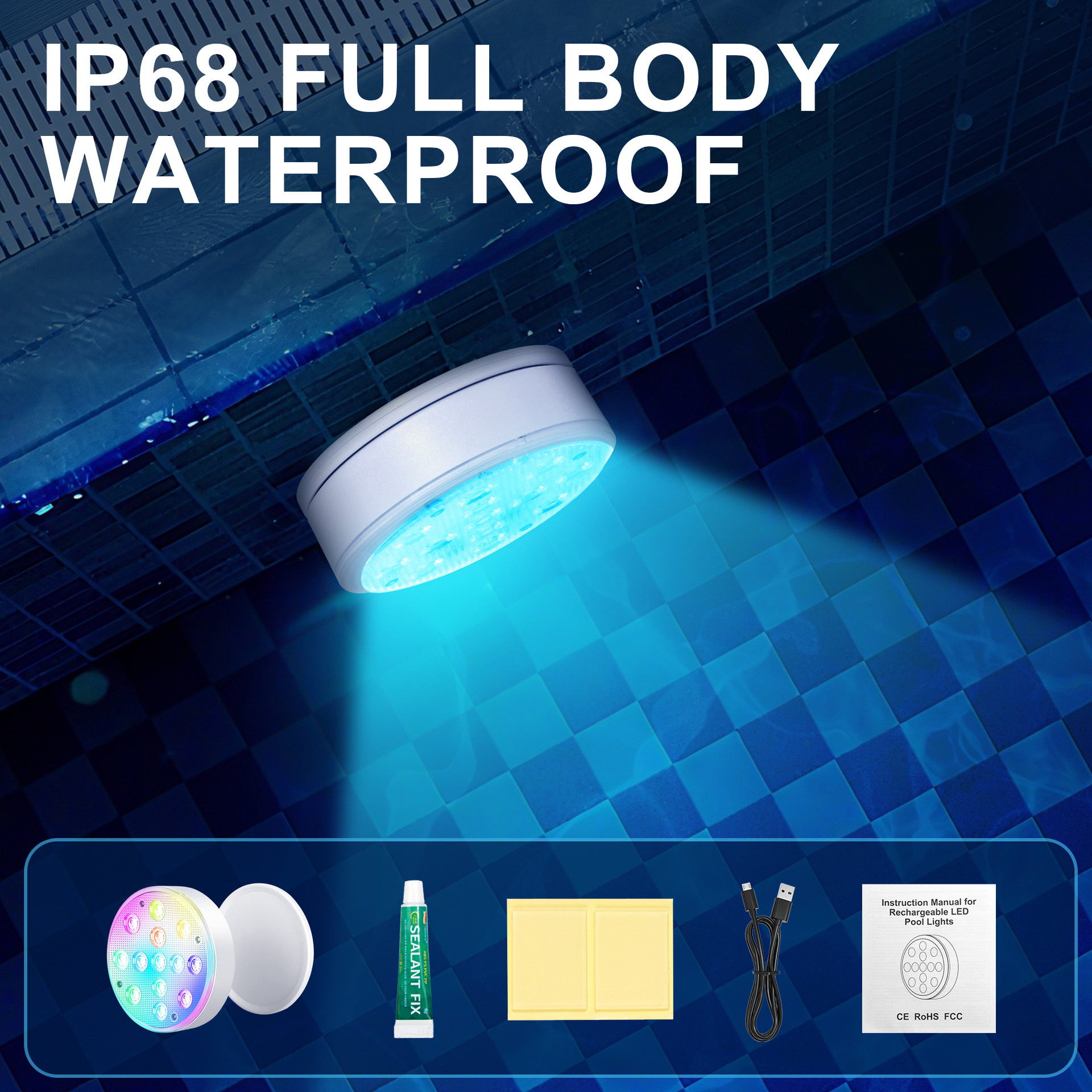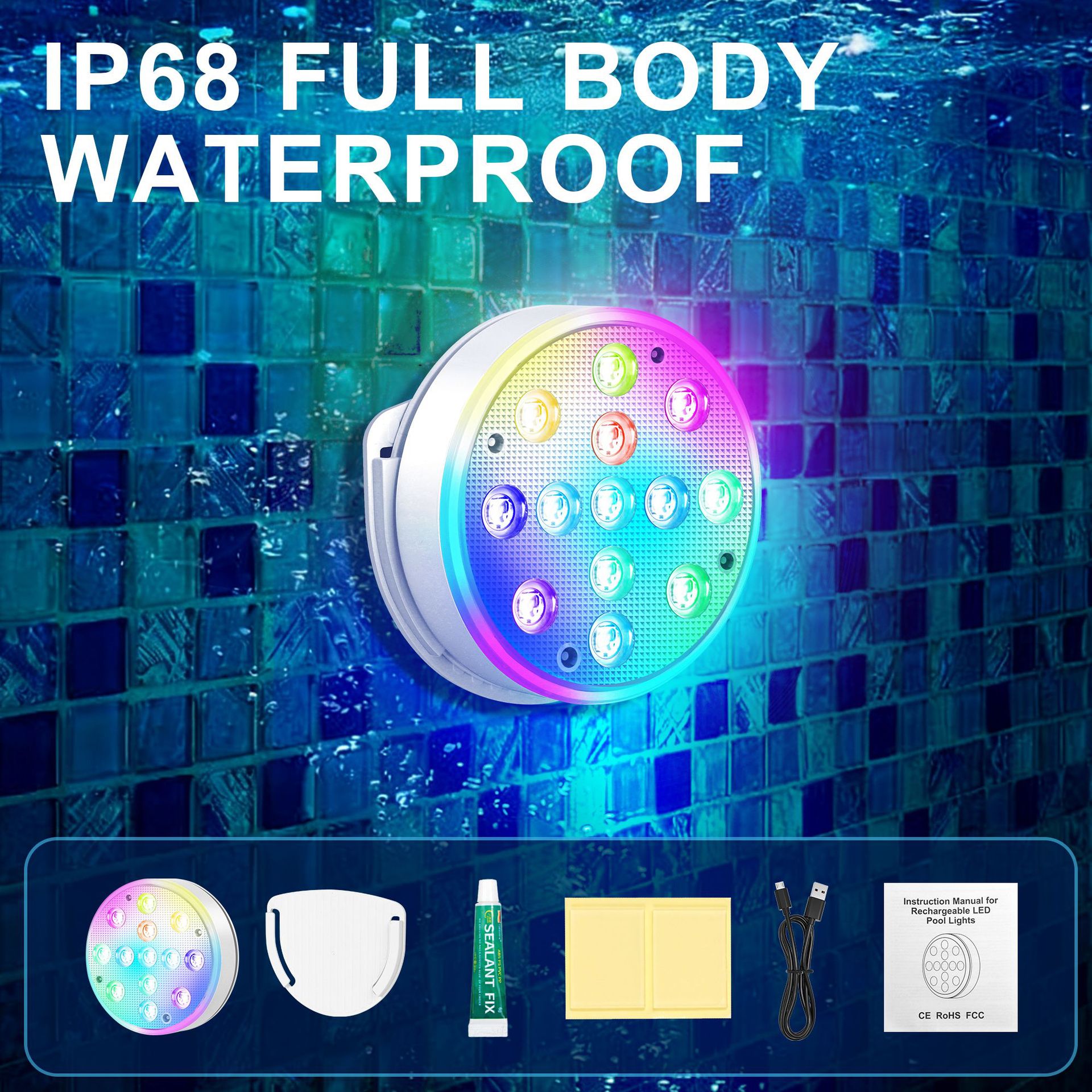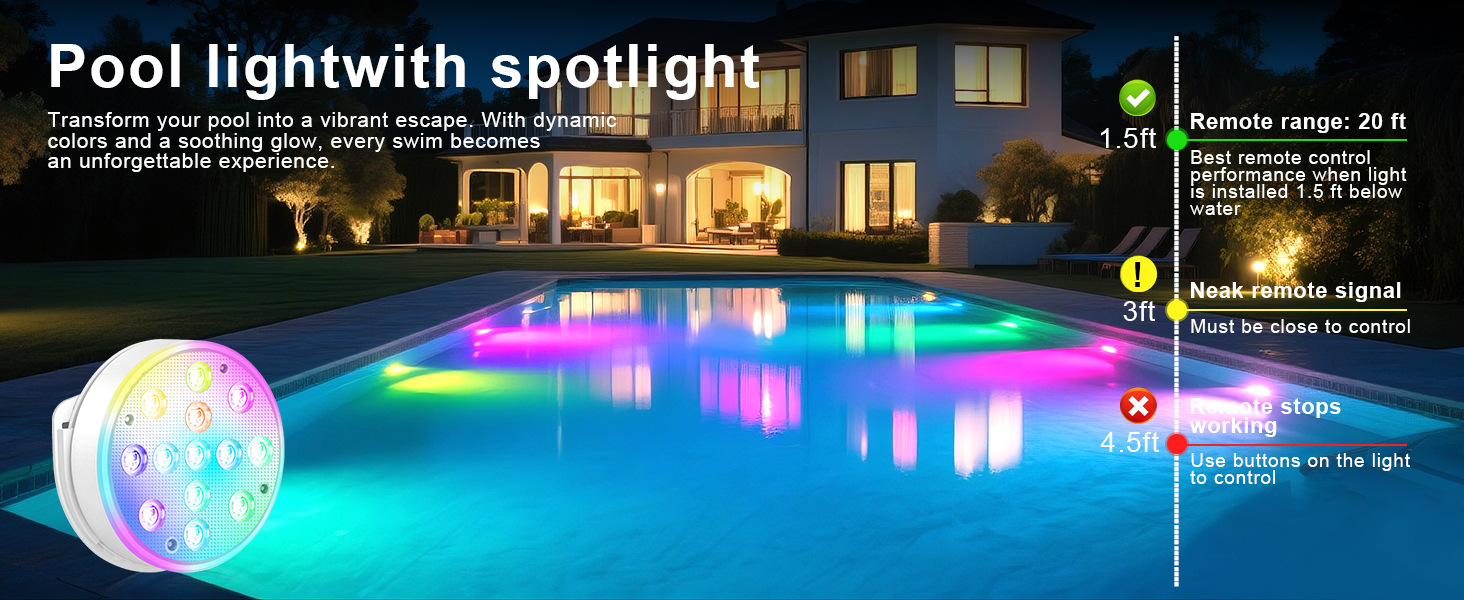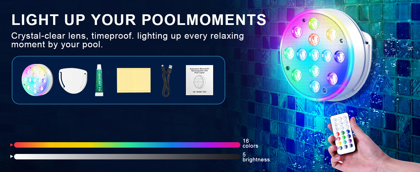 수영장 벽 램프 LED 수영장 램프 자기 충전 다이빙 램프 13 구슬 원격 제어 수중 램프 IP68 풍경 분위기 램프