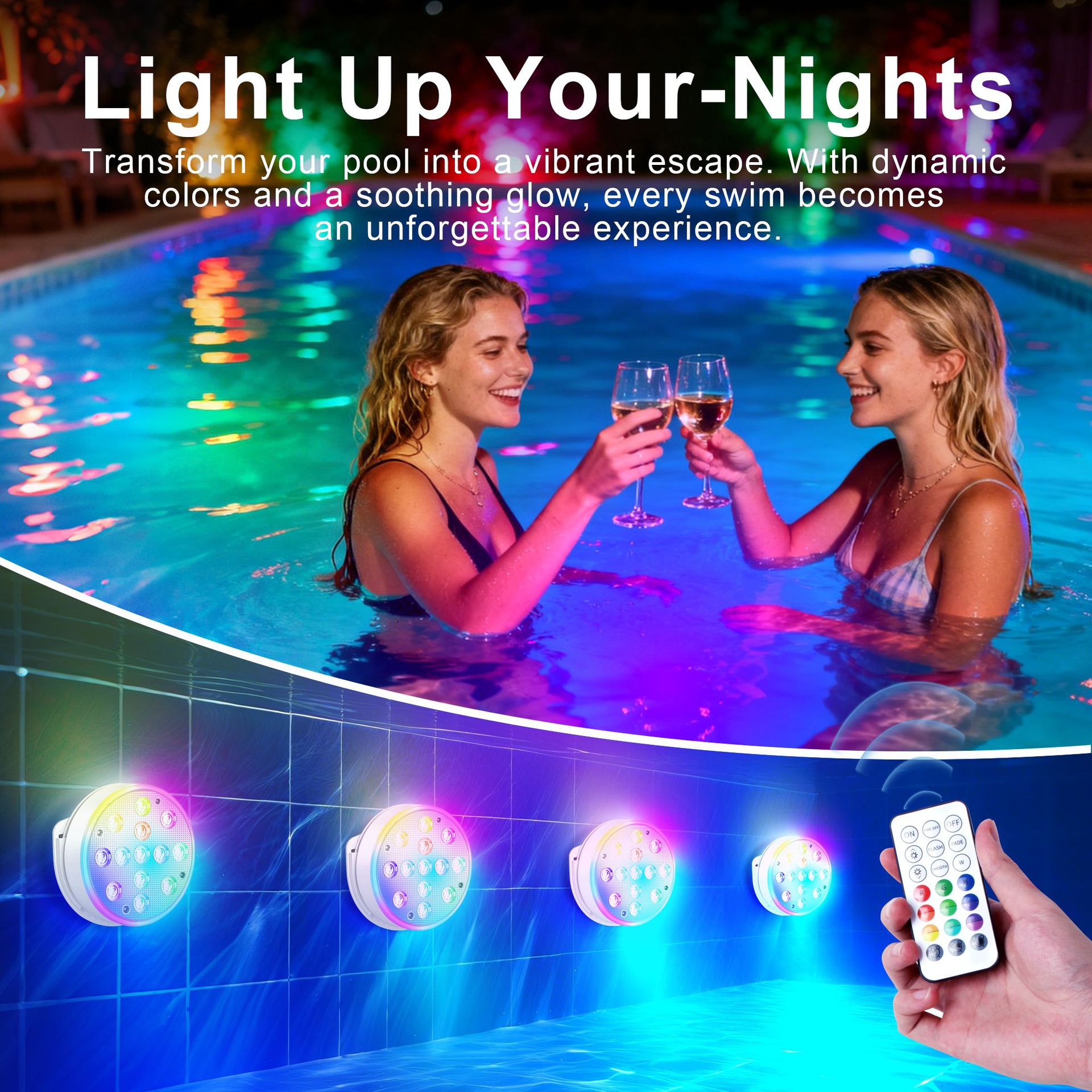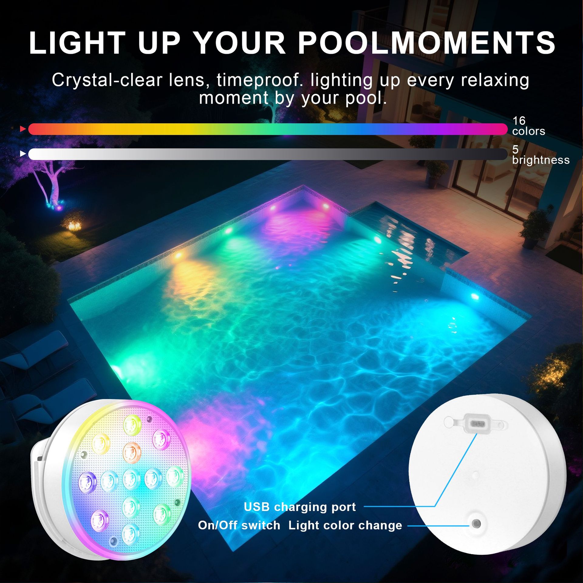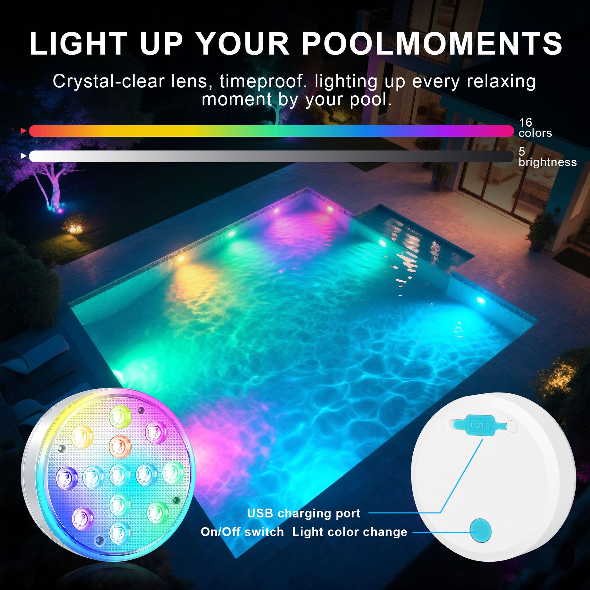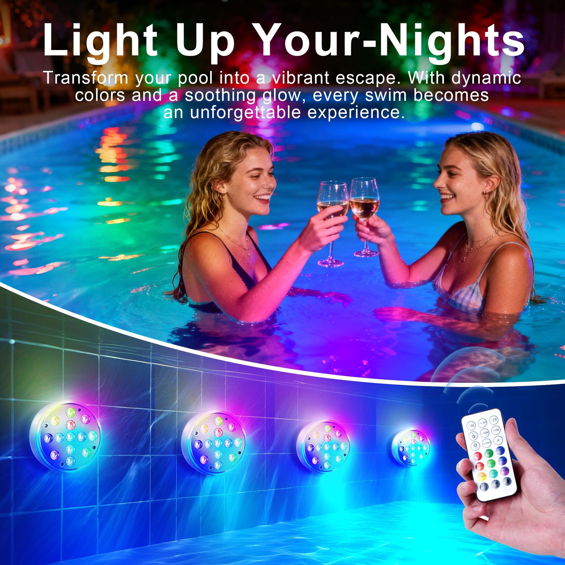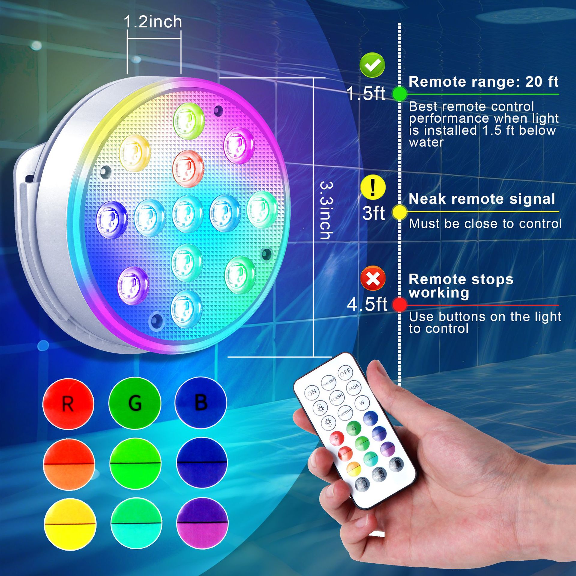 수영장 벽 램프 LED 수영장 램프 자기 충전 다이빙 램프 13 구슬 원격 제어 수중 램프 IP68 풍경 분위기 램프