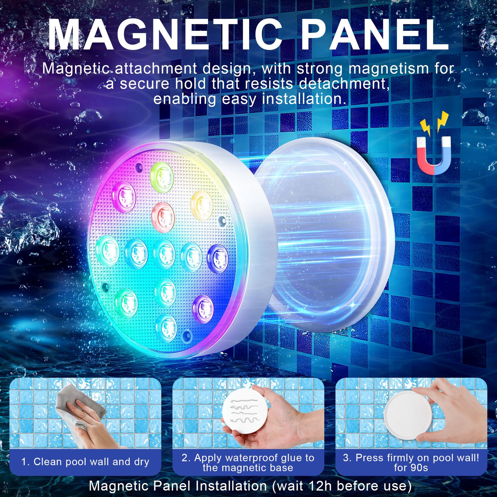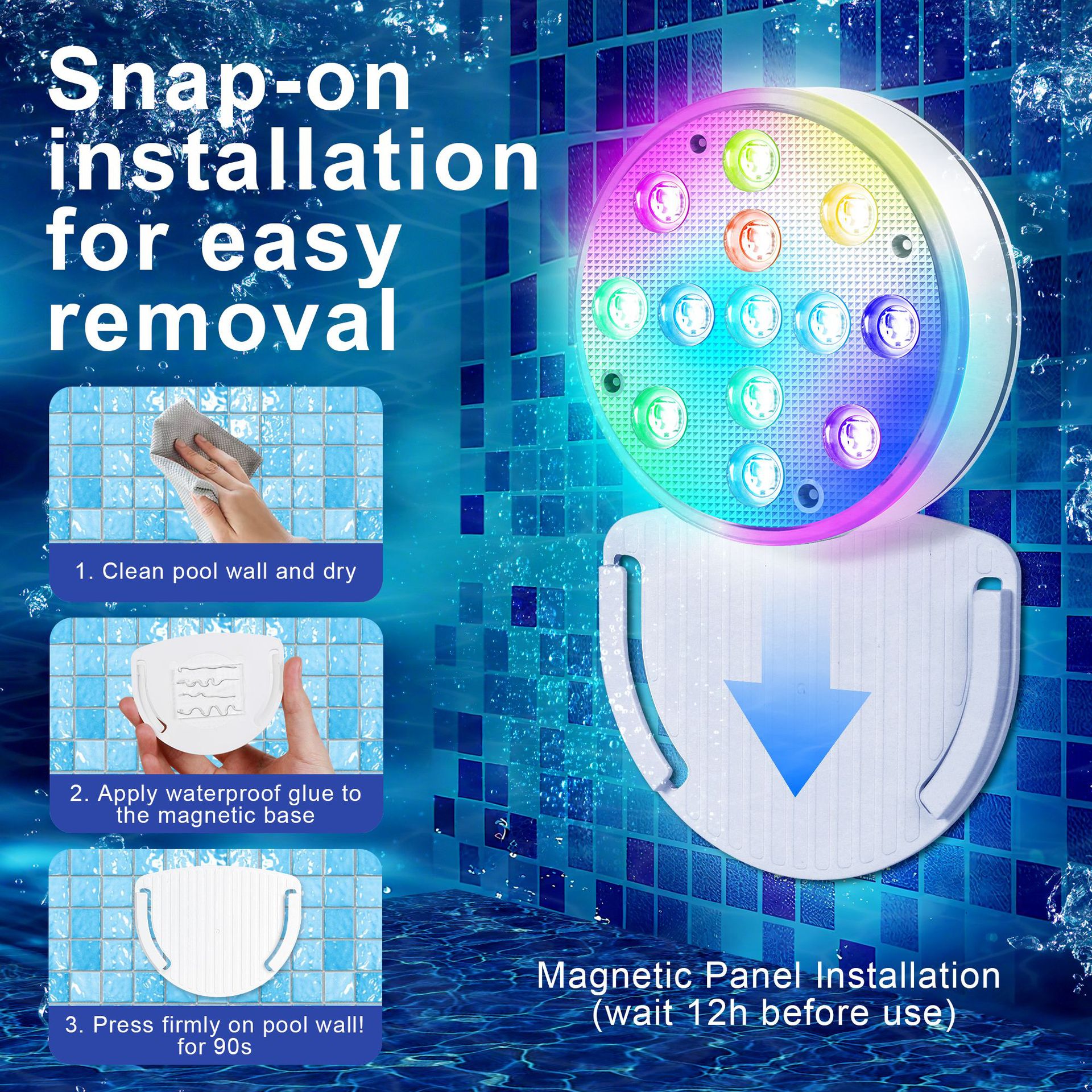수영장 벽 램프 LED 수영장 램프 자기 충전 다이빙 램프 13 구슬 원격 제어 수중 램프 IP68 풍경 분위기 램프스토어 가기