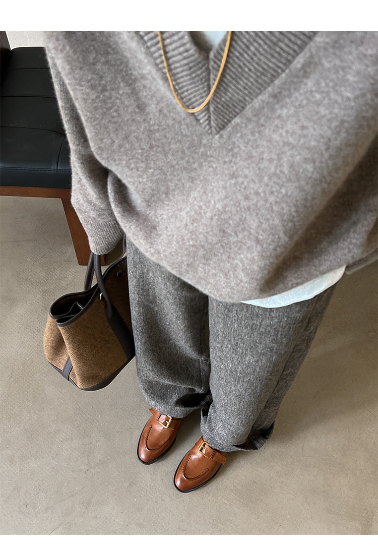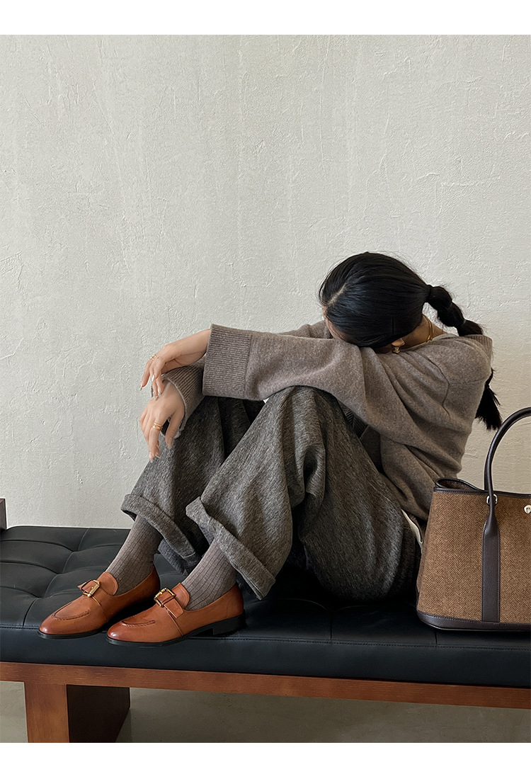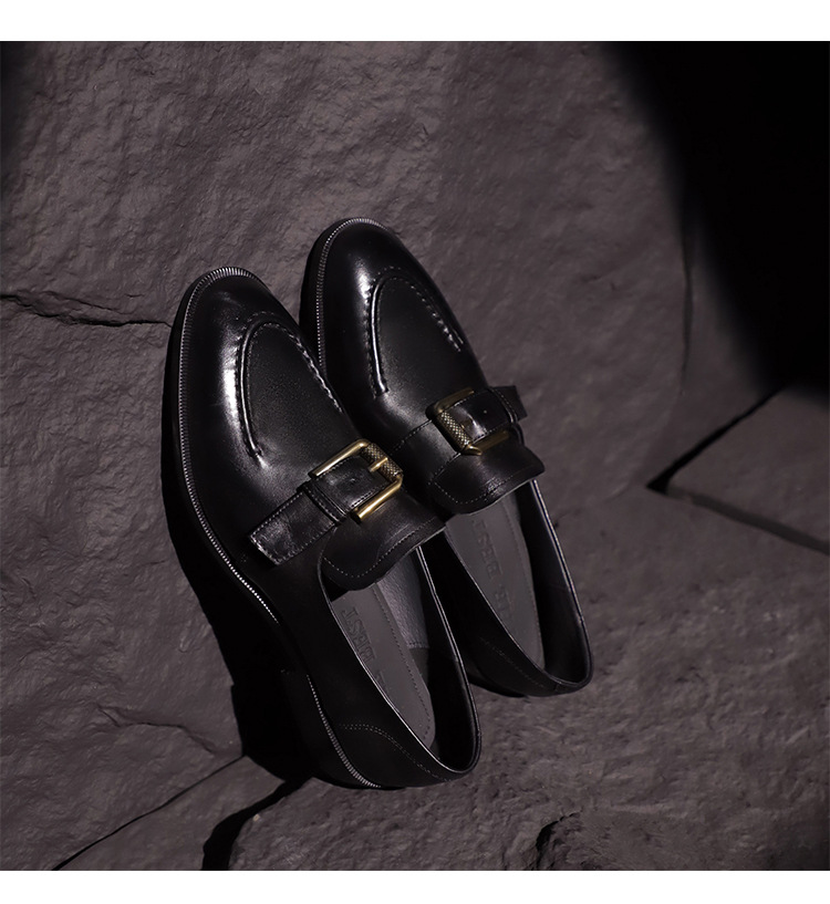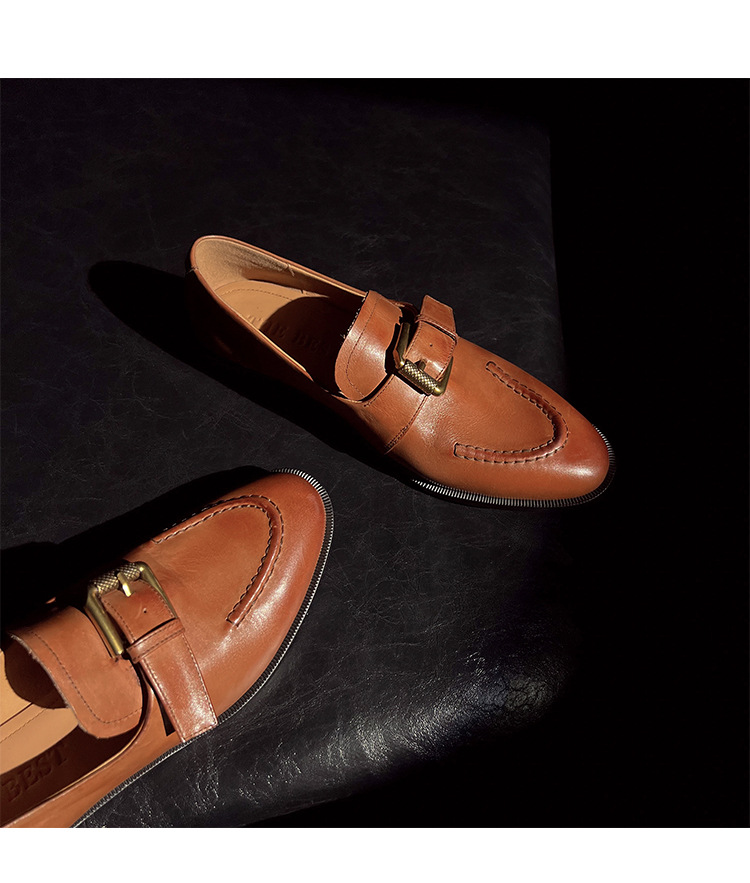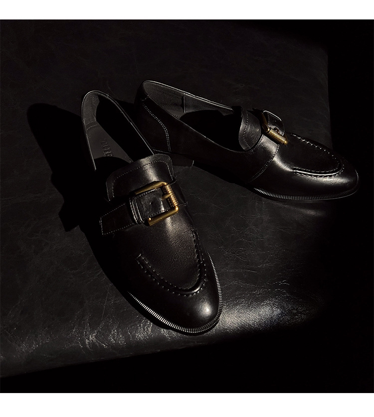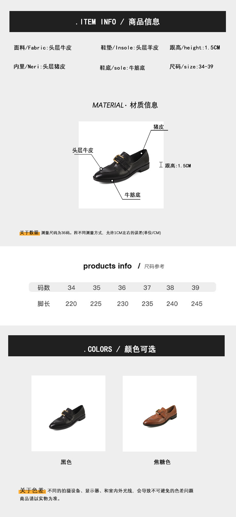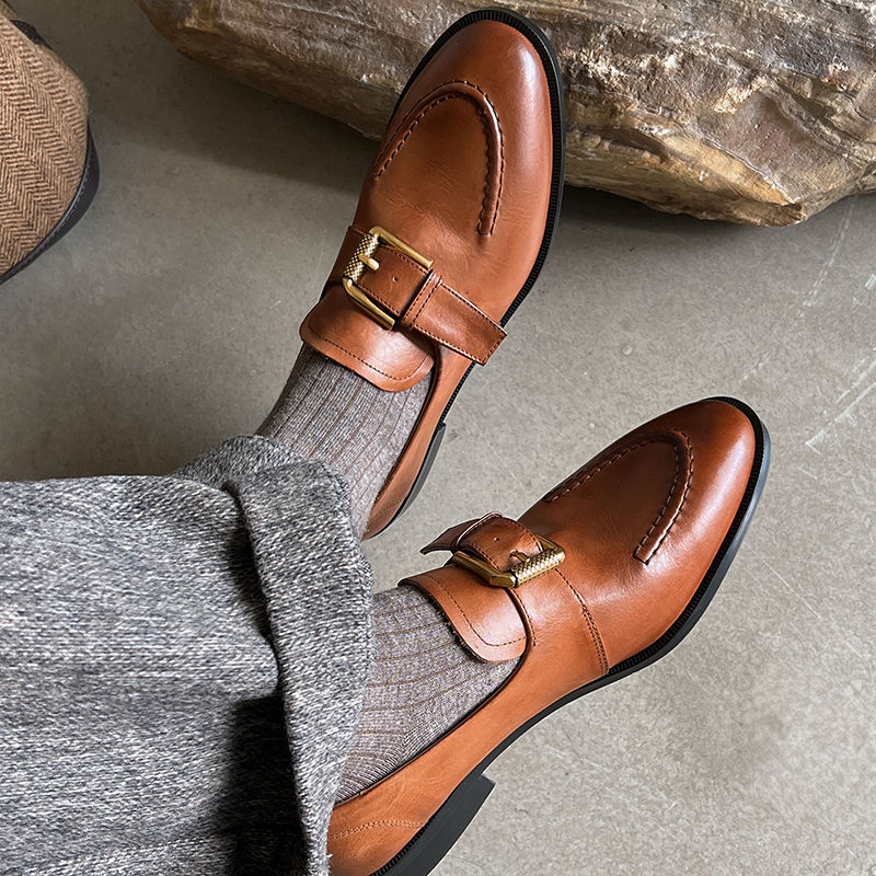 라운드 헤드 로퍼 여성 2025 봄 새로운 깊은 입 신발 벨트 버클 주름 탑 레이어 소 가죽 여성 신발 도매스토어 가기