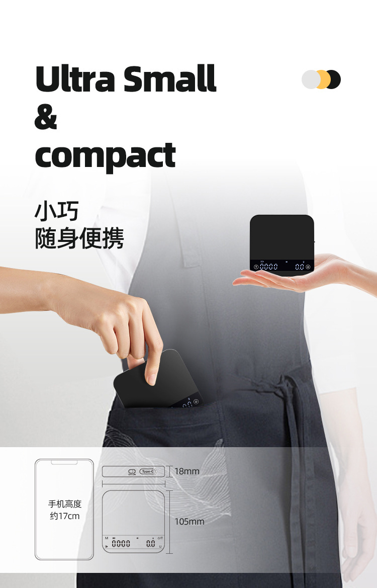 국경 간 전문 손으로 만든 에스프레소 커피 스케일 타이밍 USB 미니 전자 스케일 0.1g 고정밀 소형 베이킹 스케일