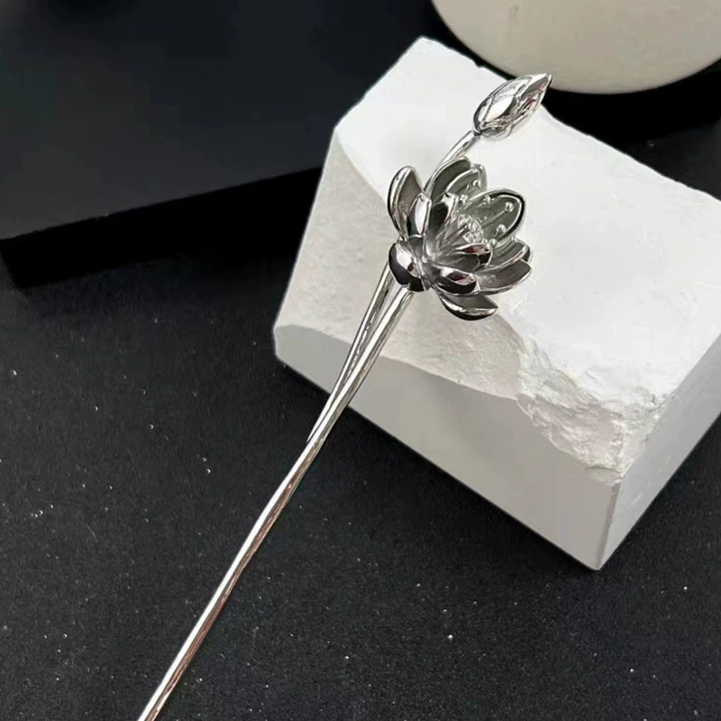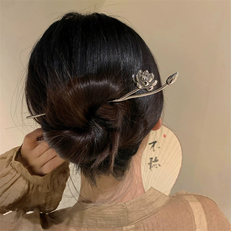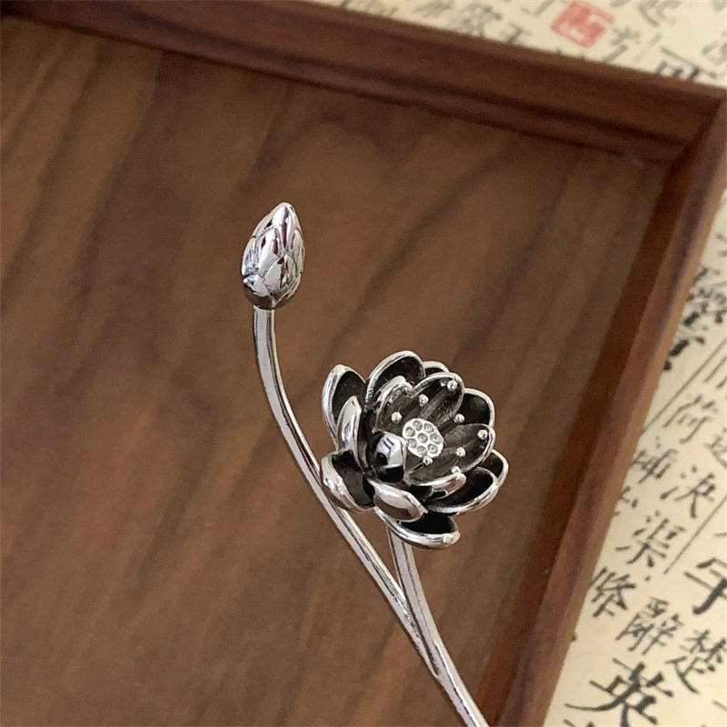 새로운 중국 스타일 국립 스타일 로터스 꽃 헤어핀 여성 골동품 스타일 개인화 된 간단한 스타일 헤어 헤어핀 청삼 한푸 올 매치 헤어 액세서리