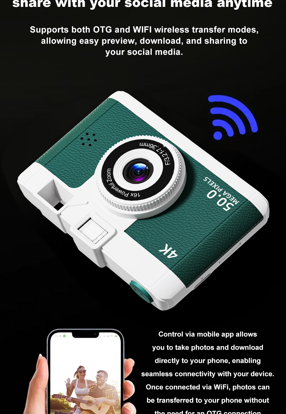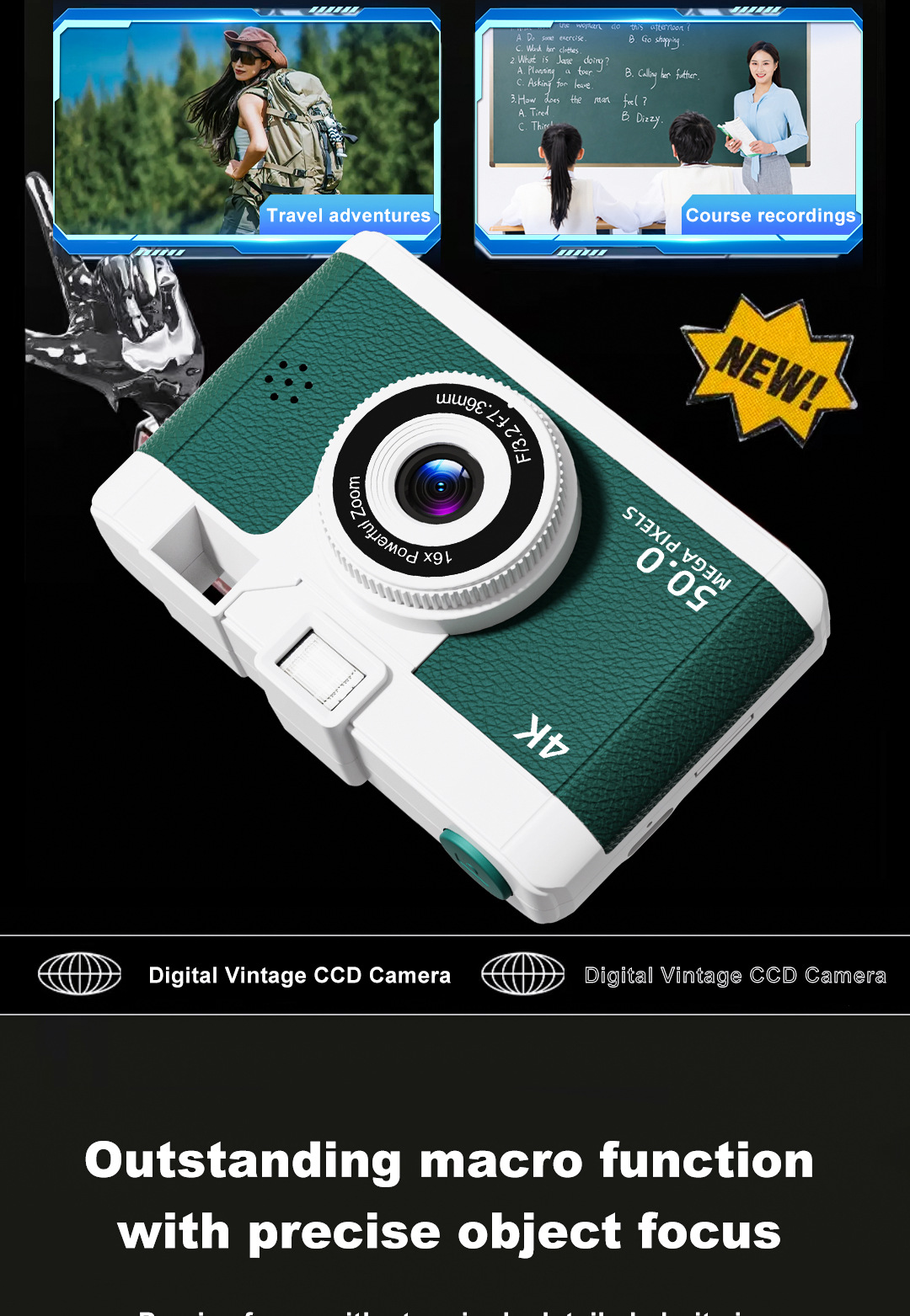 국경 간 폭발 CCD 레트로 HD 디지털 카메라 와이파이 전송 학생 캠퍼스 여행 카드 카메라
