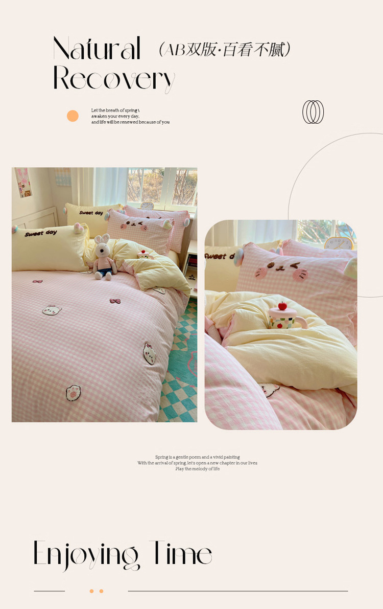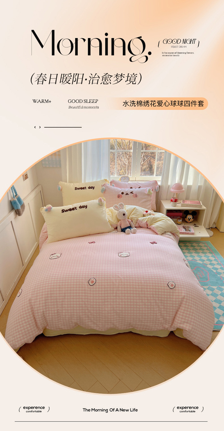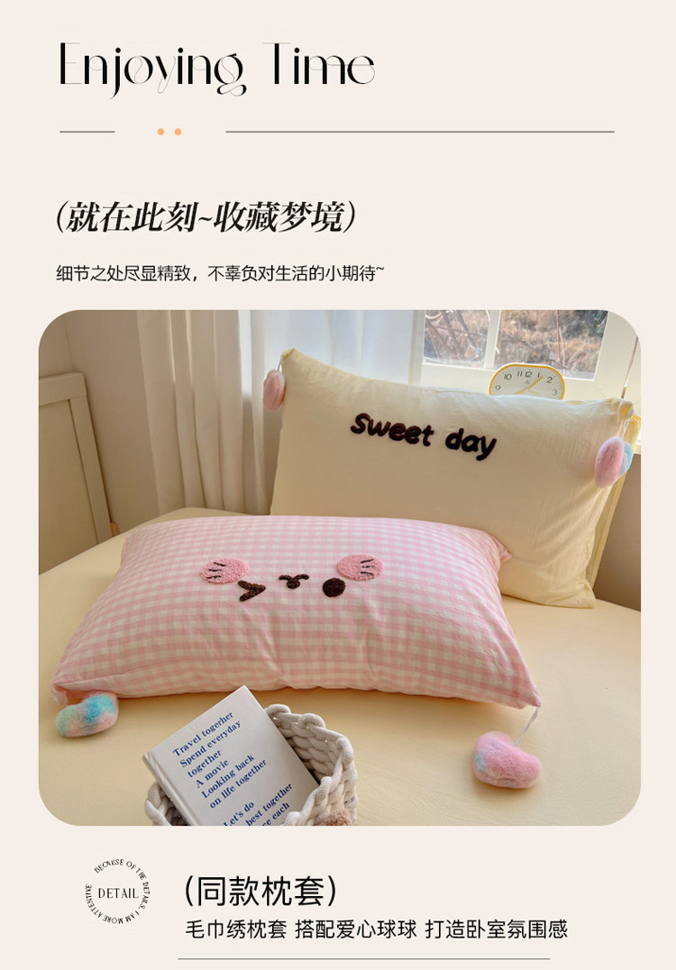 귀여운 소녀 면 원사 염색 된 석면 타월 자수 3 피스 세트 4 피스 세트 모피 공 학생 기숙사 침대스토어 가기
