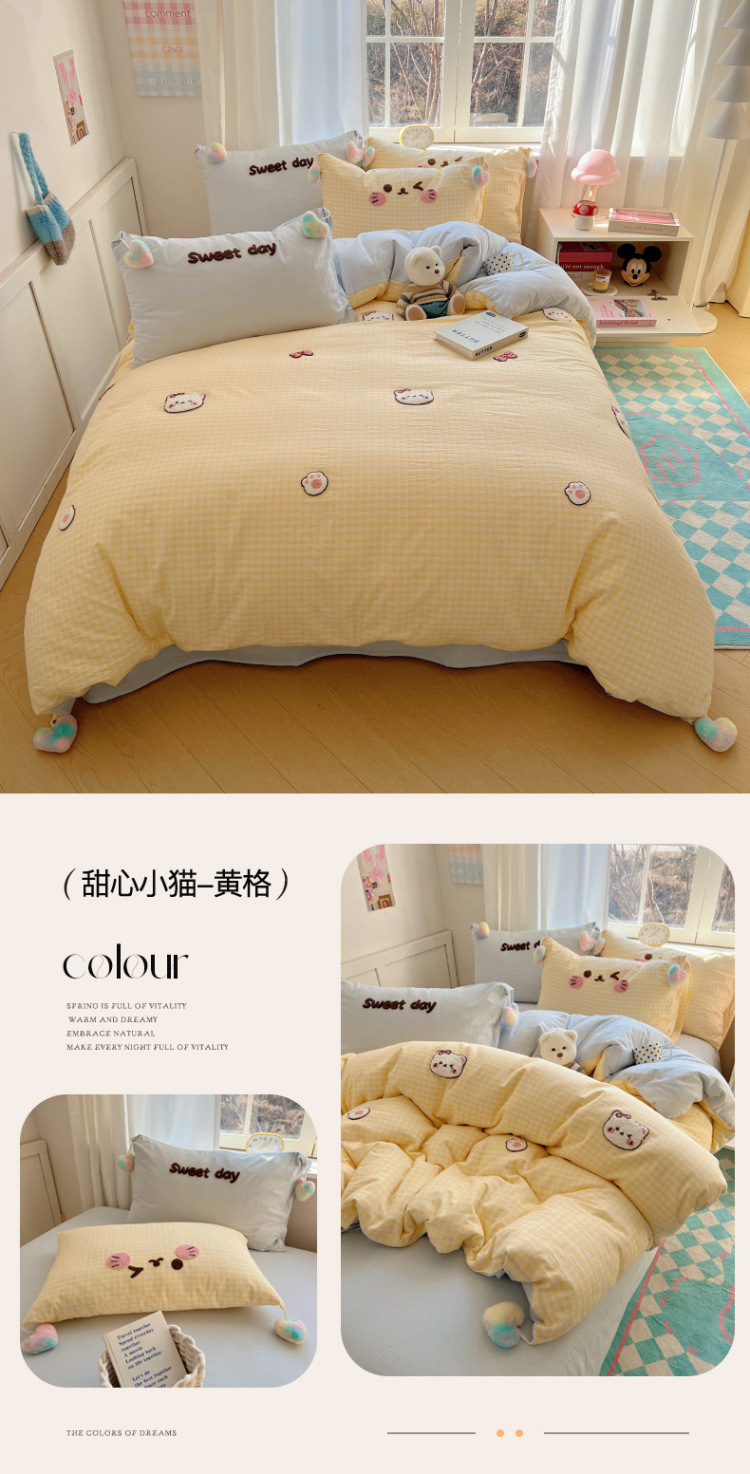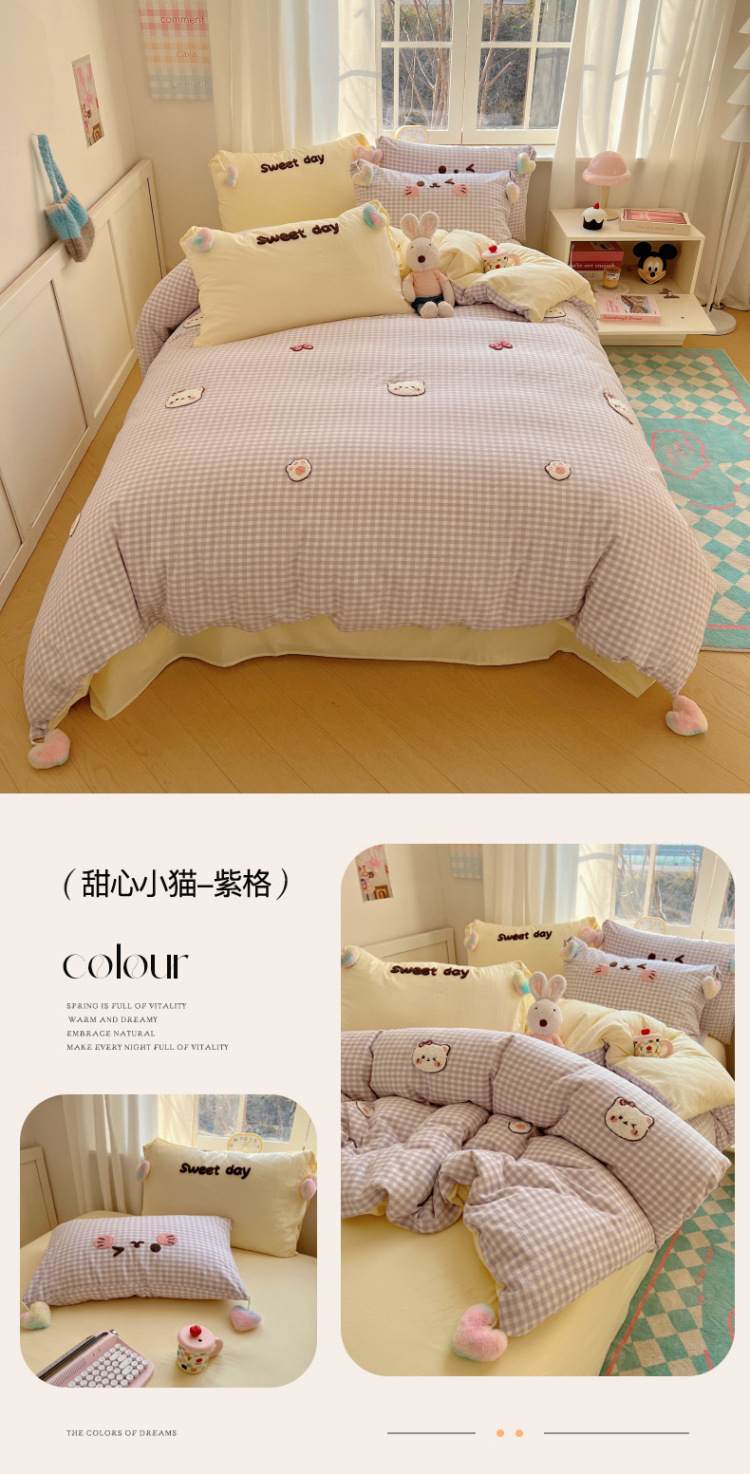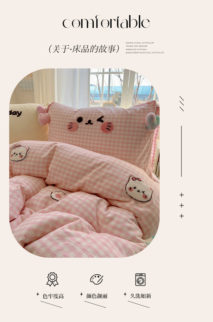 귀여운 소녀 면 원사 염색 된 석면 타월 자수 3 피스 세트 4 피스 세트 모피 공 학생 기숙사 침대
