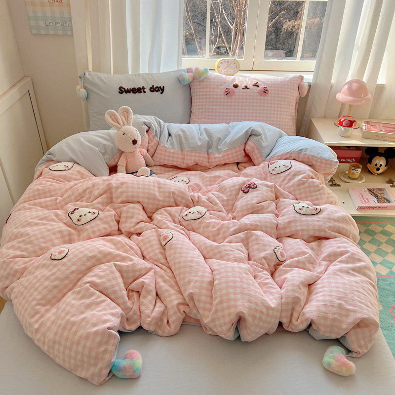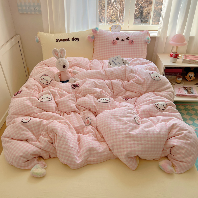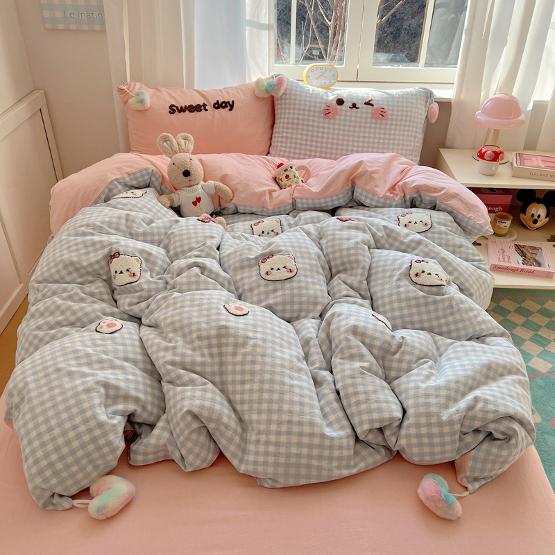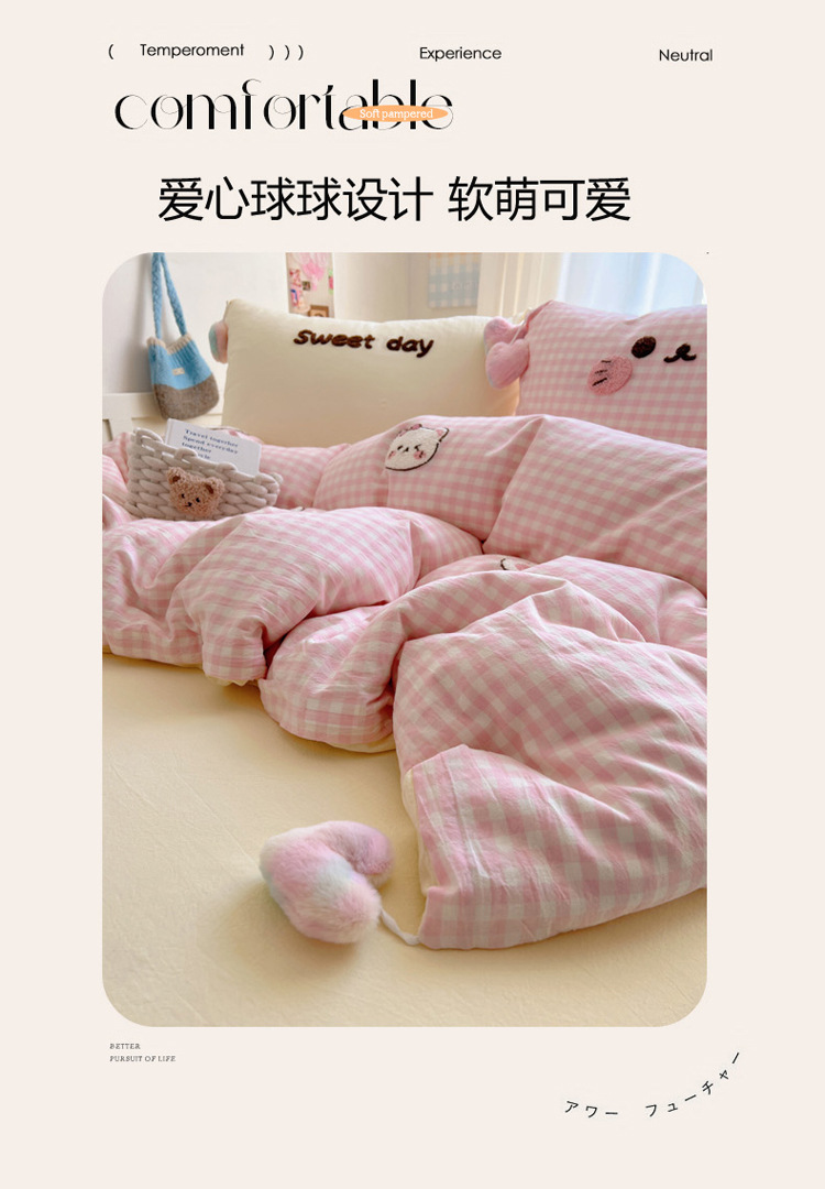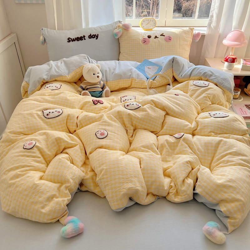 귀여운 소녀 면 원사 염색 된 석면 타월 자수 3 피스 세트 4 피스 세트 모피 공 학생 기숙사 침대
