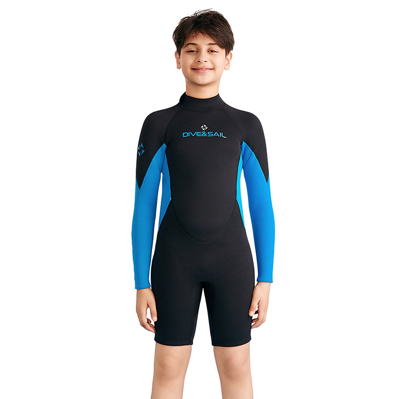 국경 2.5mm 어린이 다이빙 세트 원피스 긴팔 반바지 중대형 어린이 십대 스노클링 서핑 따뜻한 수영복