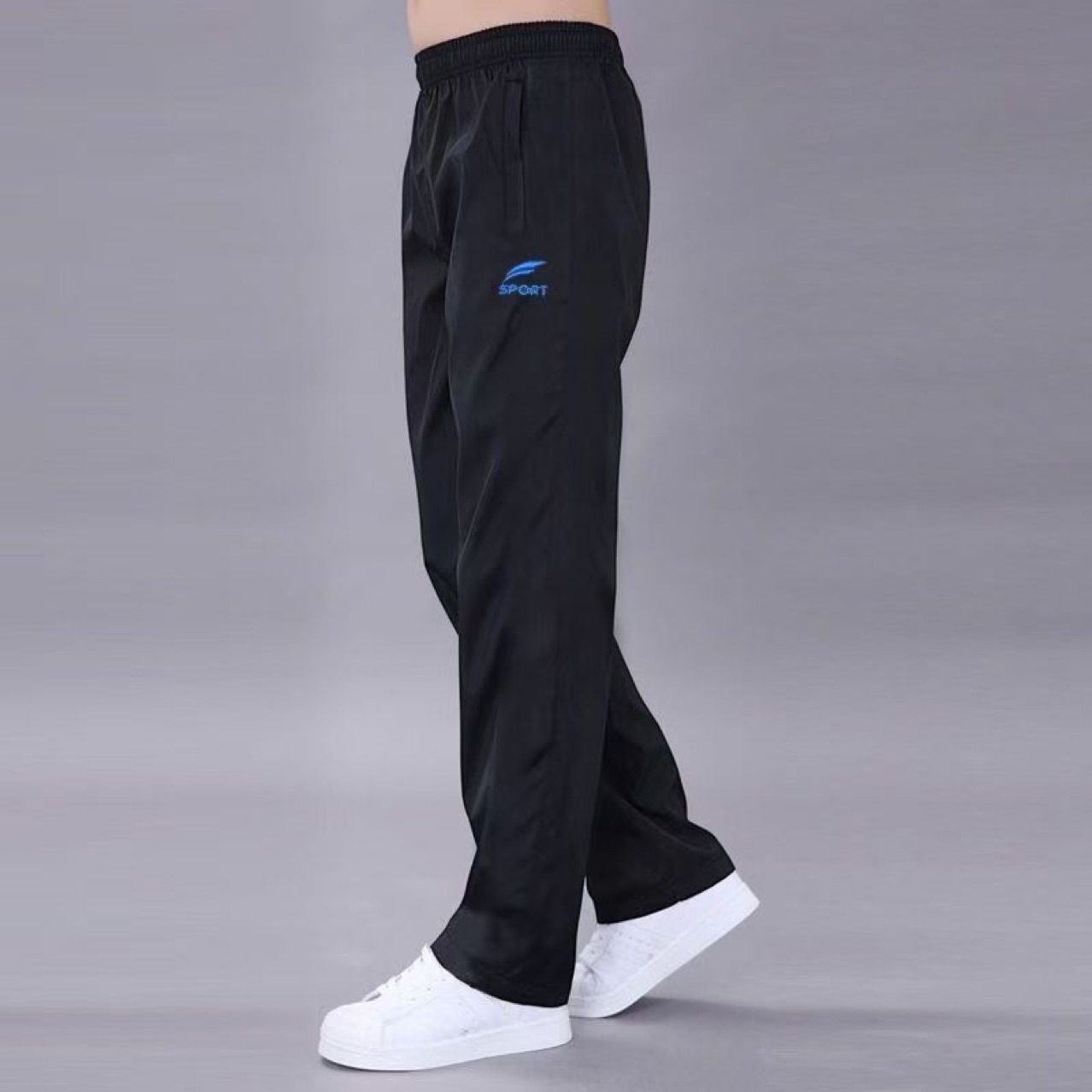 여름 새로운 캐주얼 루즈 스포츠 바지 남자의 빠른 건조 내마모성 폴리에스테르 코튼 긴 바지 남자 통기성 달리기 남자 싱글 레이어