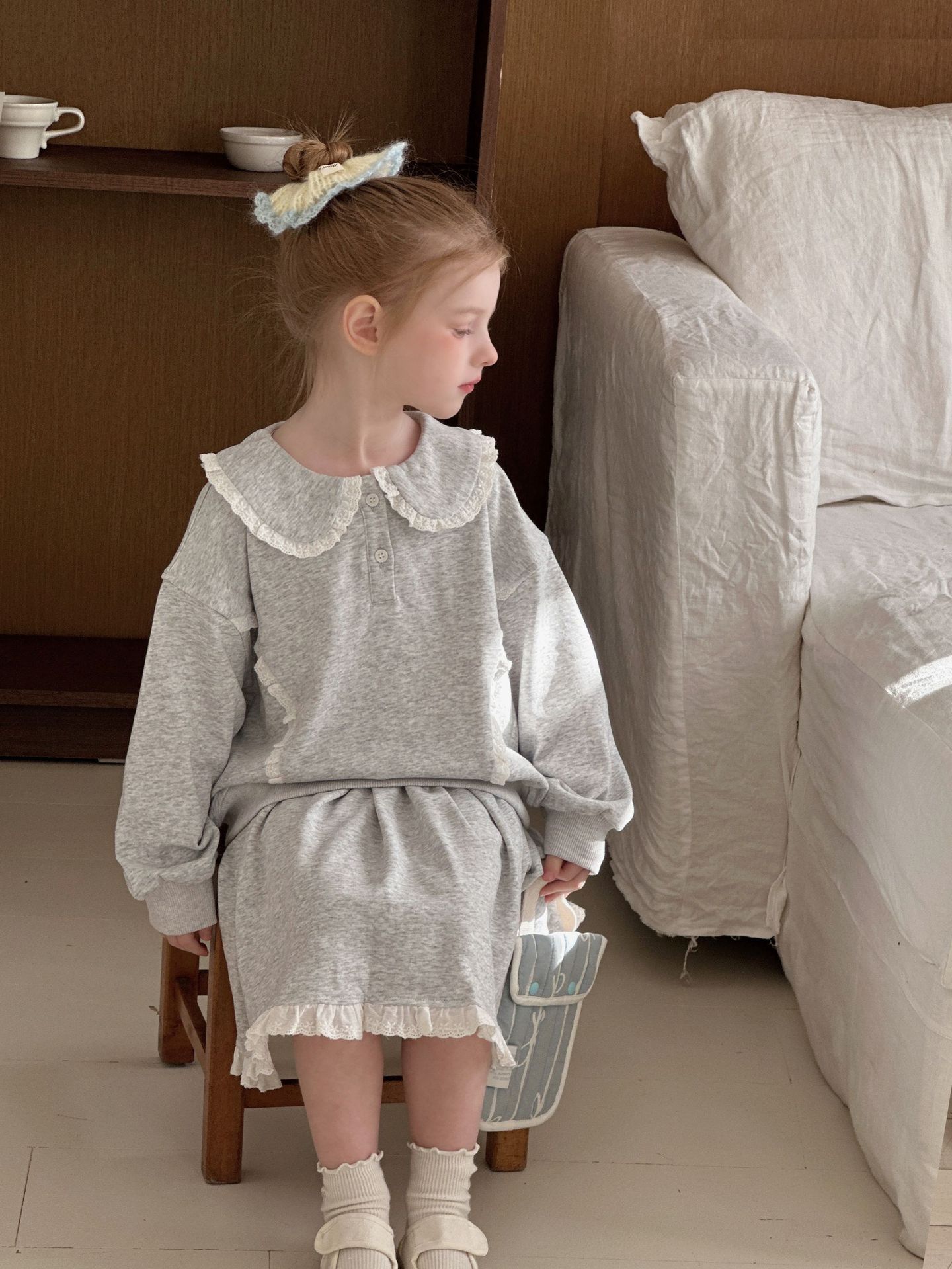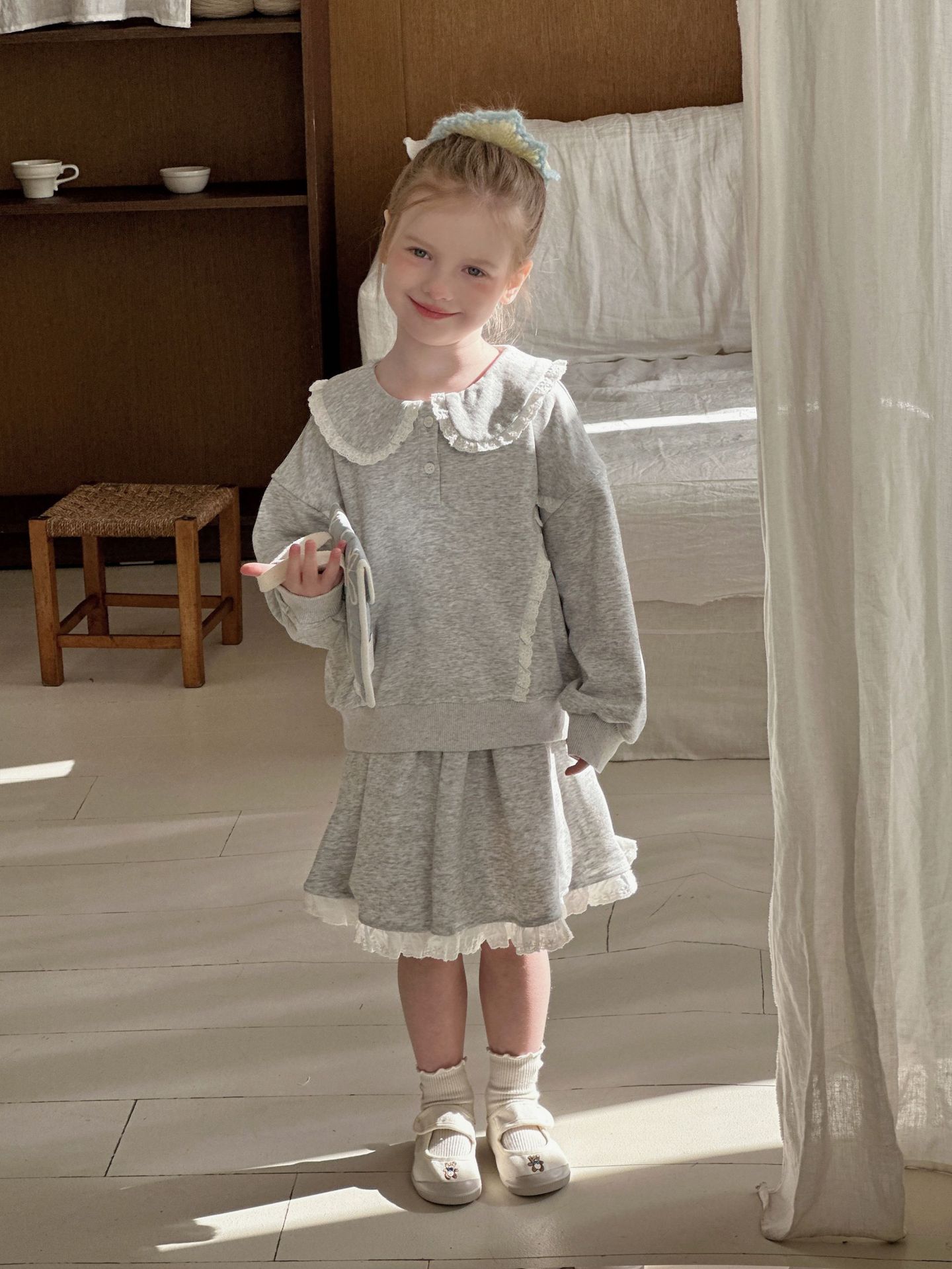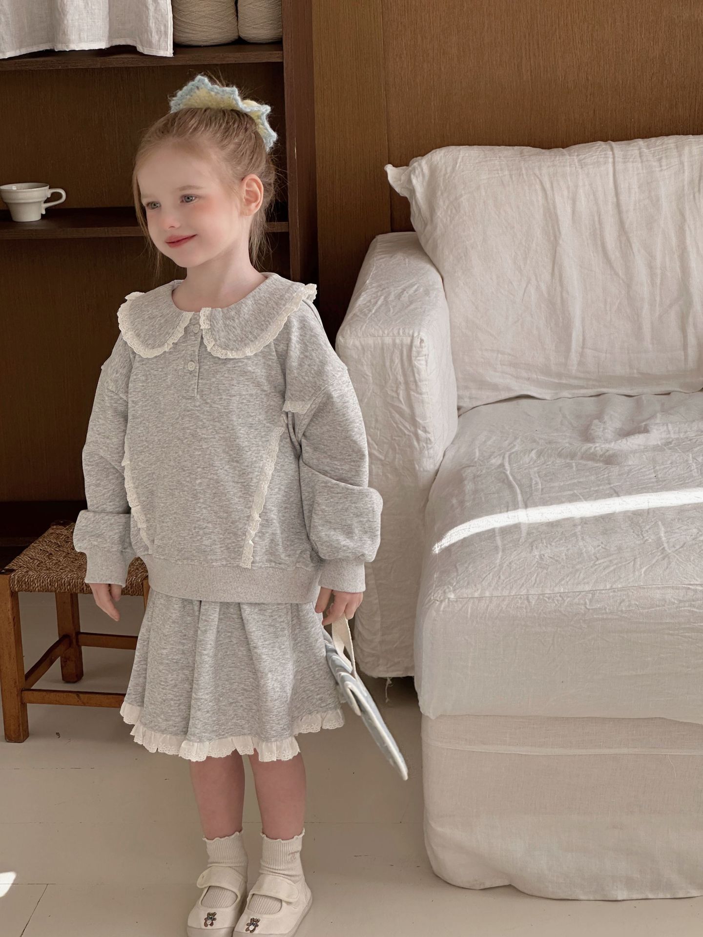 • 레이스 스웨트셔츠 + 스커트 슈트