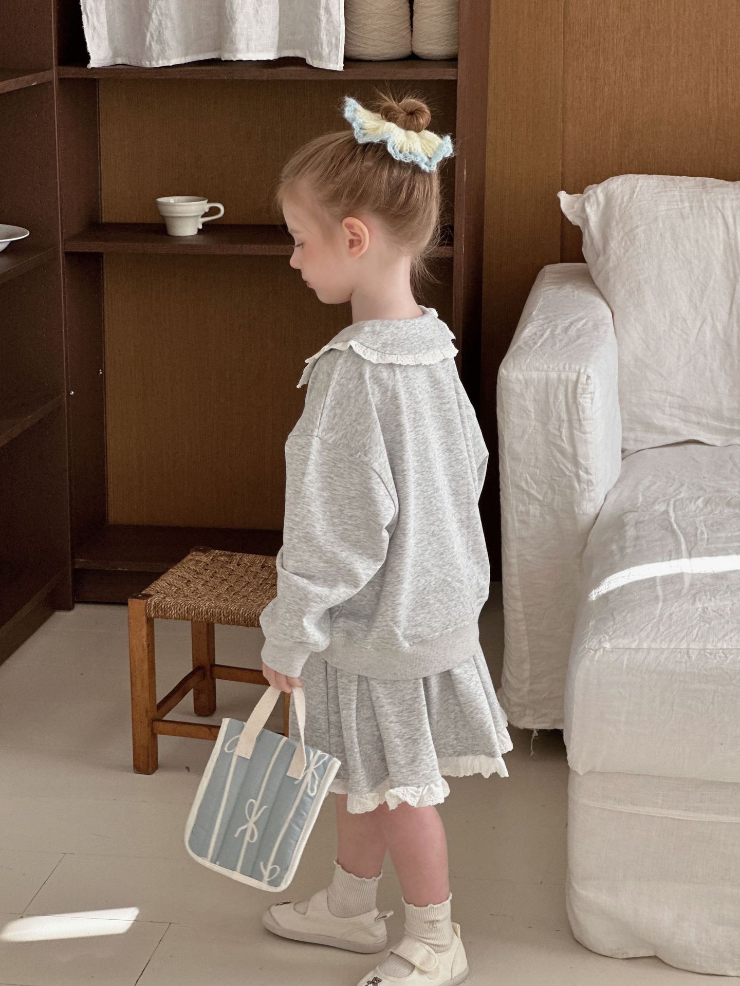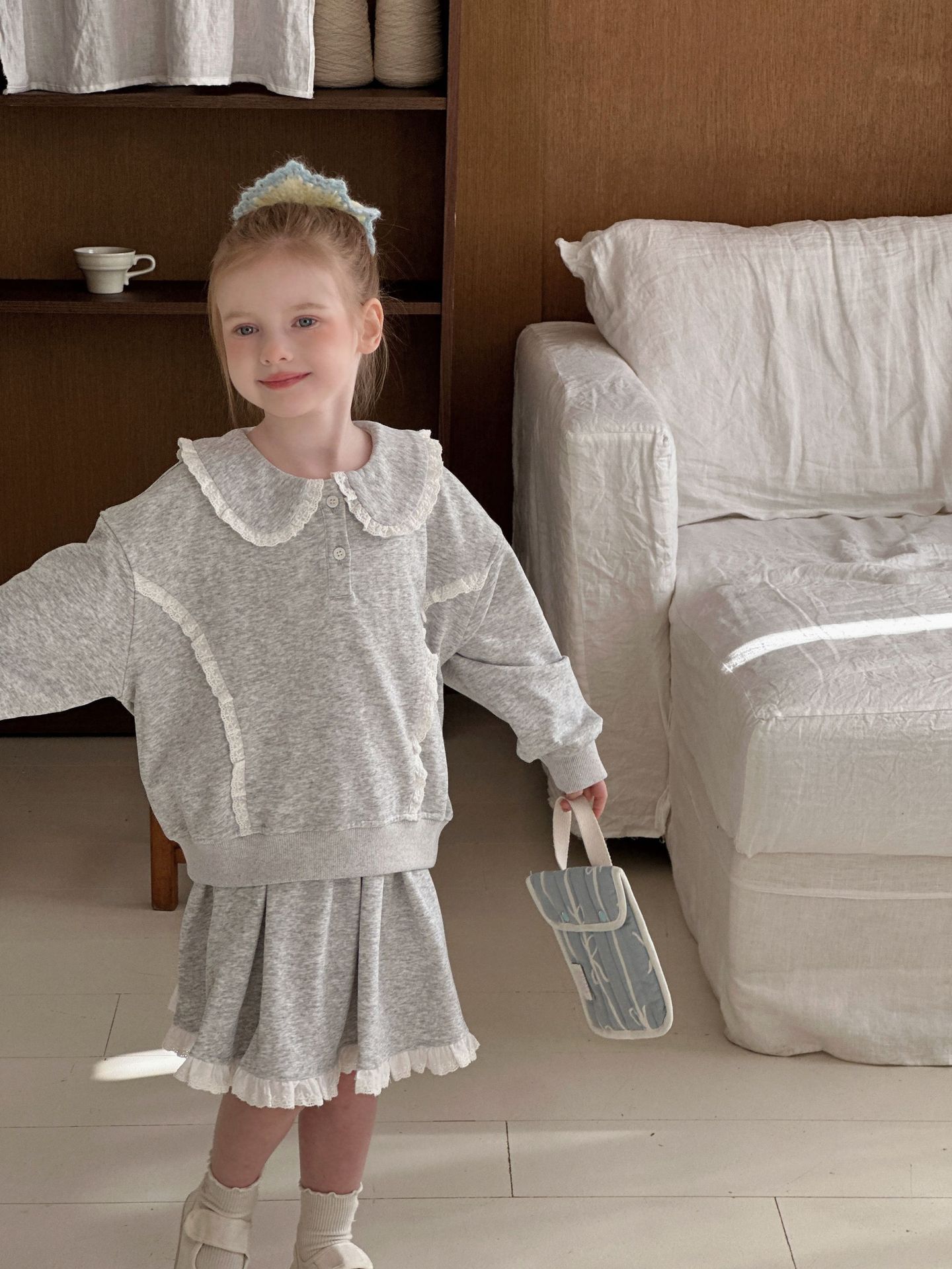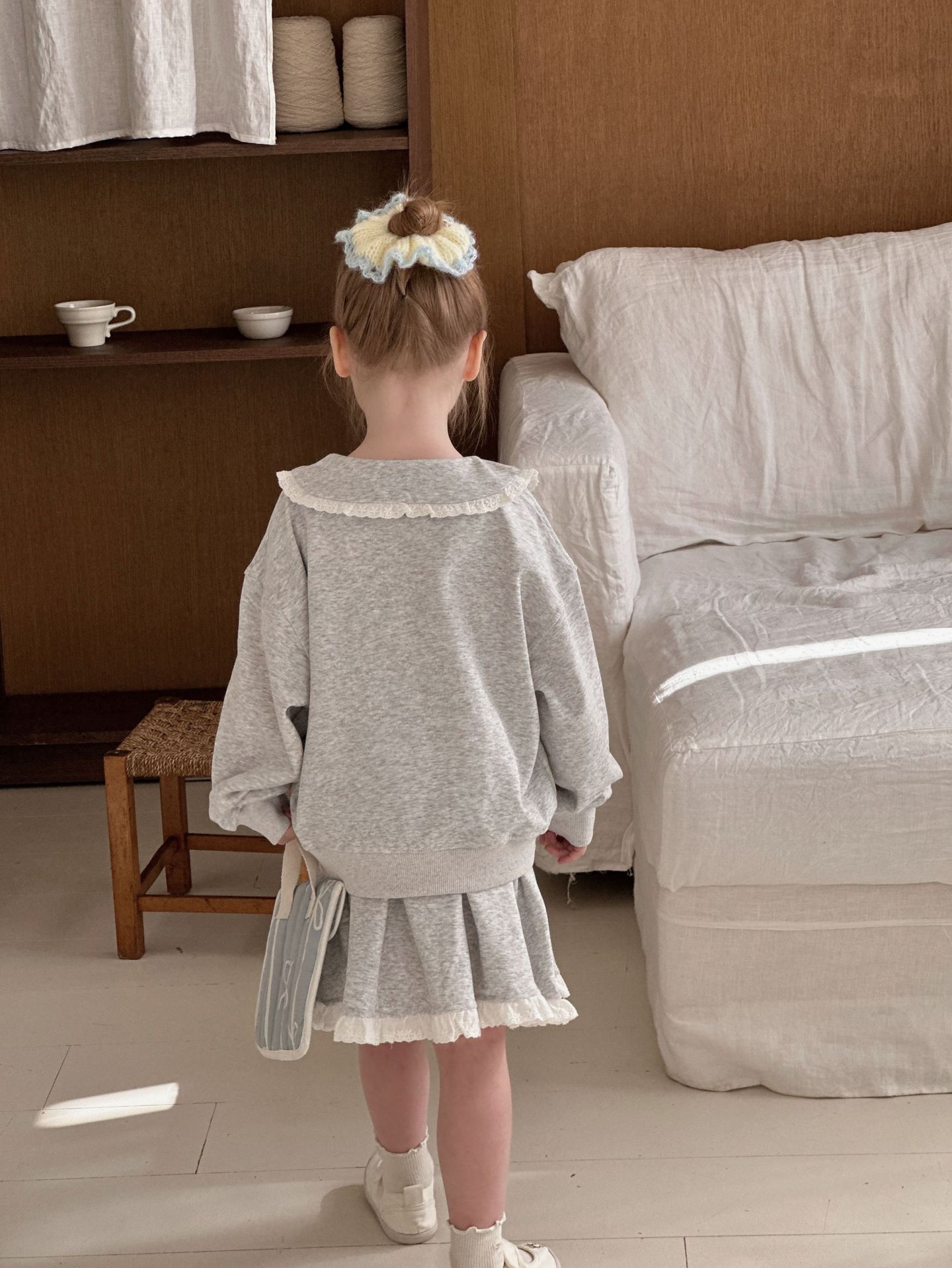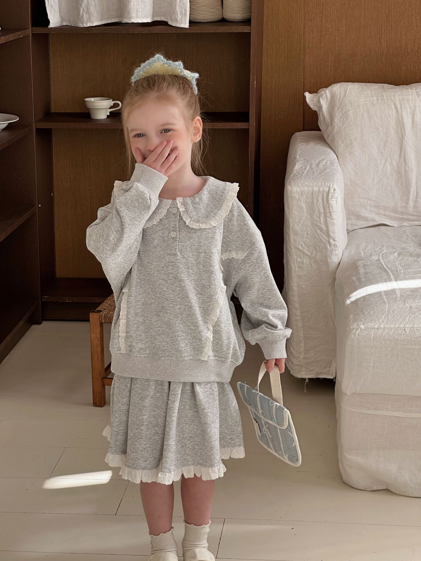 • 레이스 스웨트셔츠 + 스커트 슈트
