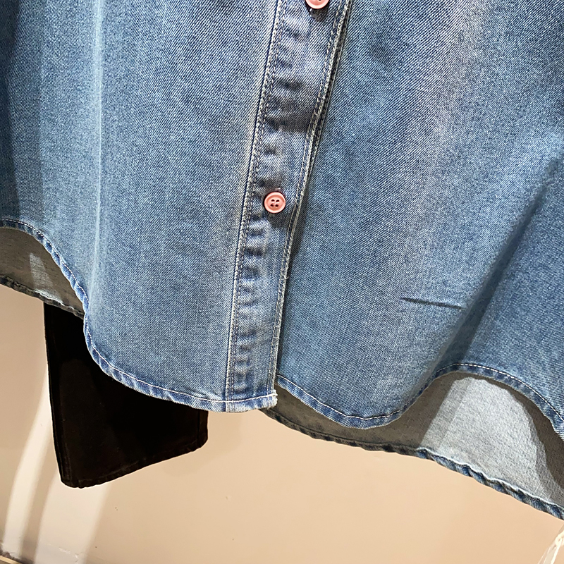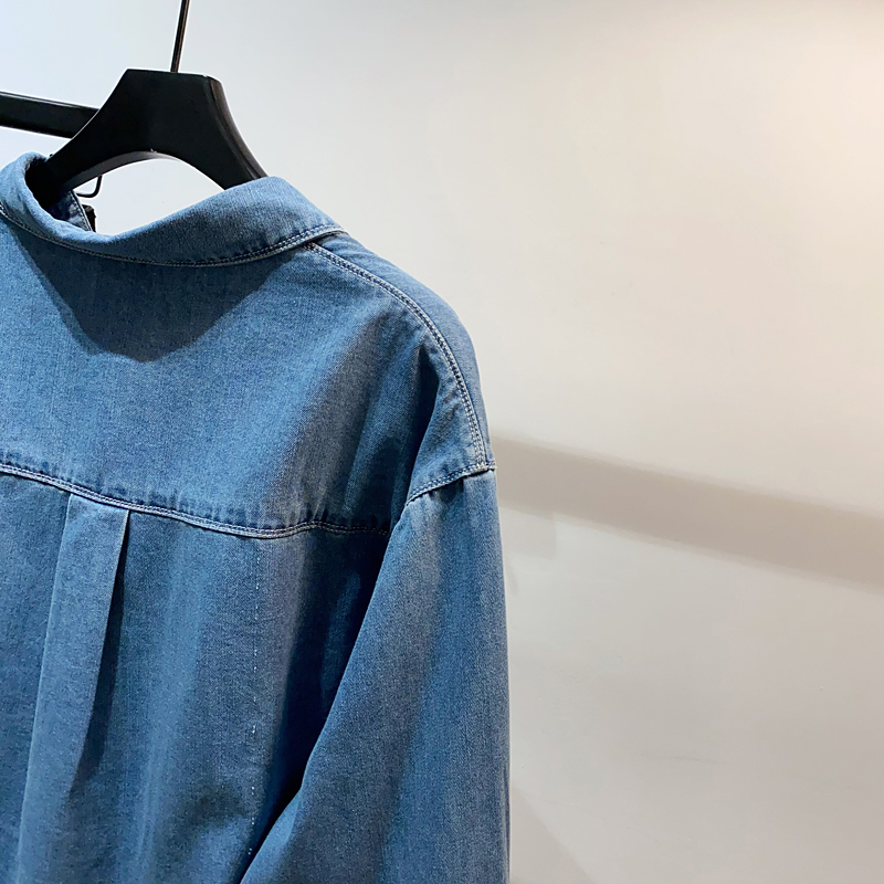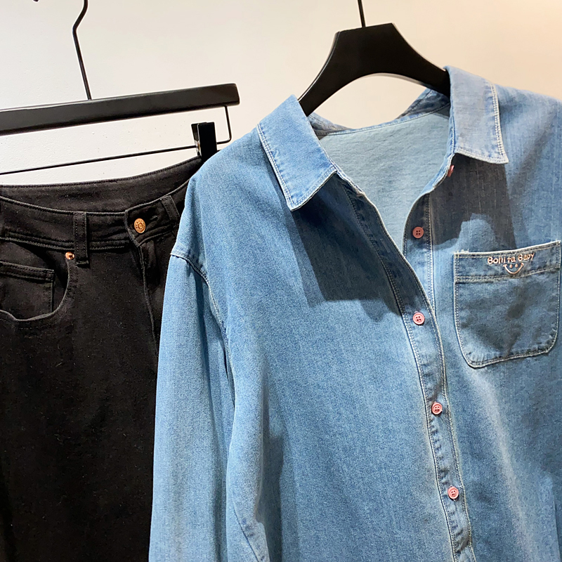 홍콩 스타일 빈티지 싱글 포켓 레터 자수 옷깃 데님 셔츠 여자 봄 새로운 도착 스택 올 매치 재킷스토어 가기