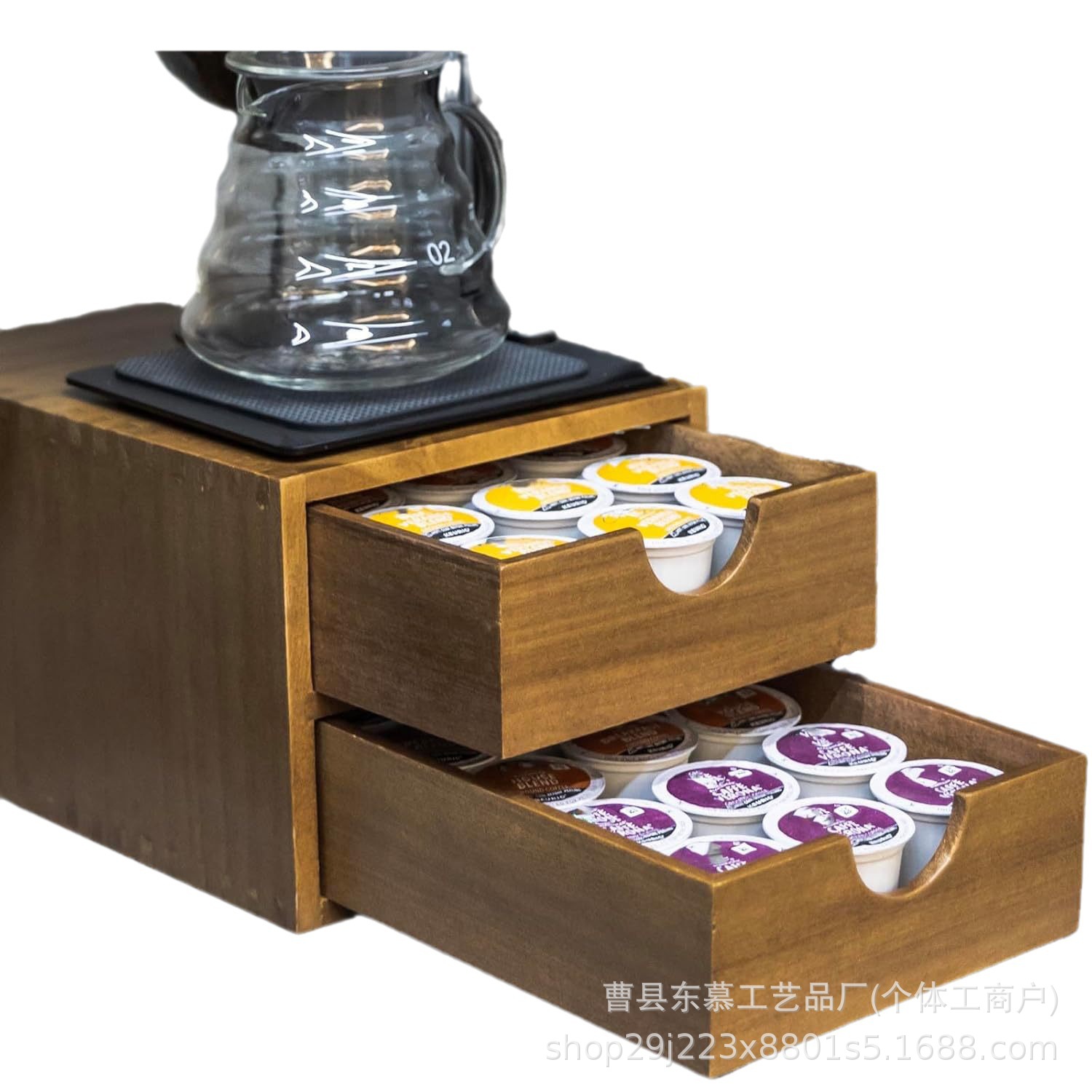 나무 커피 캡슐 서랍 저장 랙 커피 기계베이스 브래킷 가정용 차 세트 더블 레이어 저장 상자스토어 가기
