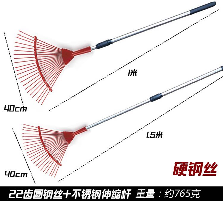 • 22톱니 원형 와이어 레이크 헤드 + 스테인레스 스틸 텔레스코픽 로드