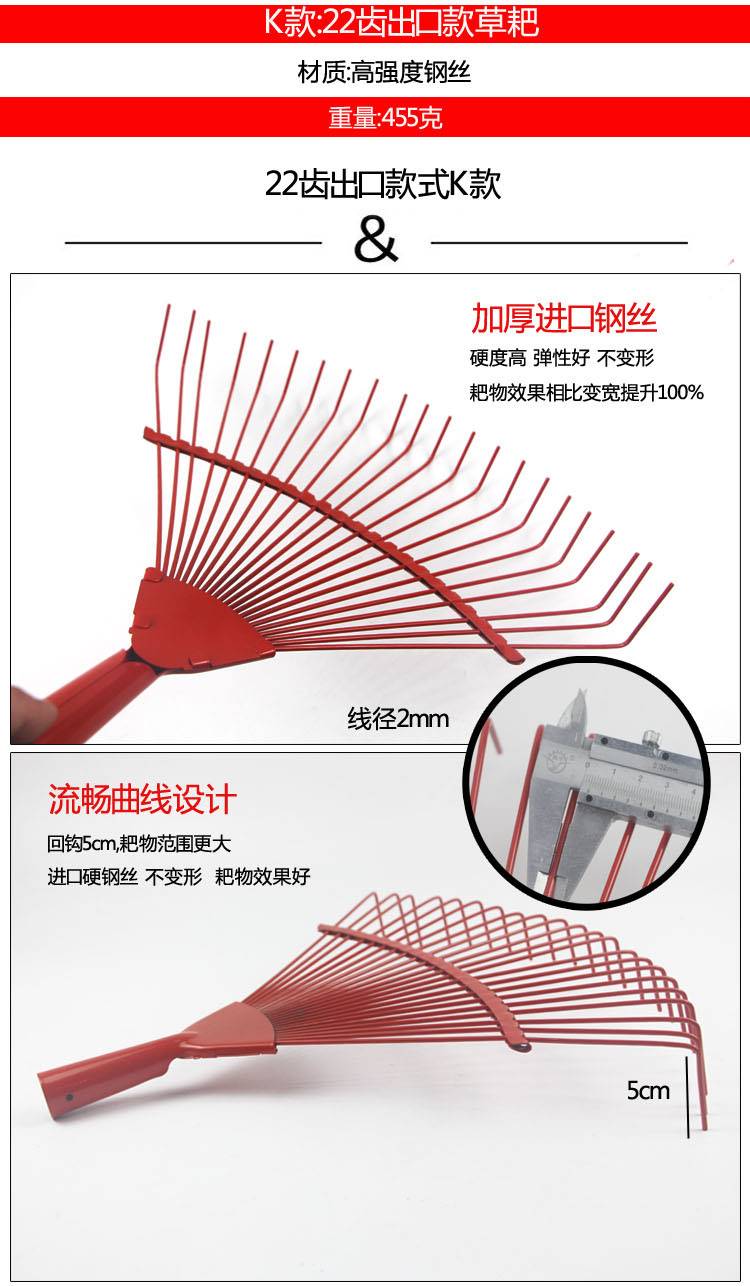 • 24개 톱니 확대 와이어 레이크 헤드 + 1.2 강철 핸들