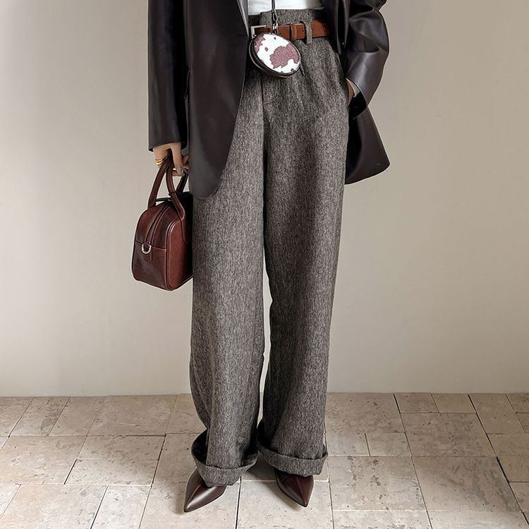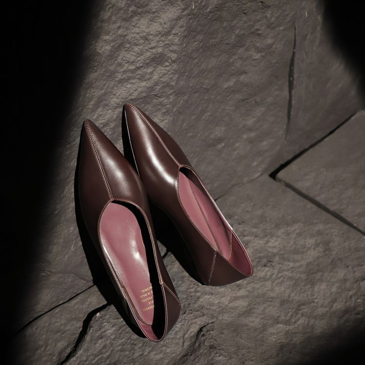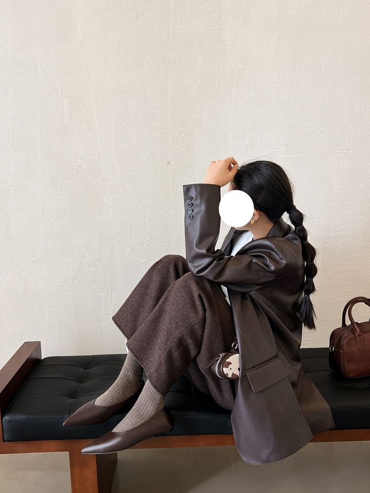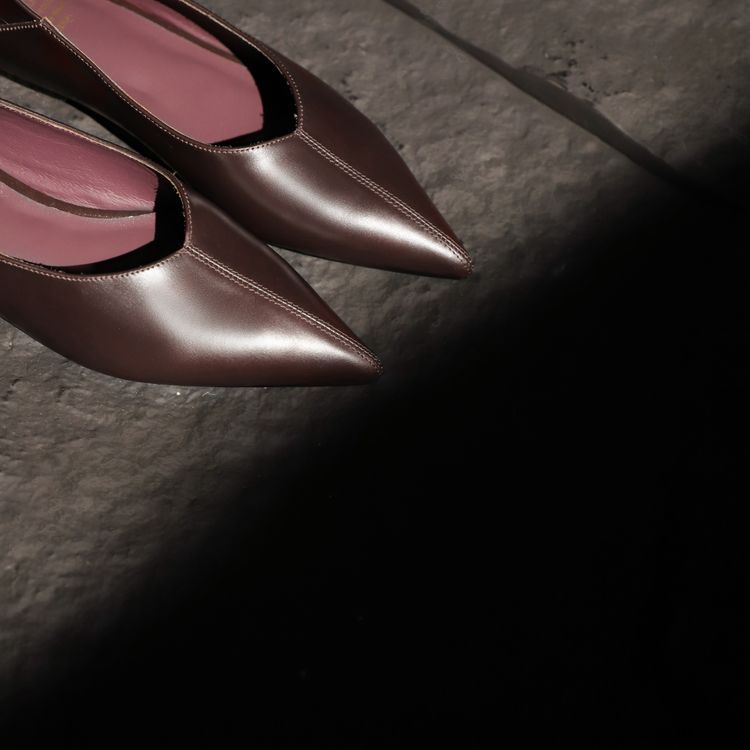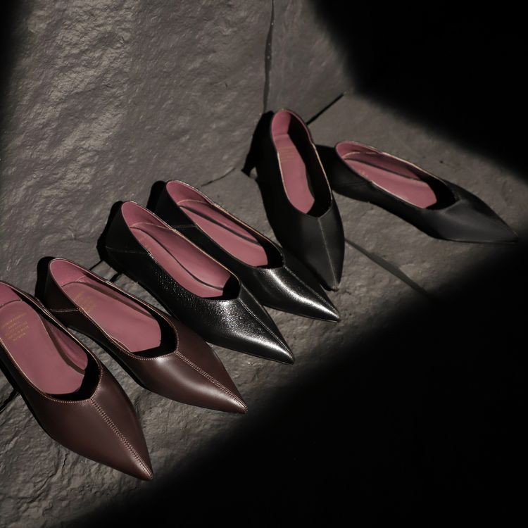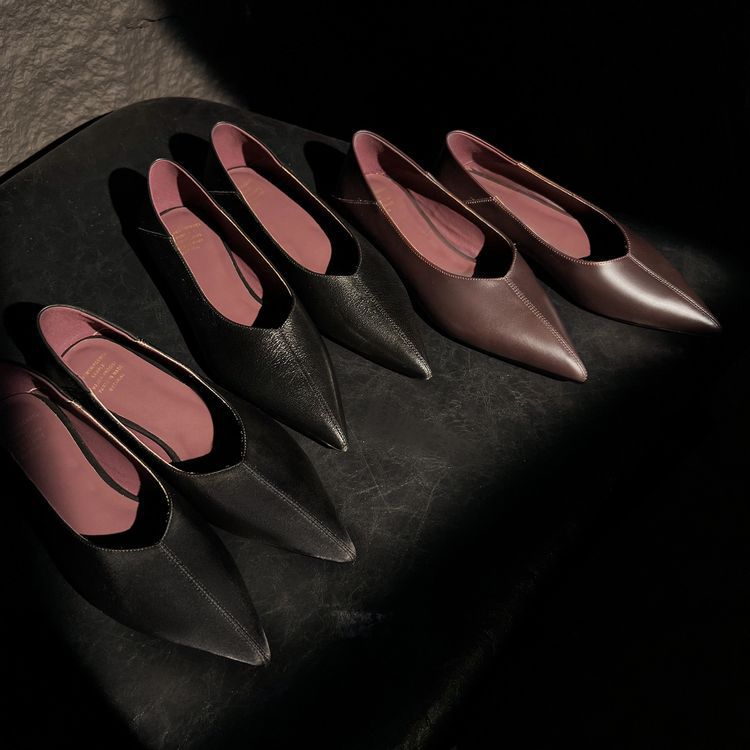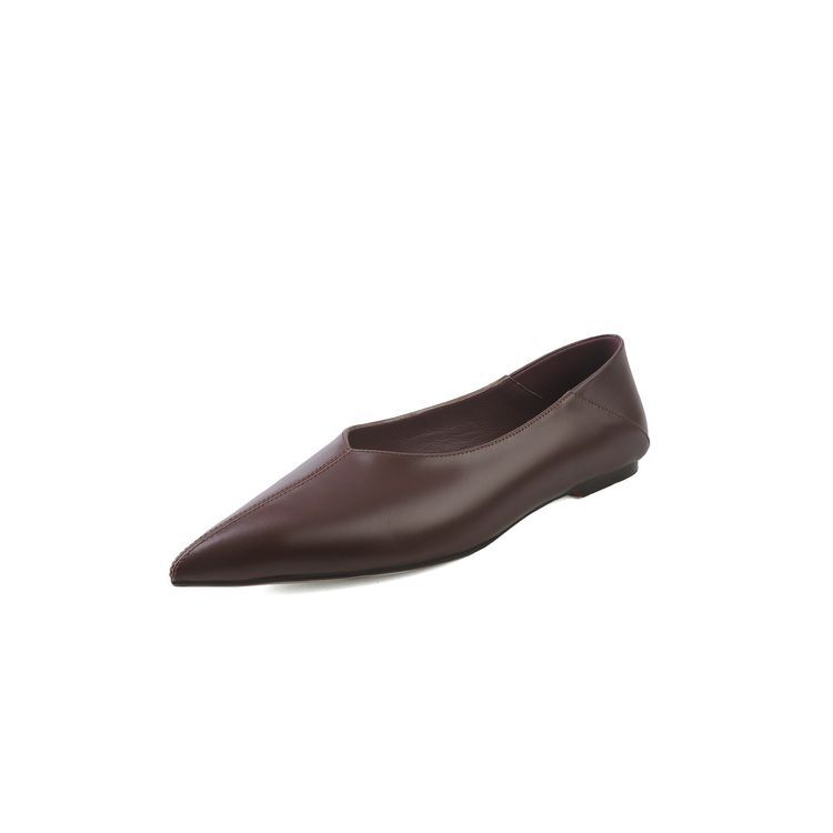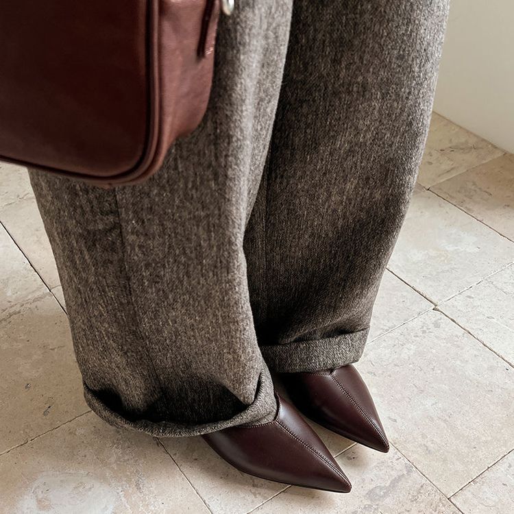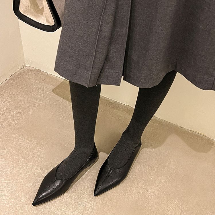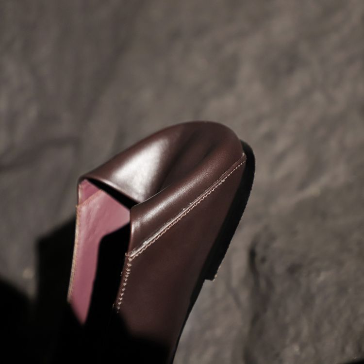 양가죽 플랫 힐 뾰족한 발가락 얕은 입 신발 봄 새로운 풀 가죽 솔리드 컬러 스톰프 힐 소프트 가죽 여성 신발스토어 가기