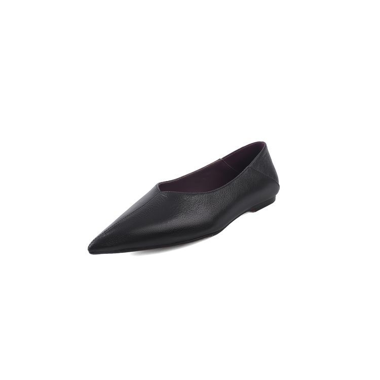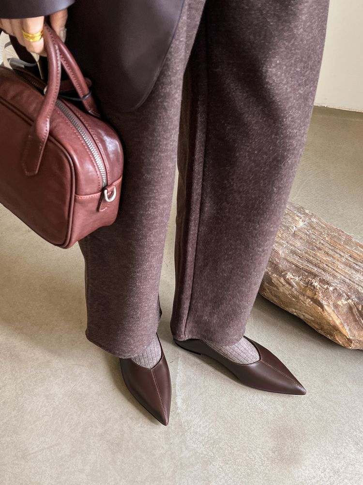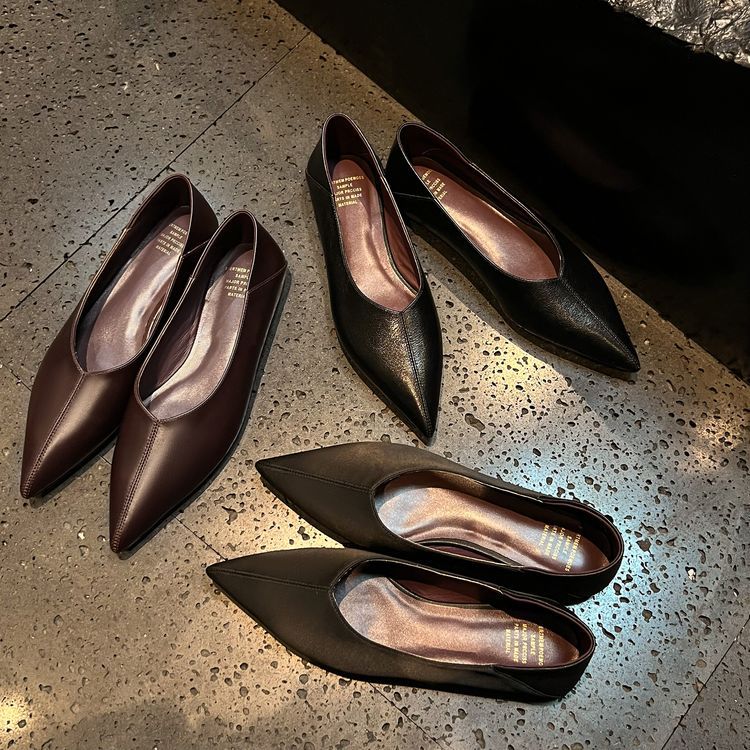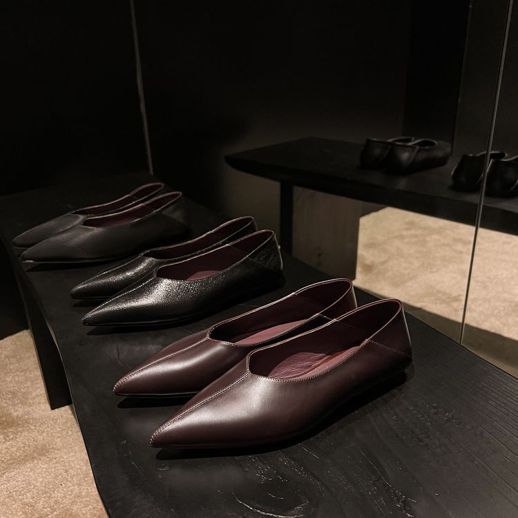 양가죽 플랫 힐 뾰족한 발가락 얕은 입 신발 봄 새로운 풀 가죽 솔리드 컬러 스톰프 힐 소프트 가죽 여성 신발
