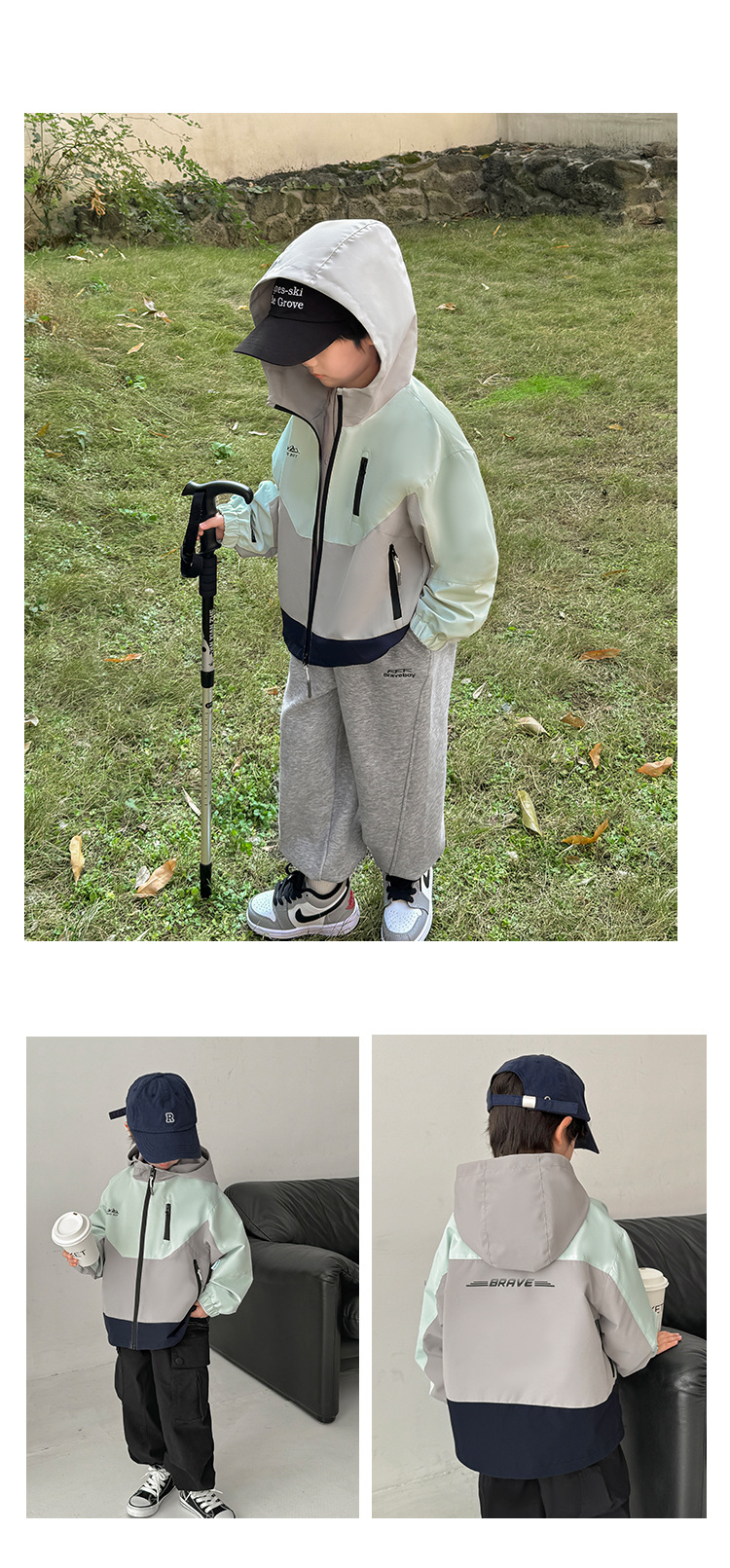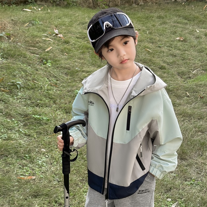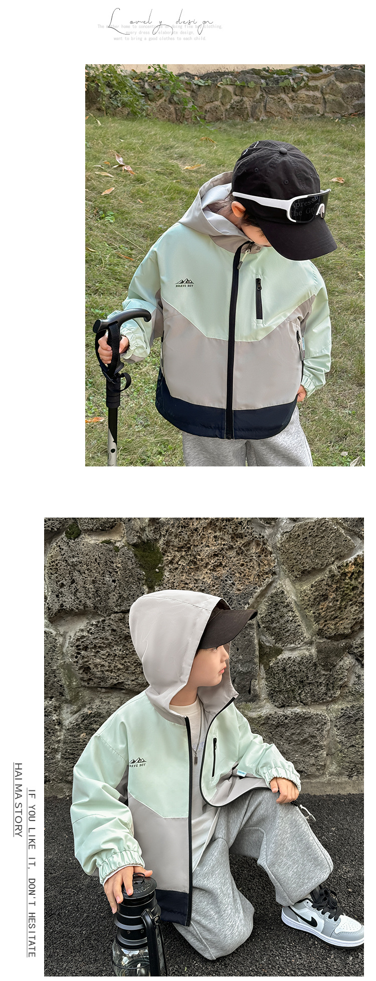 Haimajia 2025 새로운 가을 스타일 소년 대비 색 후드 자켓 소프트 쉘 자켓 한국 스타일 아동 의류 야외스토어 가기