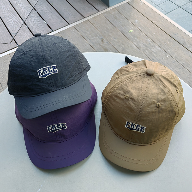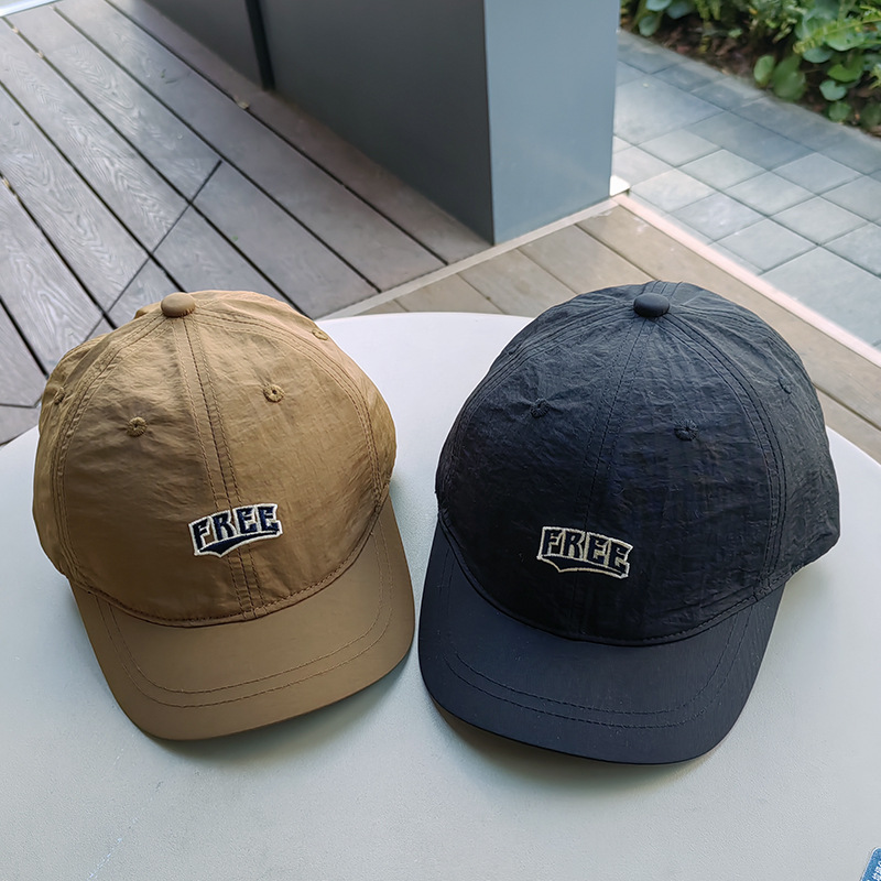• FREE 속건성 짧은 챙 자수 야구 모자 블랙