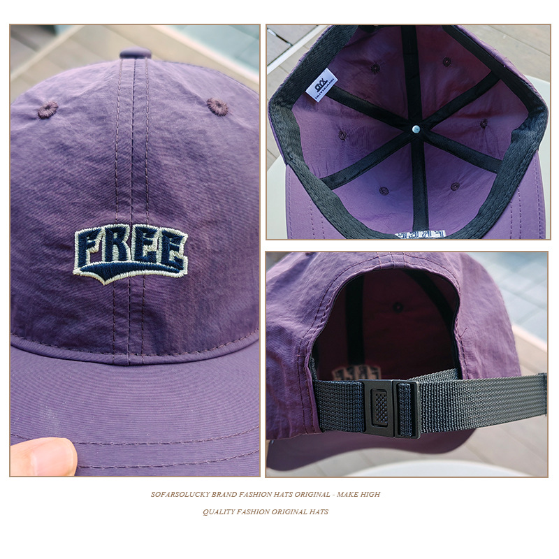 • FREE 속건성 짧은 챙 자수 야구 모자 보라색