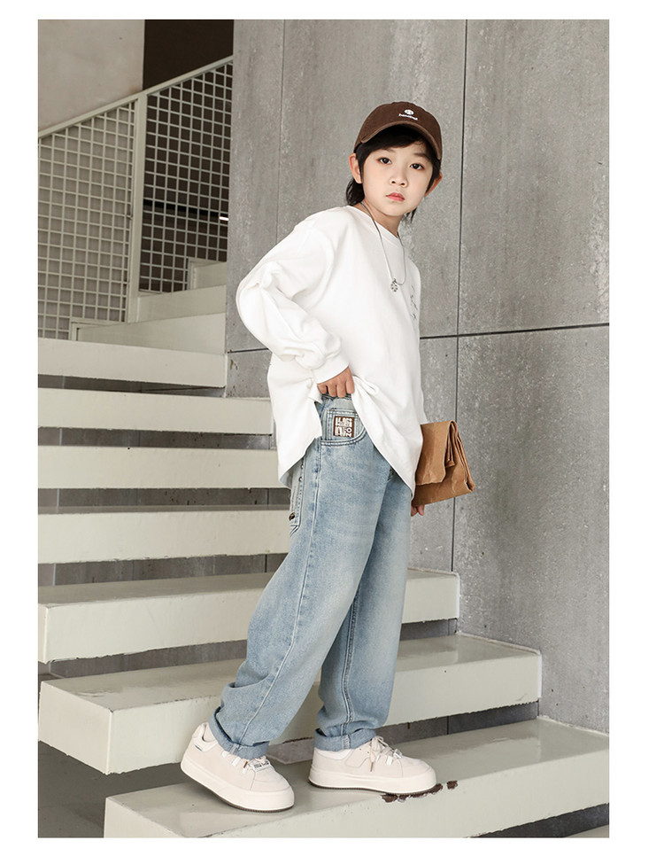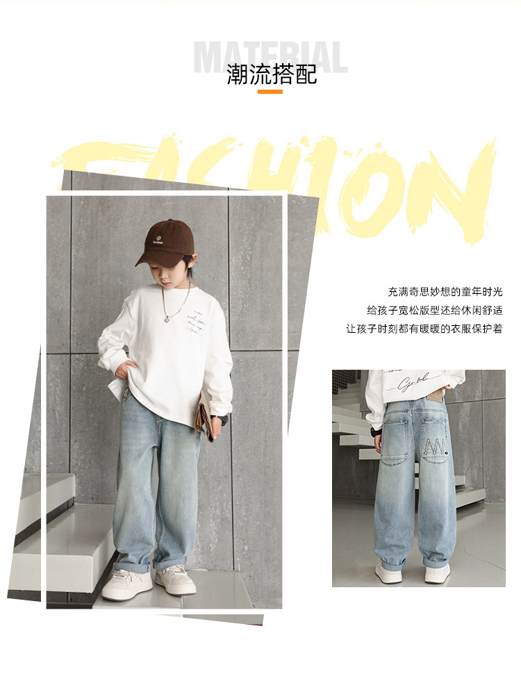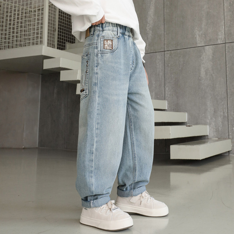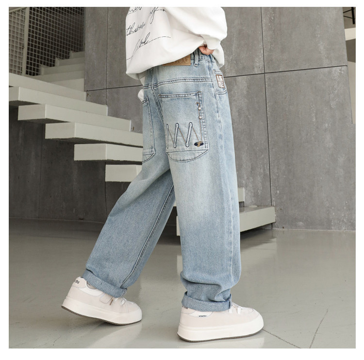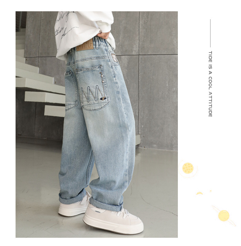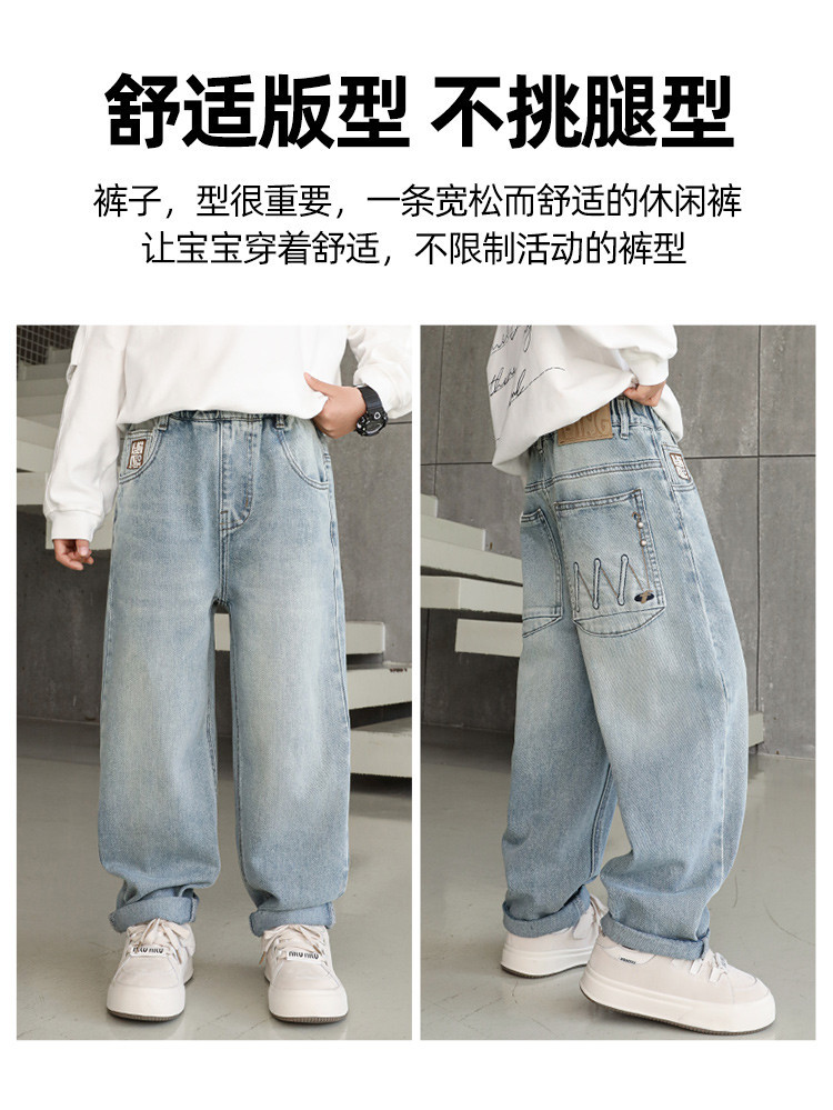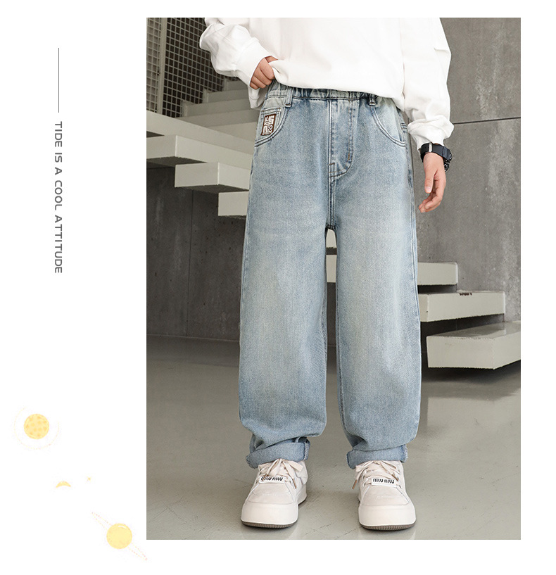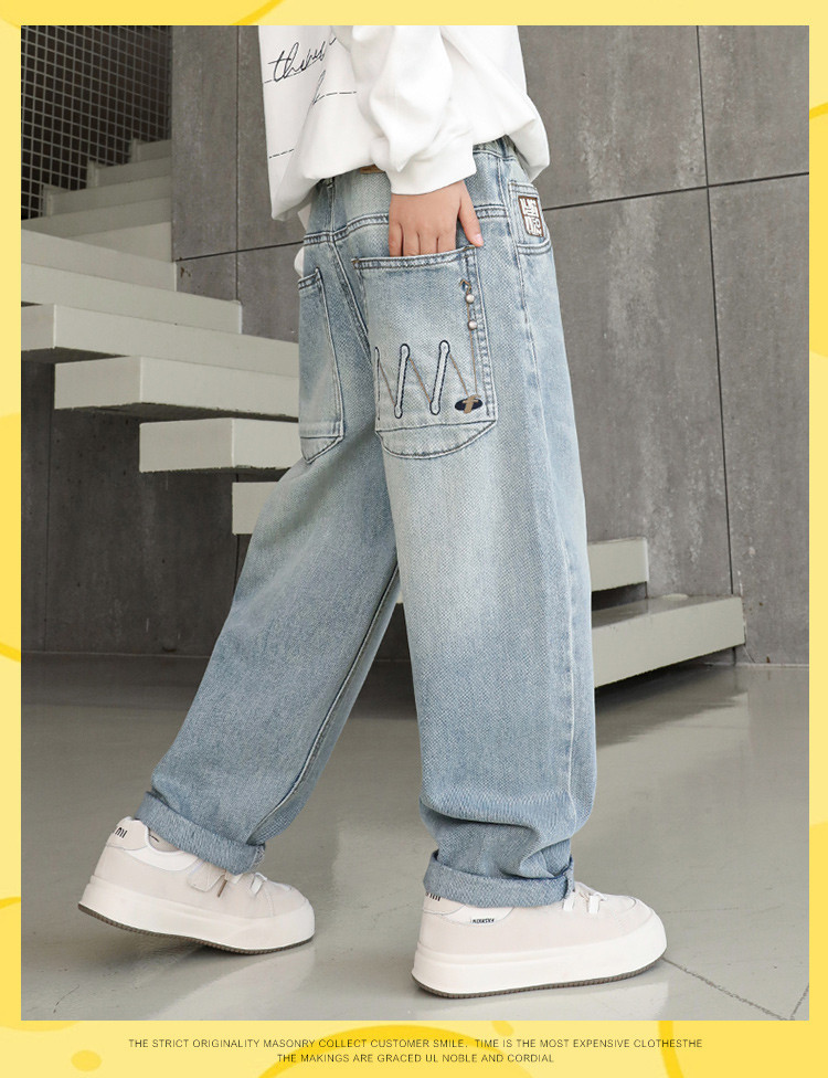 소년 청바지 2025 봄과 가을 새로운 미드 빅 키즈 서양 스타일 느슨한 바지 봄 캐주얼 웨스턴 스타일 스트레이트 바지스토어 가기